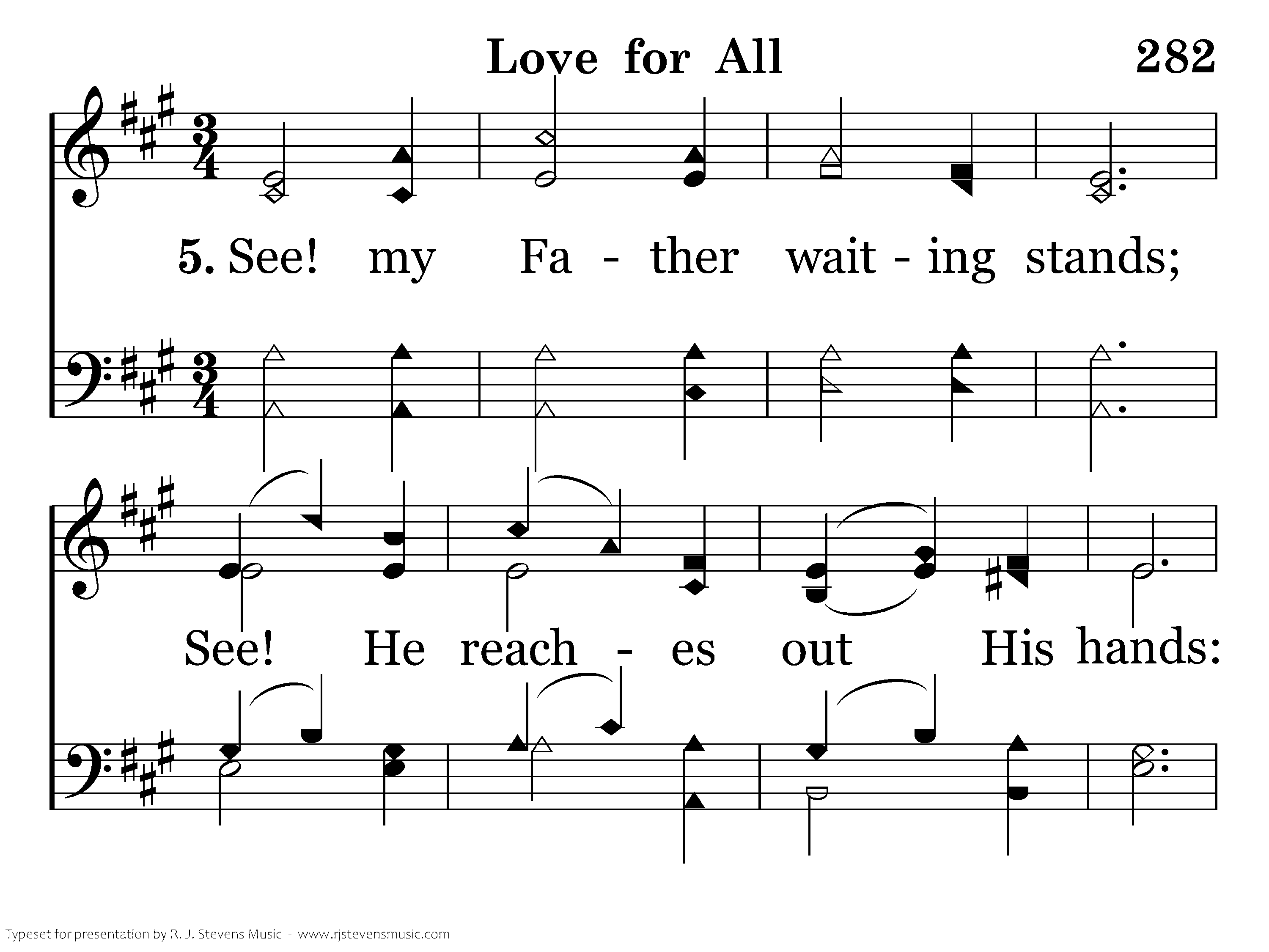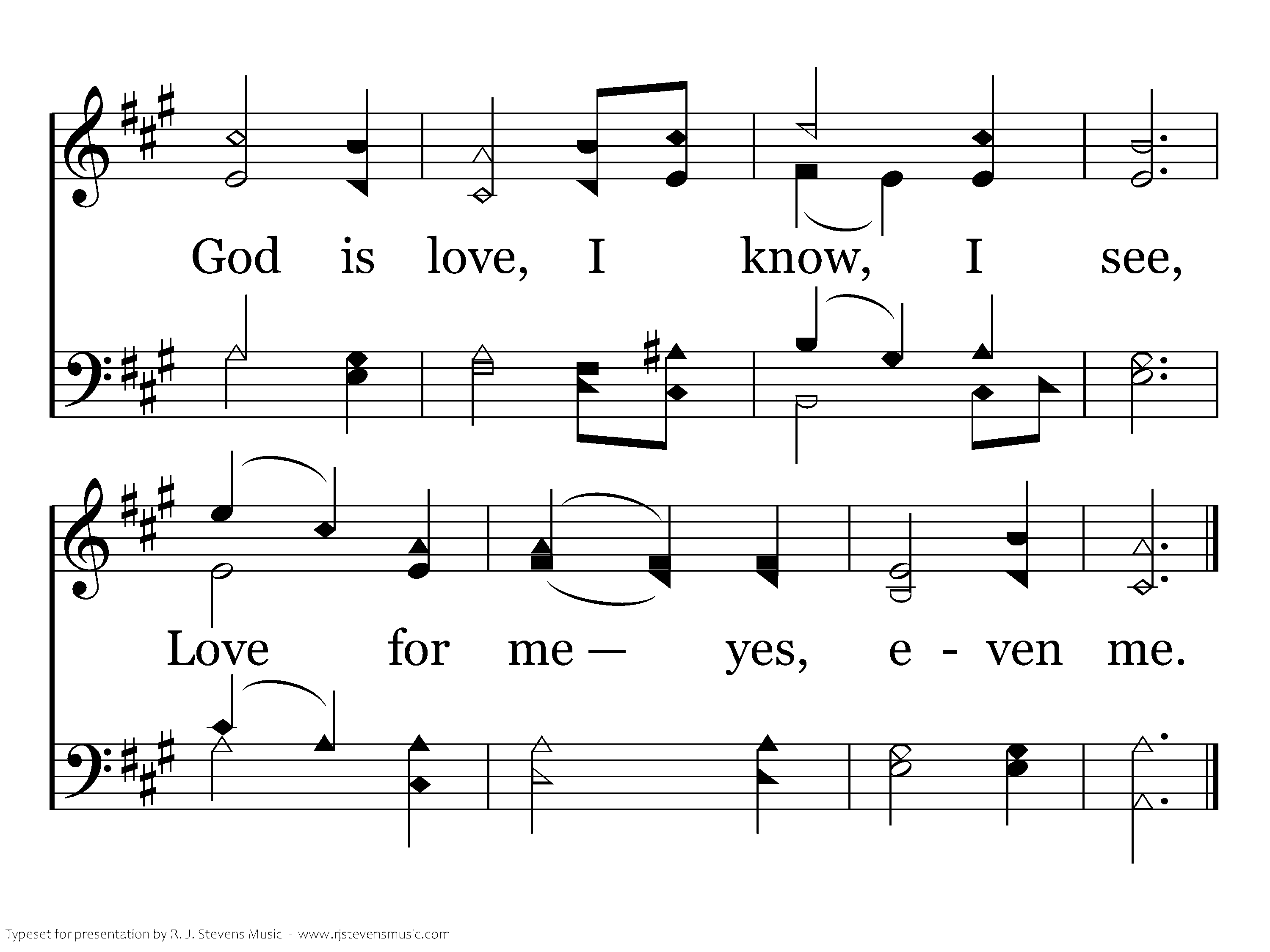 See! My Father waiting stands; see! He reaches out His hands: God is love, I know, I see, Love for me yes, even me.