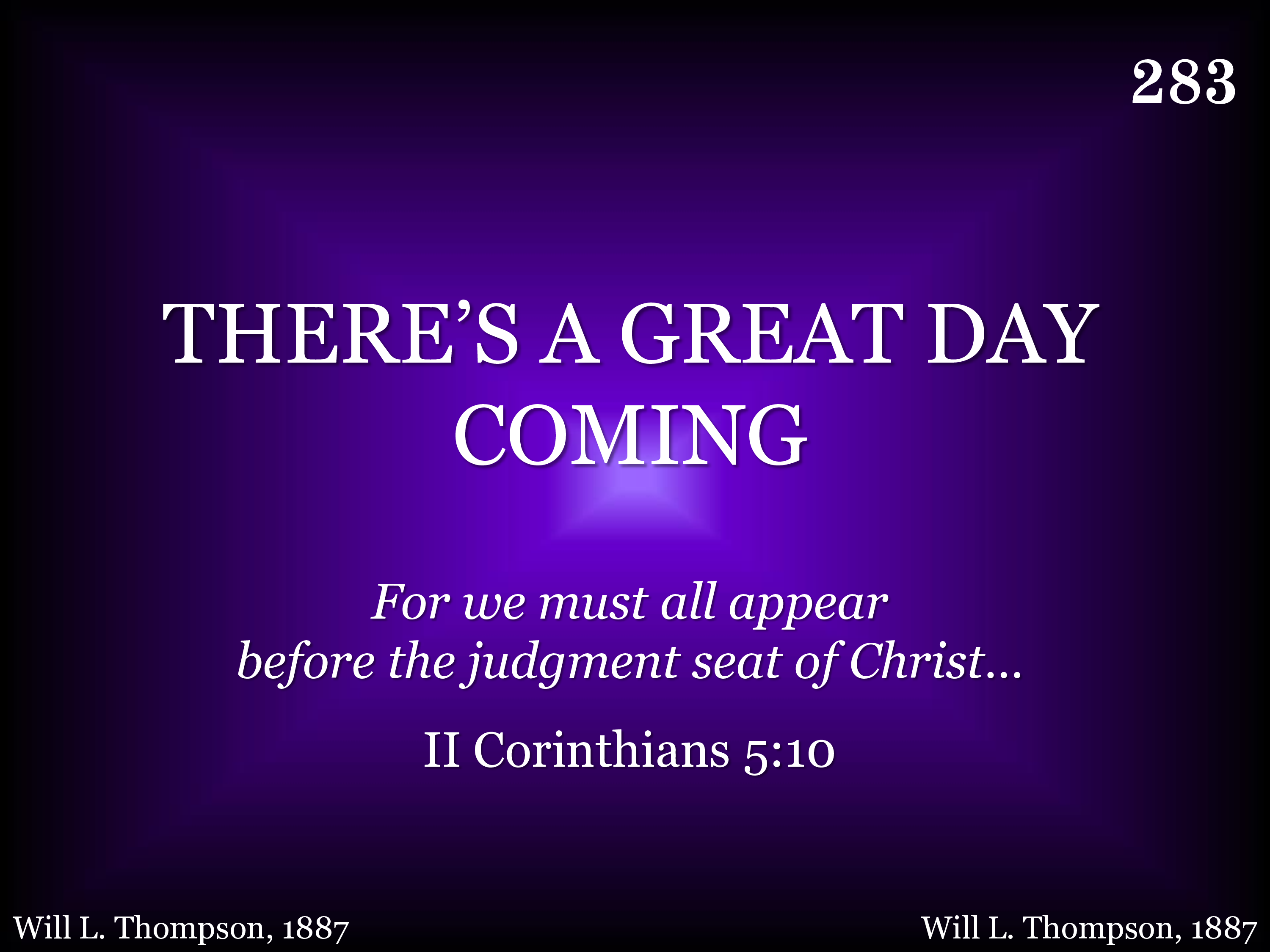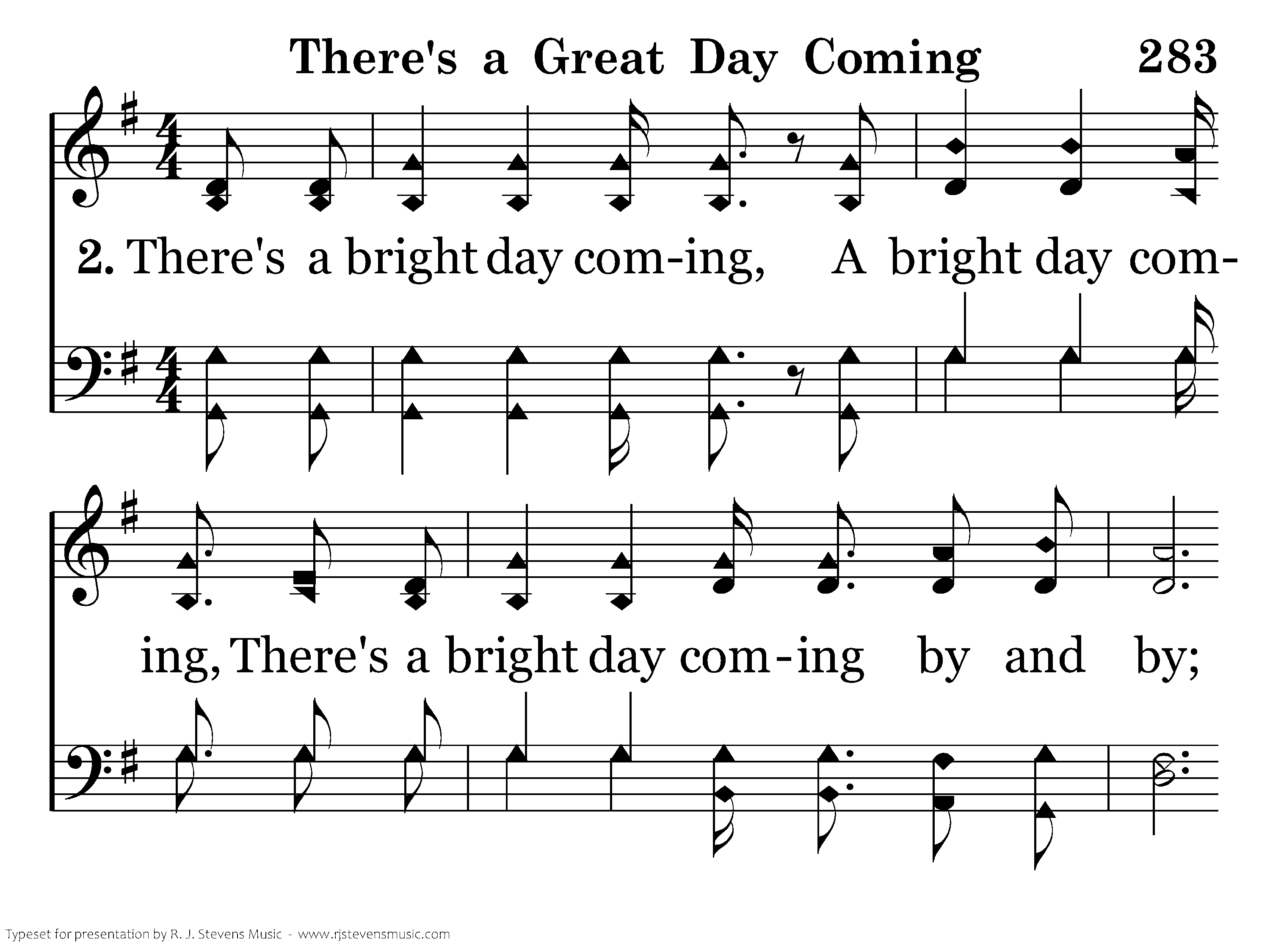 There's a bright day coming, A bright day coming, There's a bright day coming by and by; But its brightness shall only come to them that love the Lord, Are you ready for that day to come?
