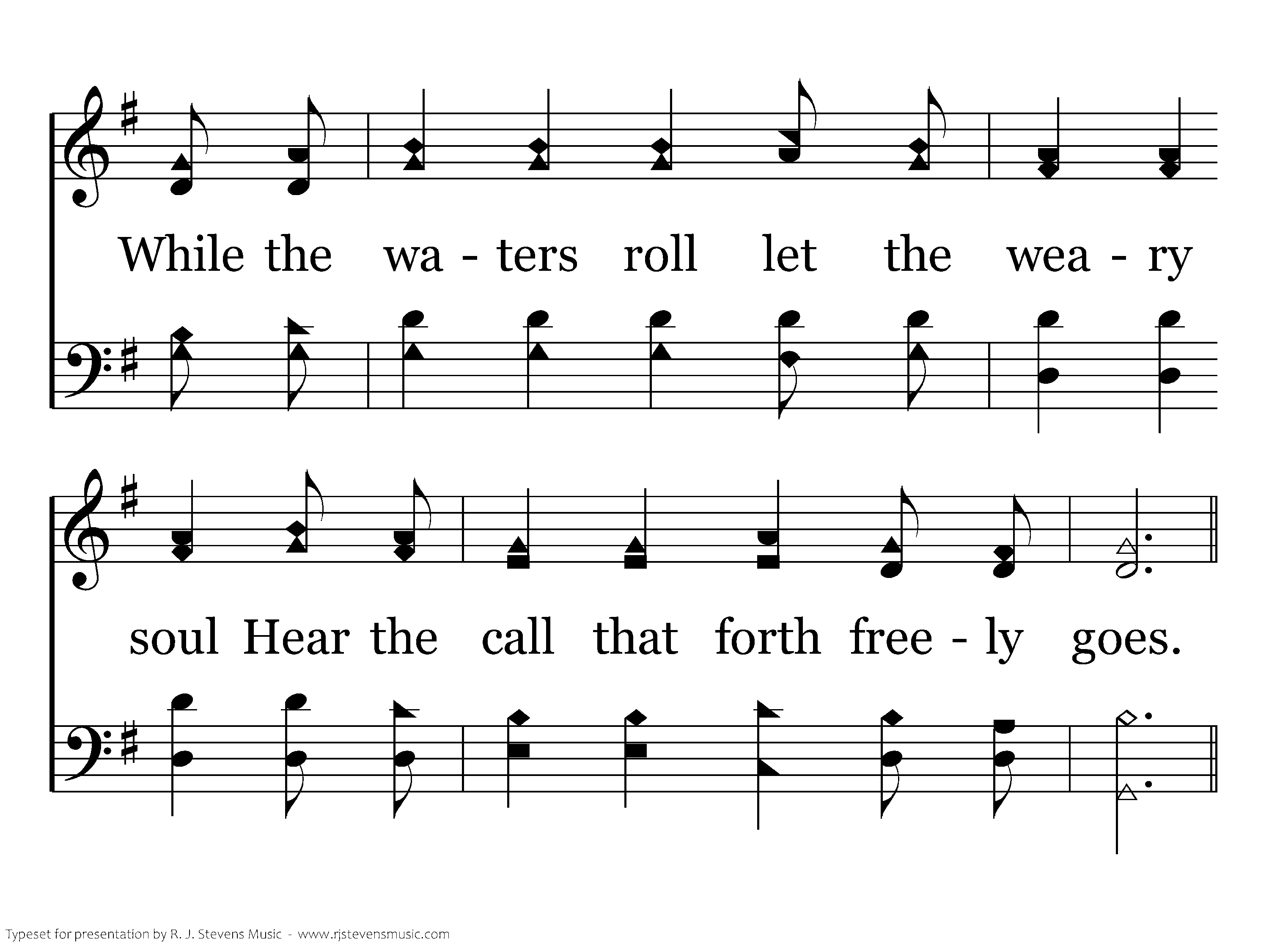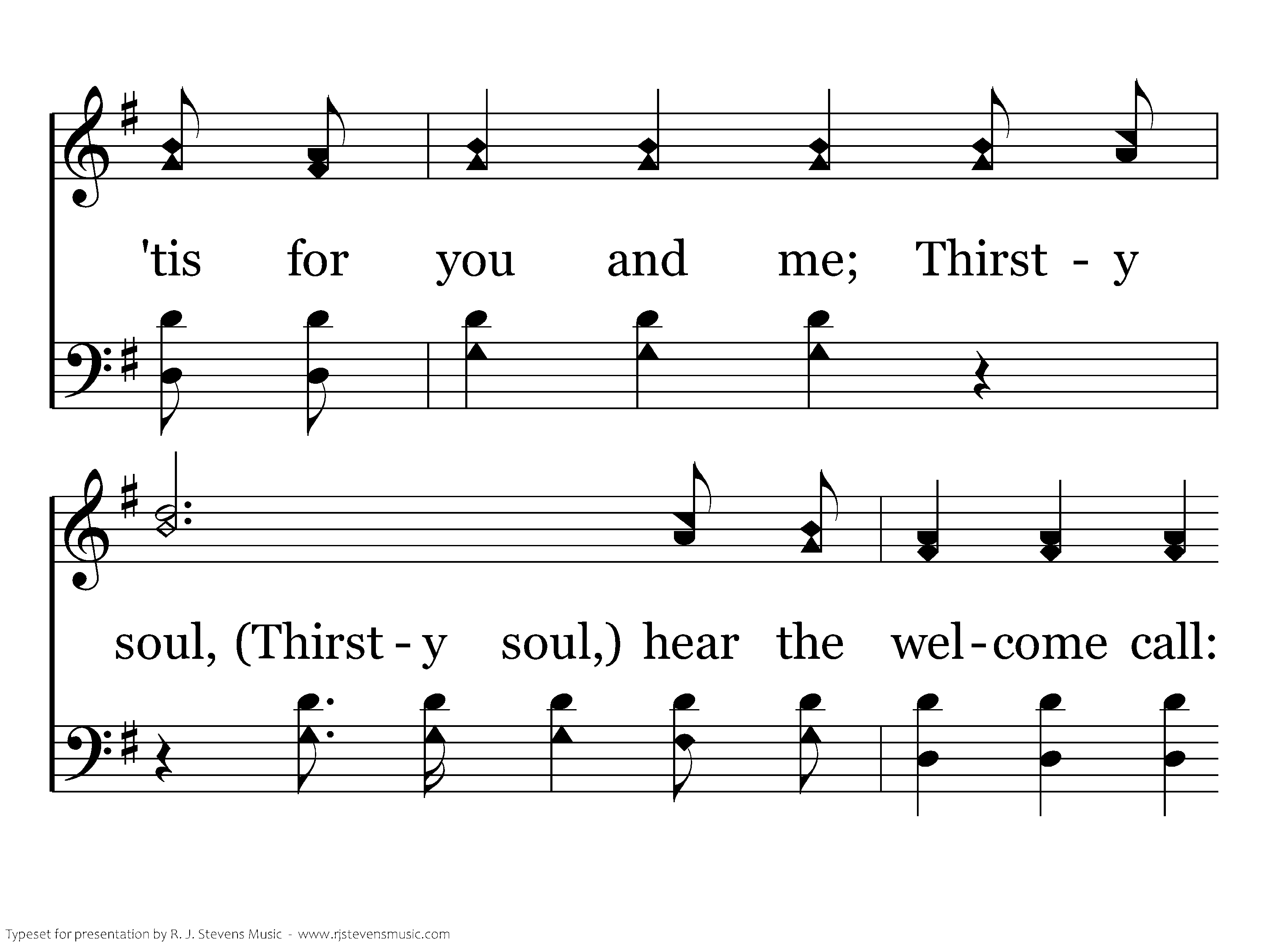 Will you come, to the fountain free? Will you come, 'tis for you and me? Thirsty soul, hear the welcome call, 'Tis a fountain opened to all.