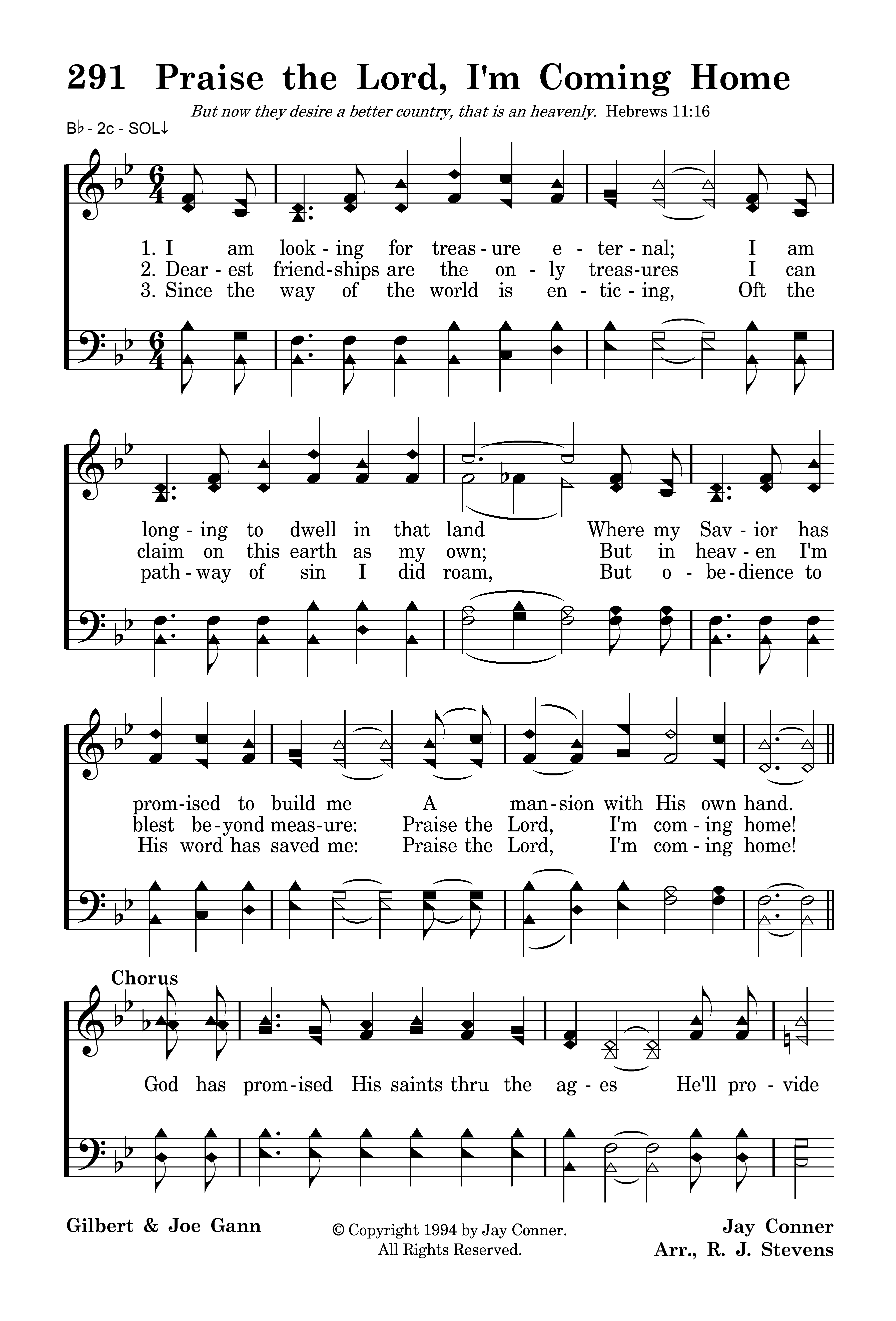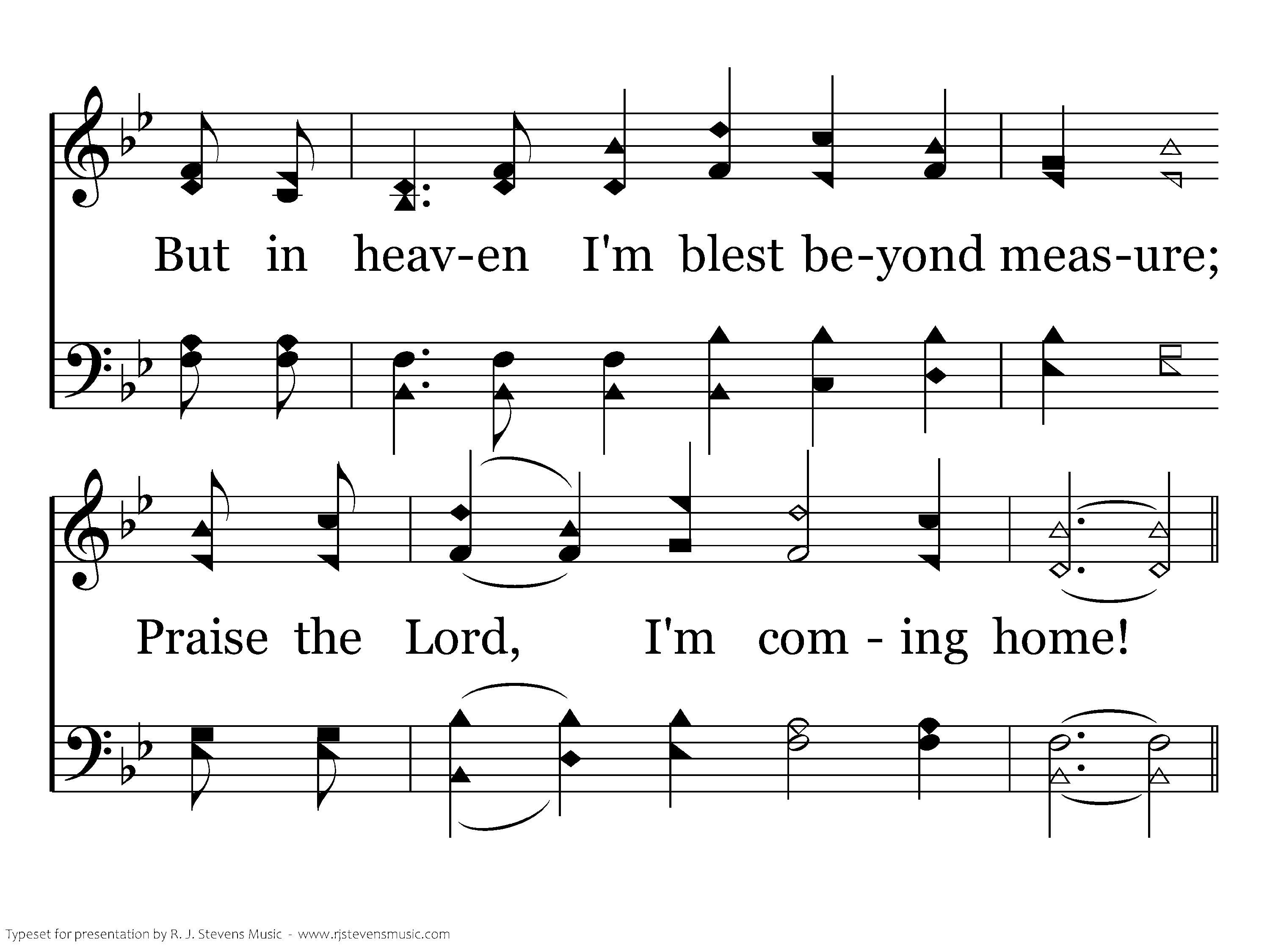 Dearest friendships are the only treasure I can claim on this earth as my own; But in heaven I'm blessed beyond measure: Praise the Lord, I'm coming home!
