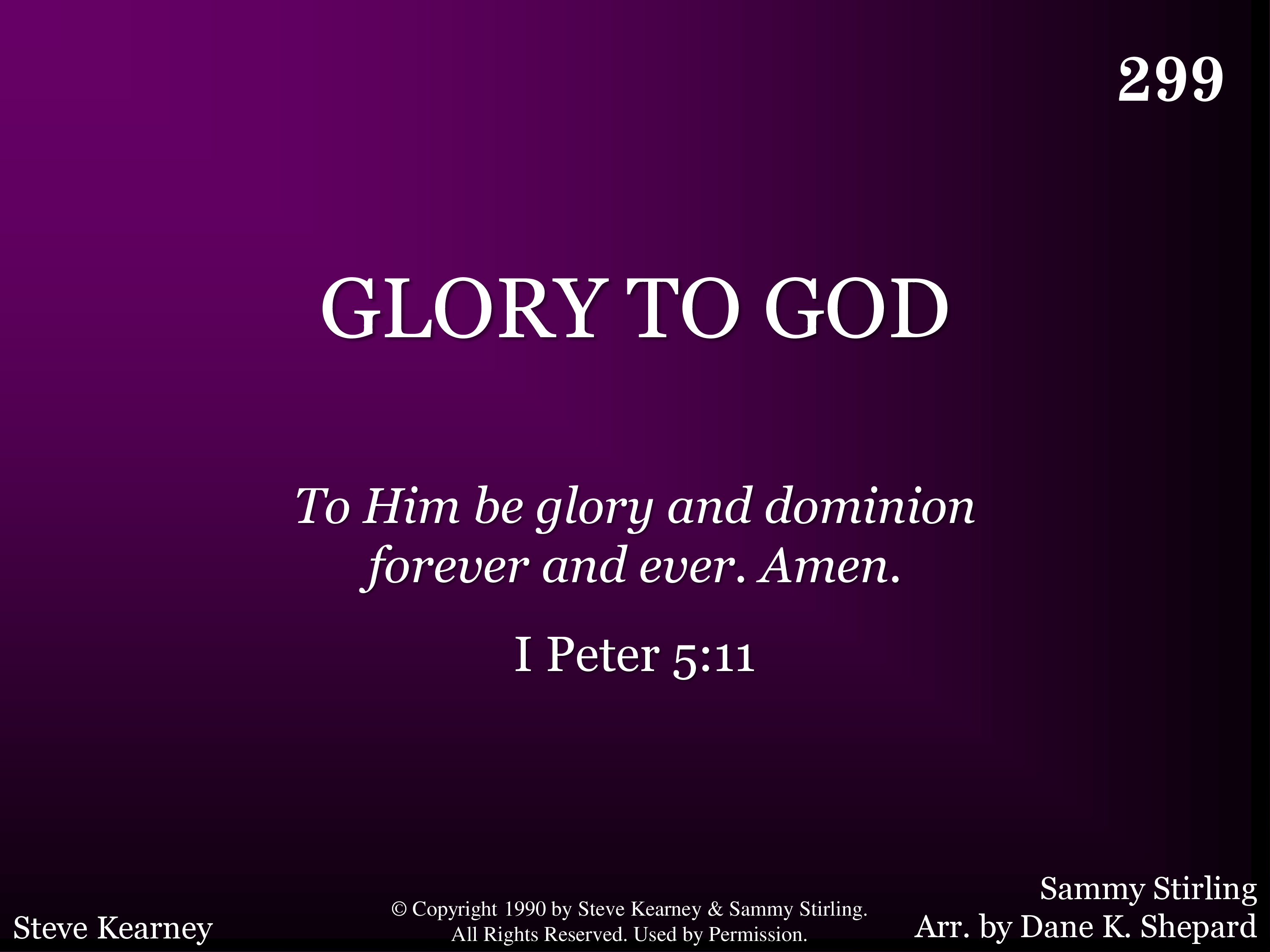 - © Copyright 1990 by Steve Kearney & Sammy Stirling. All Rights Reserved. Used by Permission.