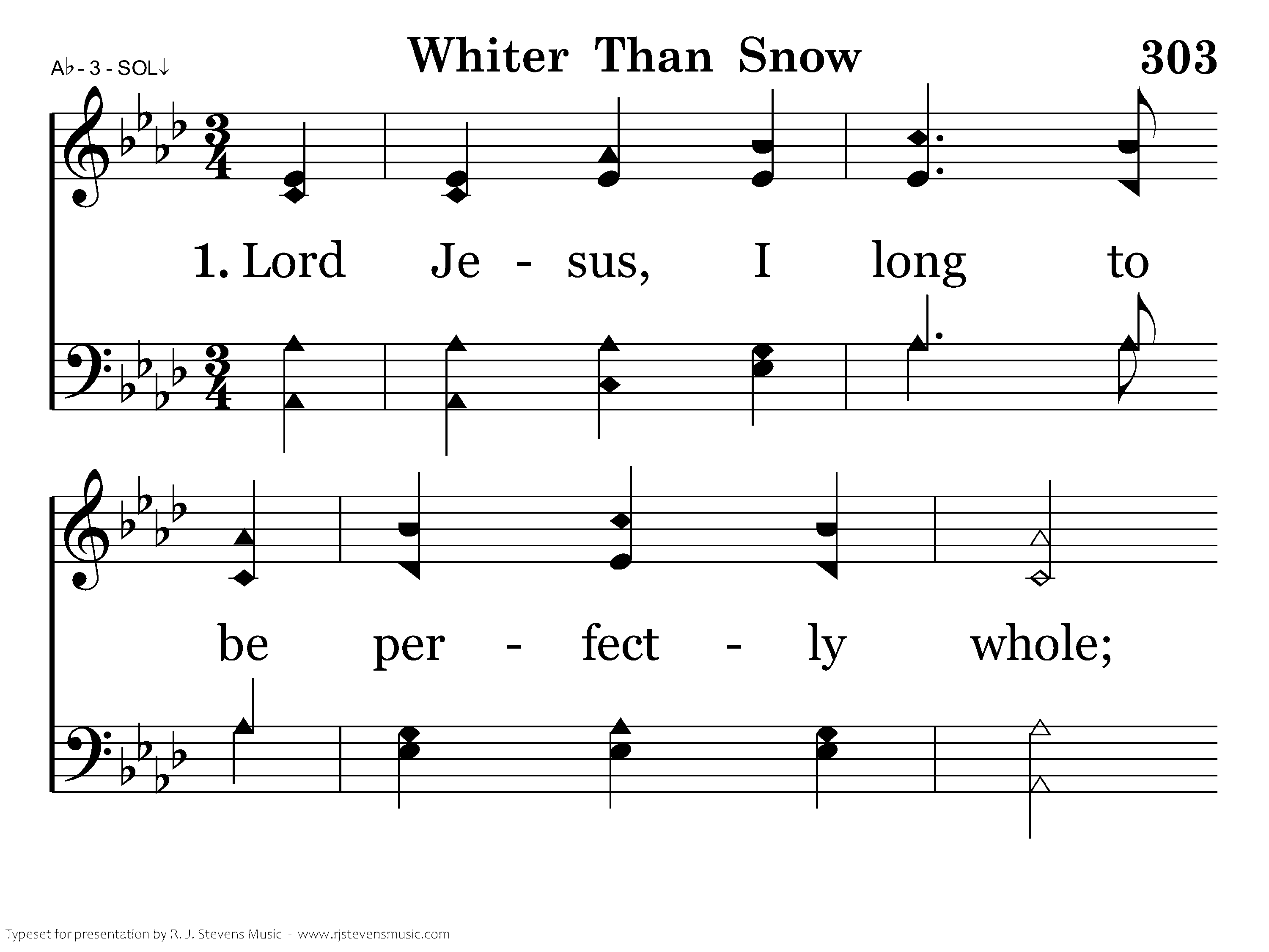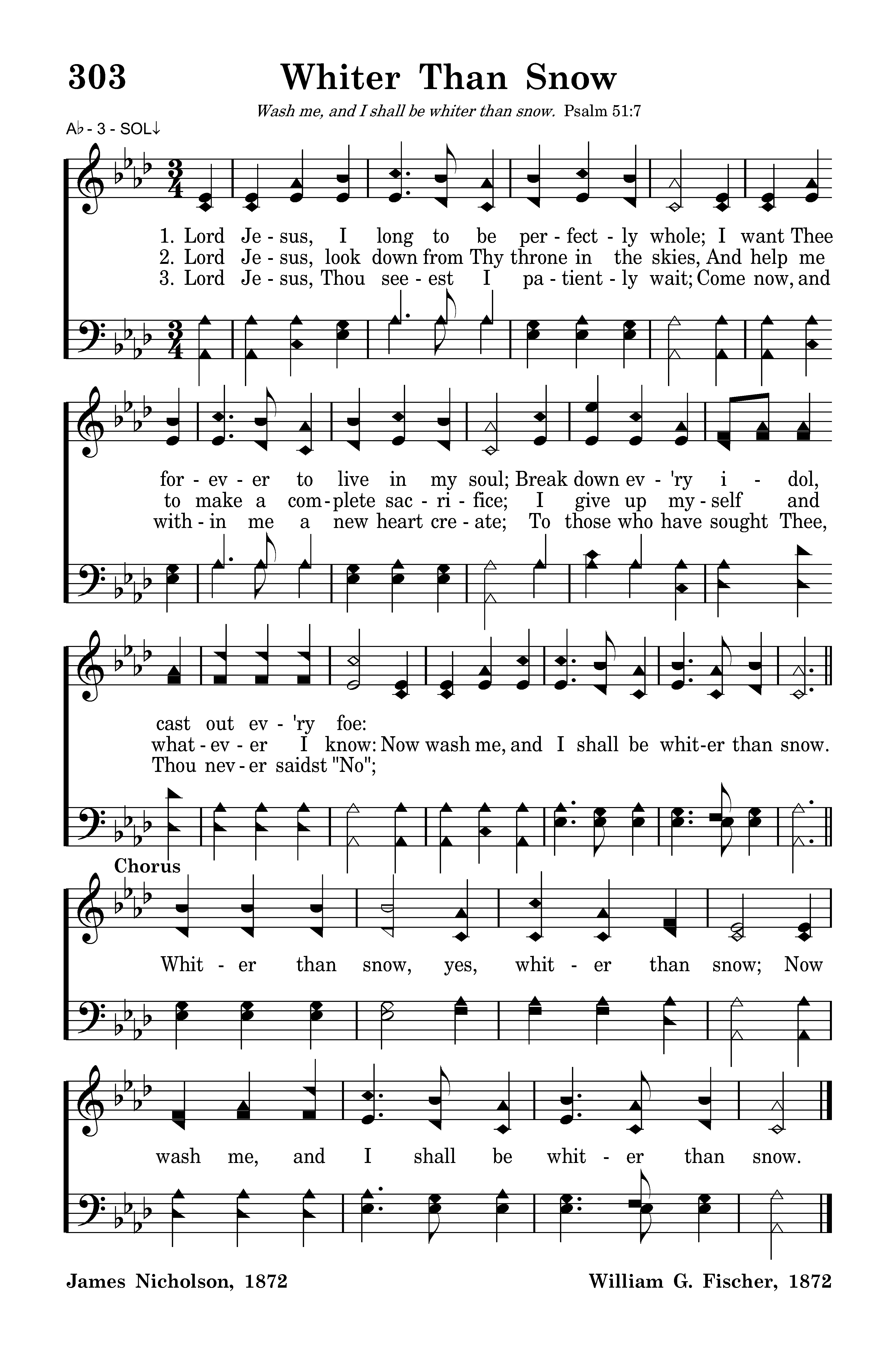 Lord Jesus I long to be perfectlly whole, I want Thee forever to live in my soul, Break down ev'ry idol, cast out every foe, nNow wash me and I shall be whiter than snow.