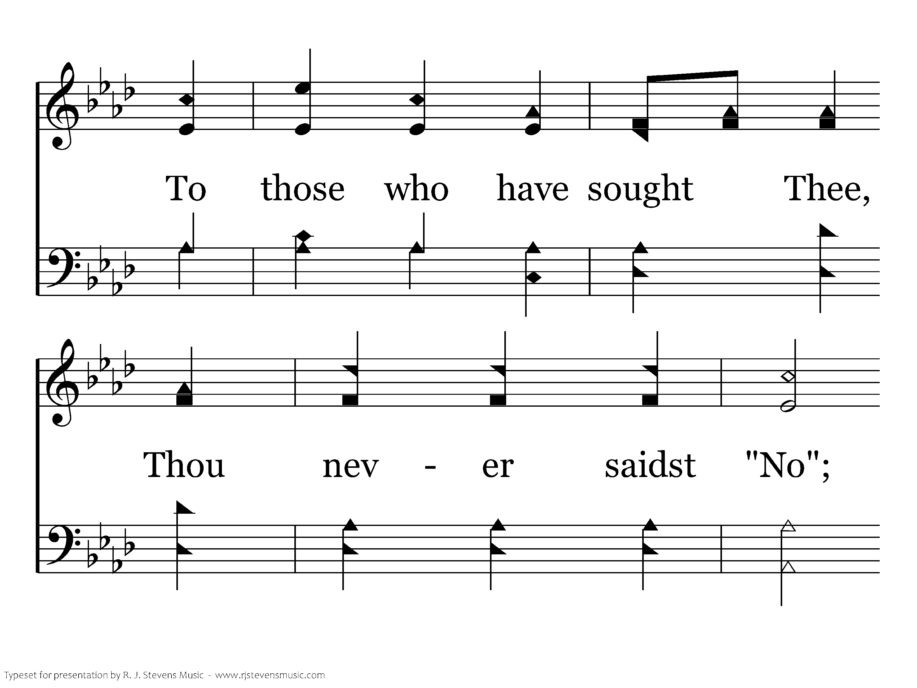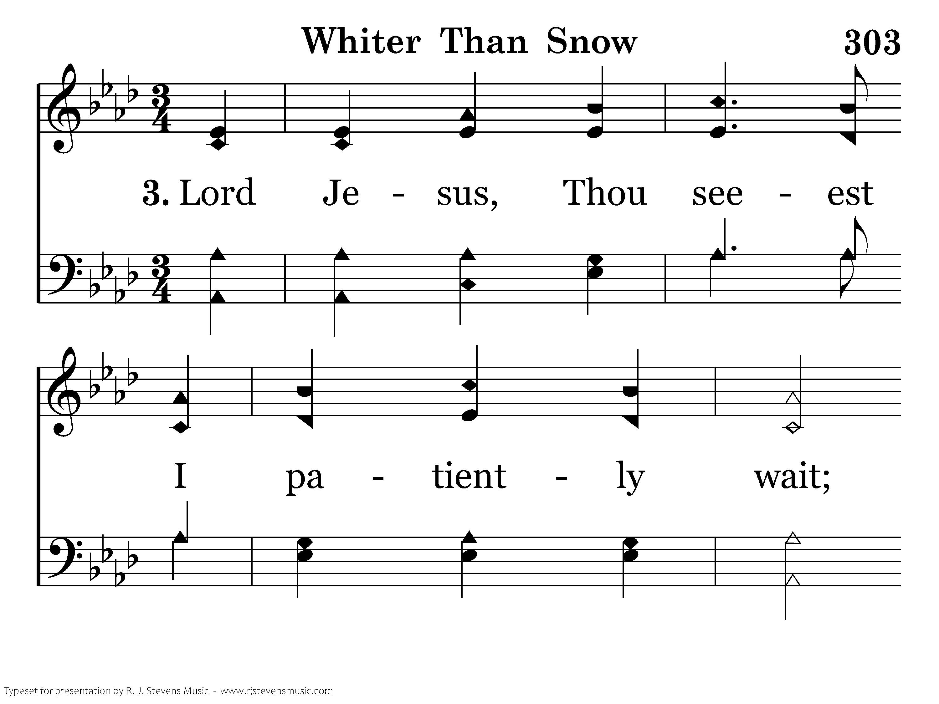 Lord, Jesus thou seeest I patiently wait, Come now and within me a new heart create; To those who have sought Thee Thou never said no, Now wash me and I shall be whiter than snow.