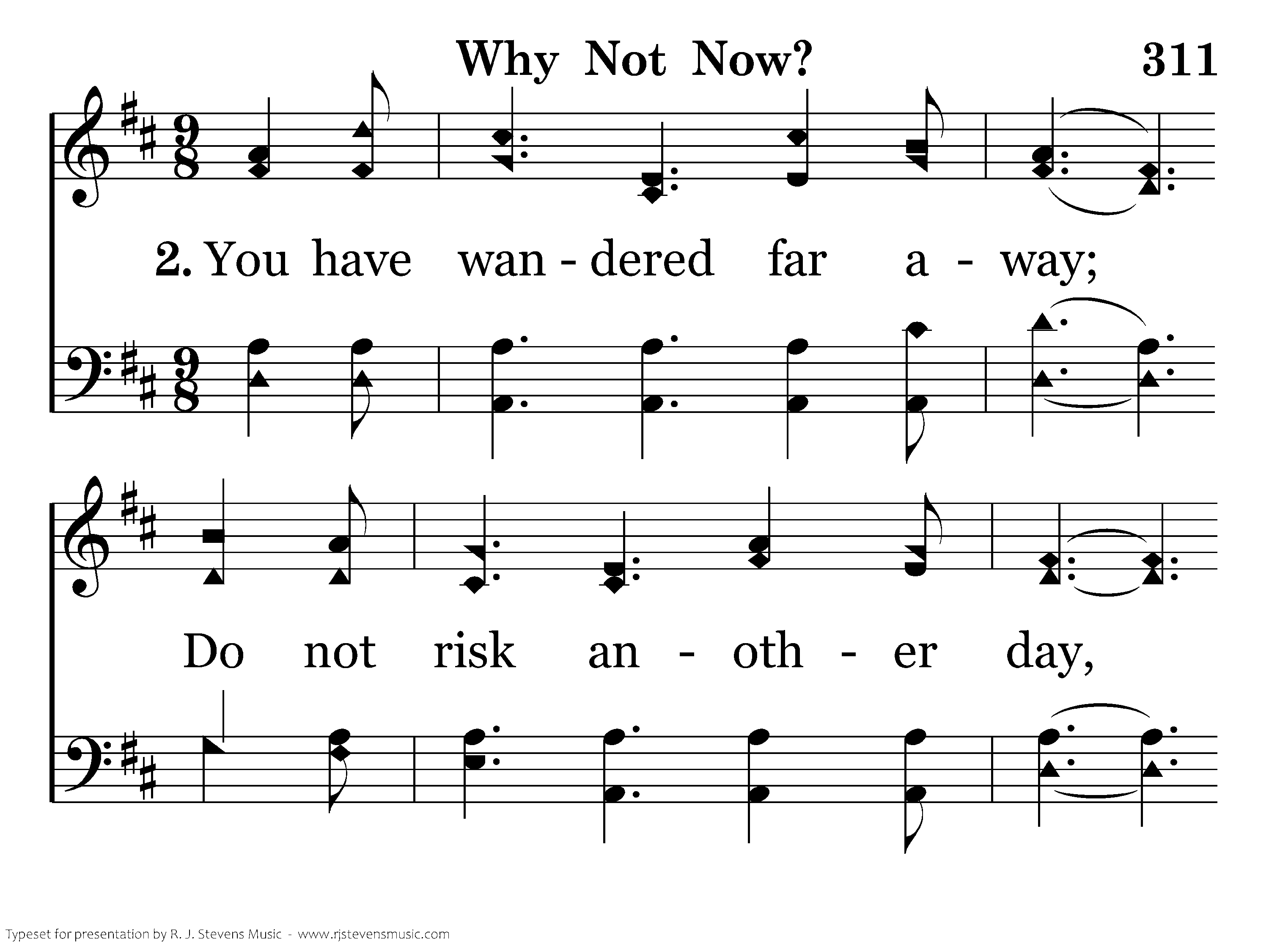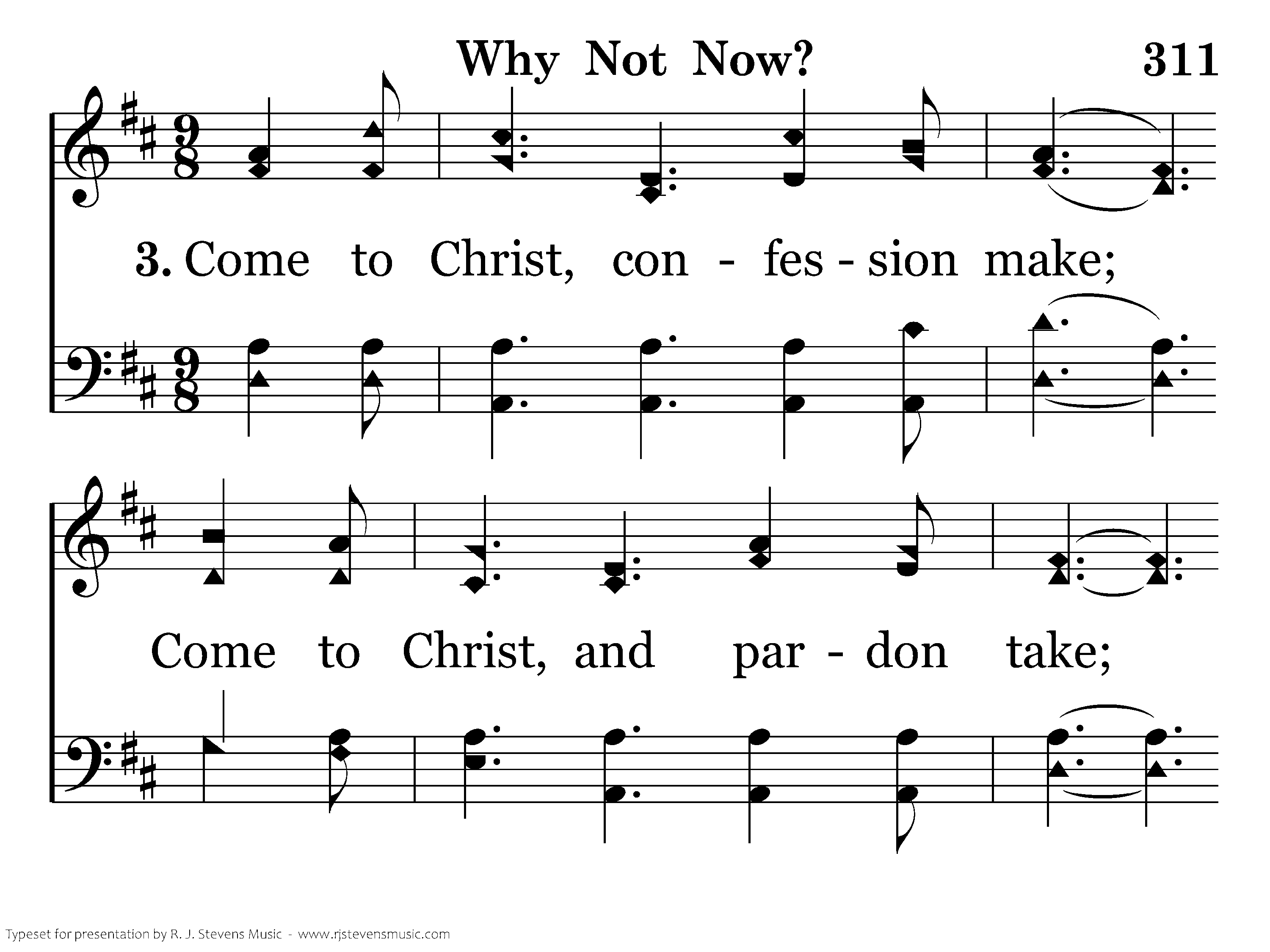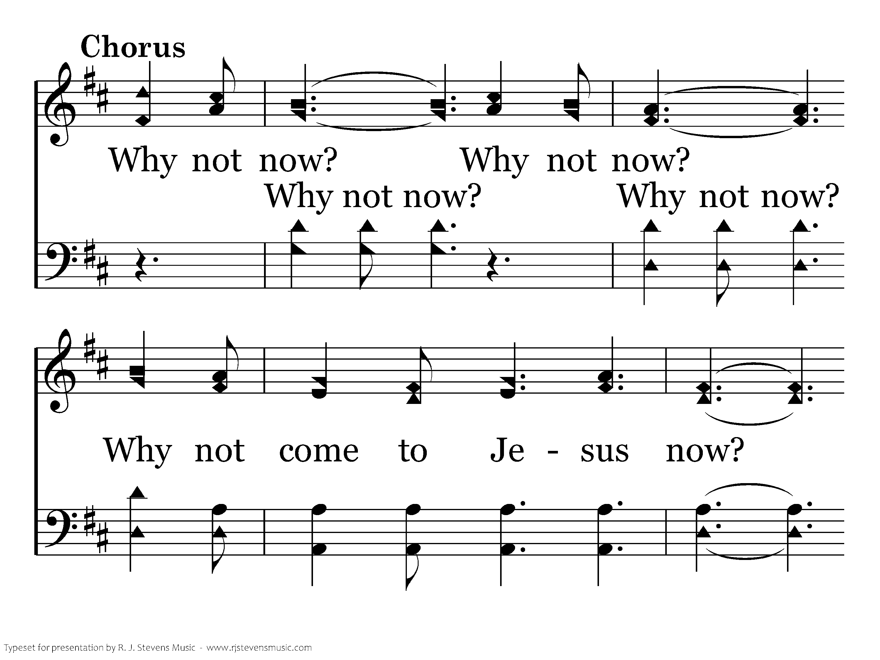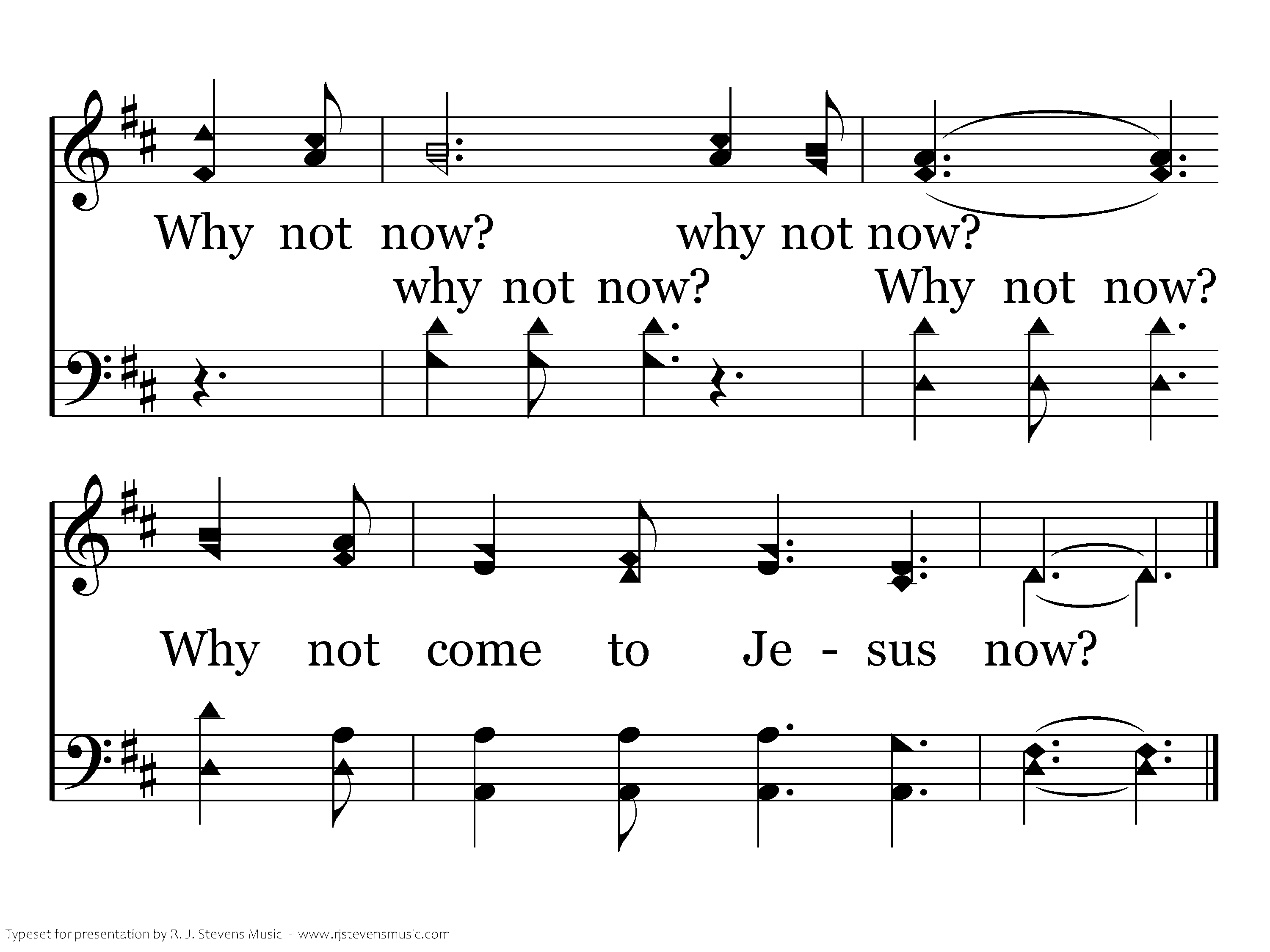 Why not now? Why not now? Why not come to Jesus now? Why not now? Why not now? Why not come to Jesus now?