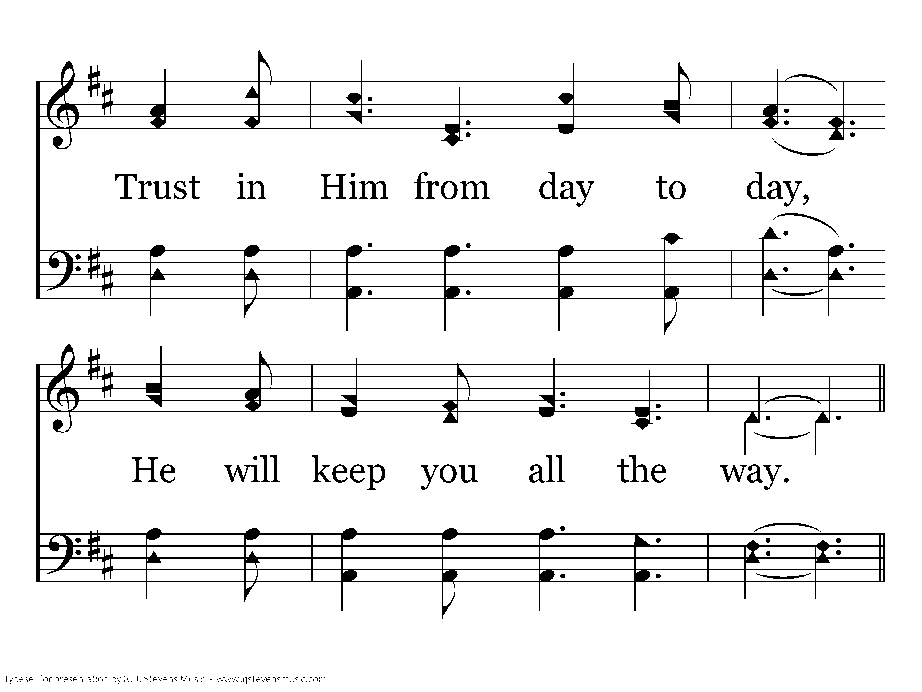 Come to Christ, confession make; come to Christ and pardon take; Trust in Him from day to day, He will keep you all the way.