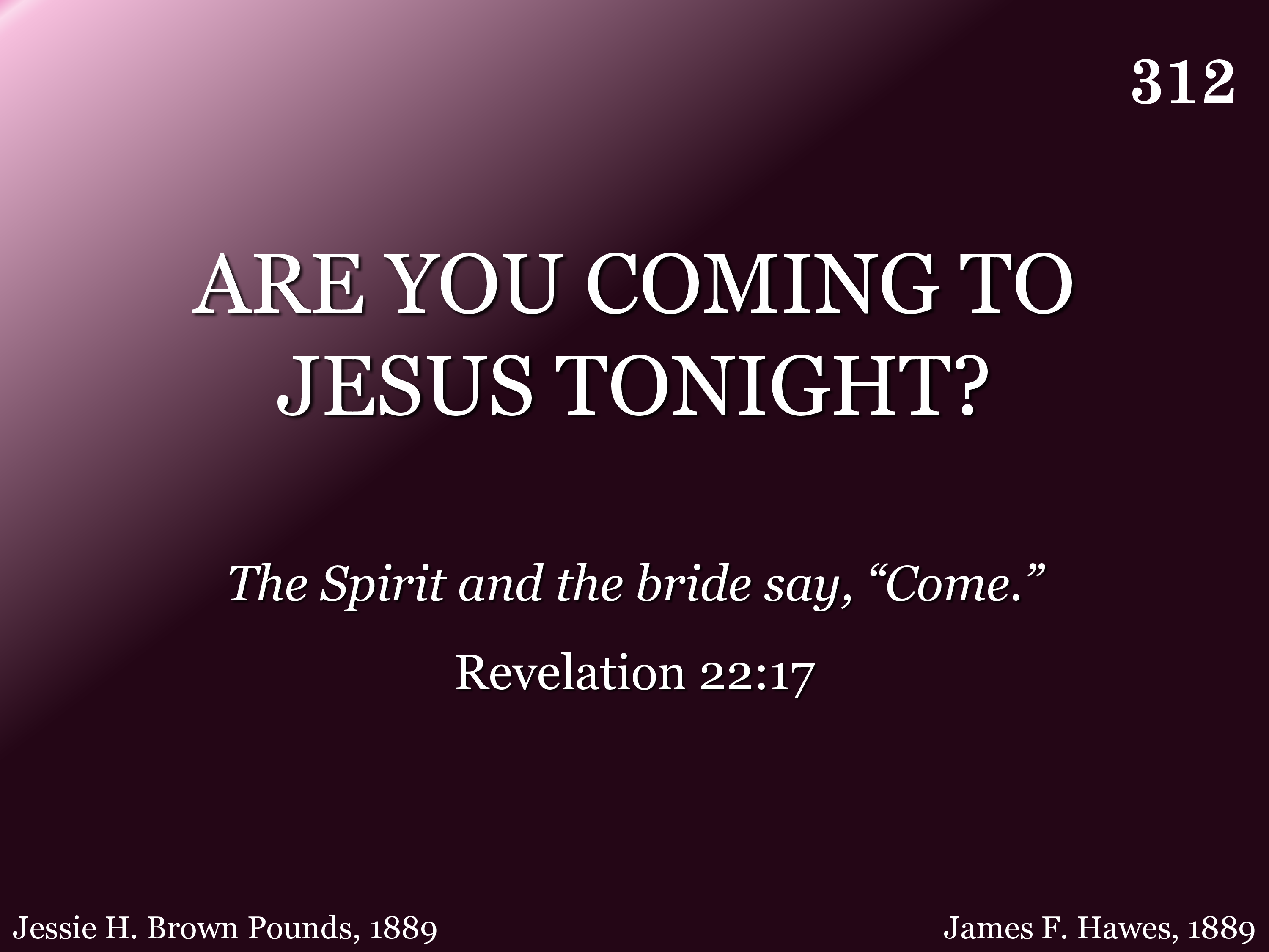 Are you coming to Jesus tonight? Are you coming to Jesus tonight? The bride and the Spirit invite, Are you coming to Jesus tonight?