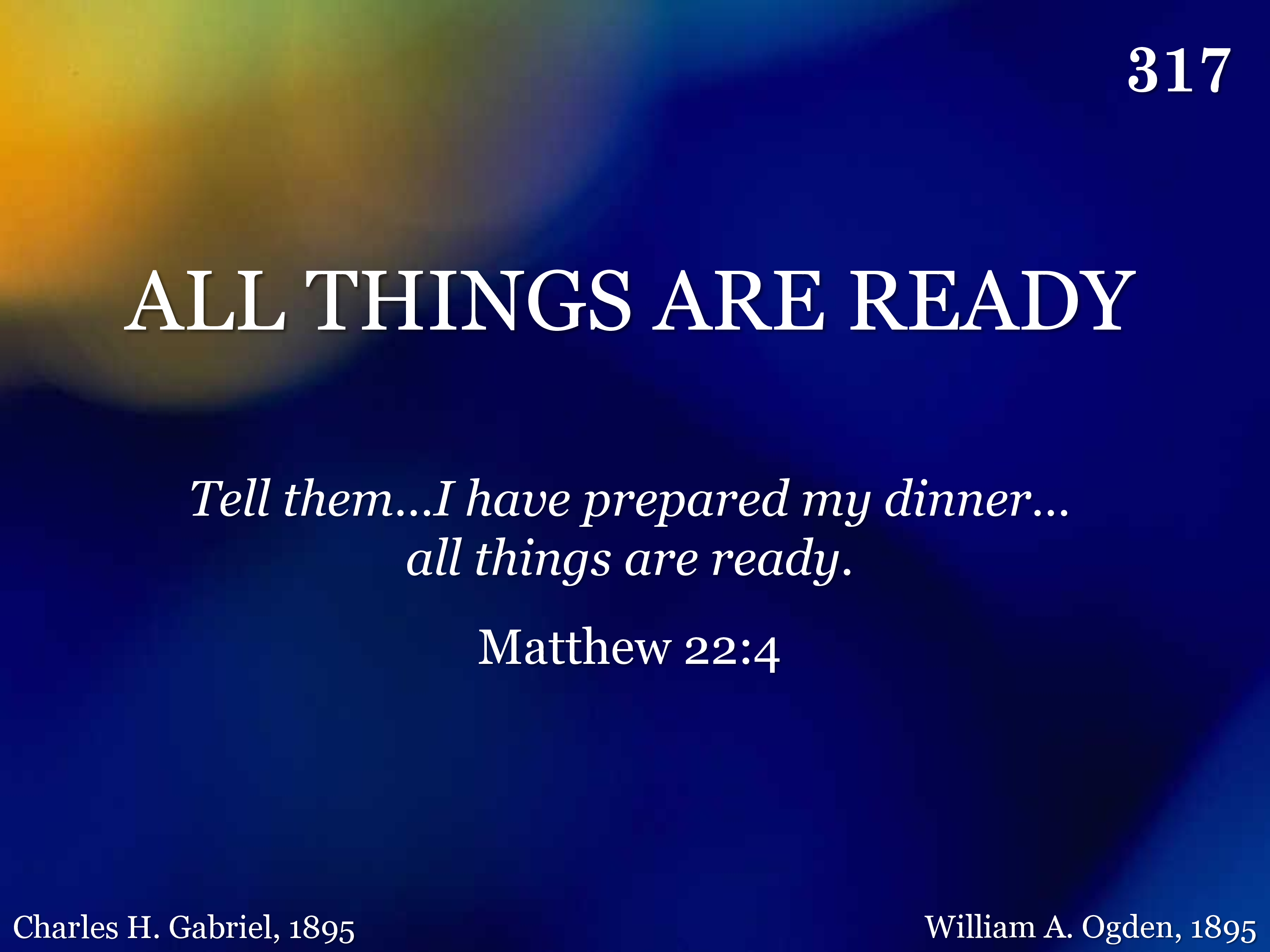 All things are ready, come to the feast! Come for the table now is spread, Ye famishing, ye weary come, And thou shalt be richly fed.