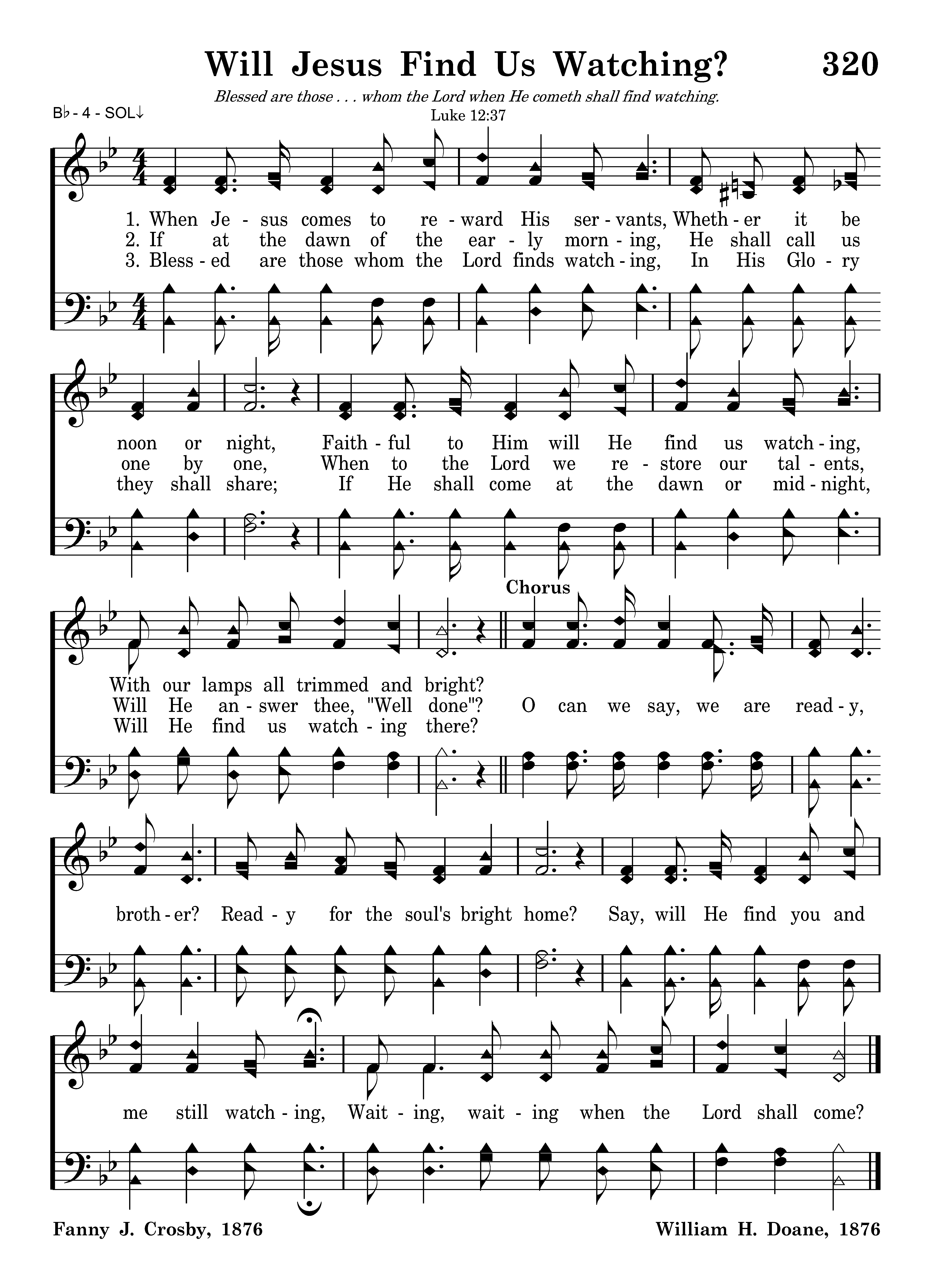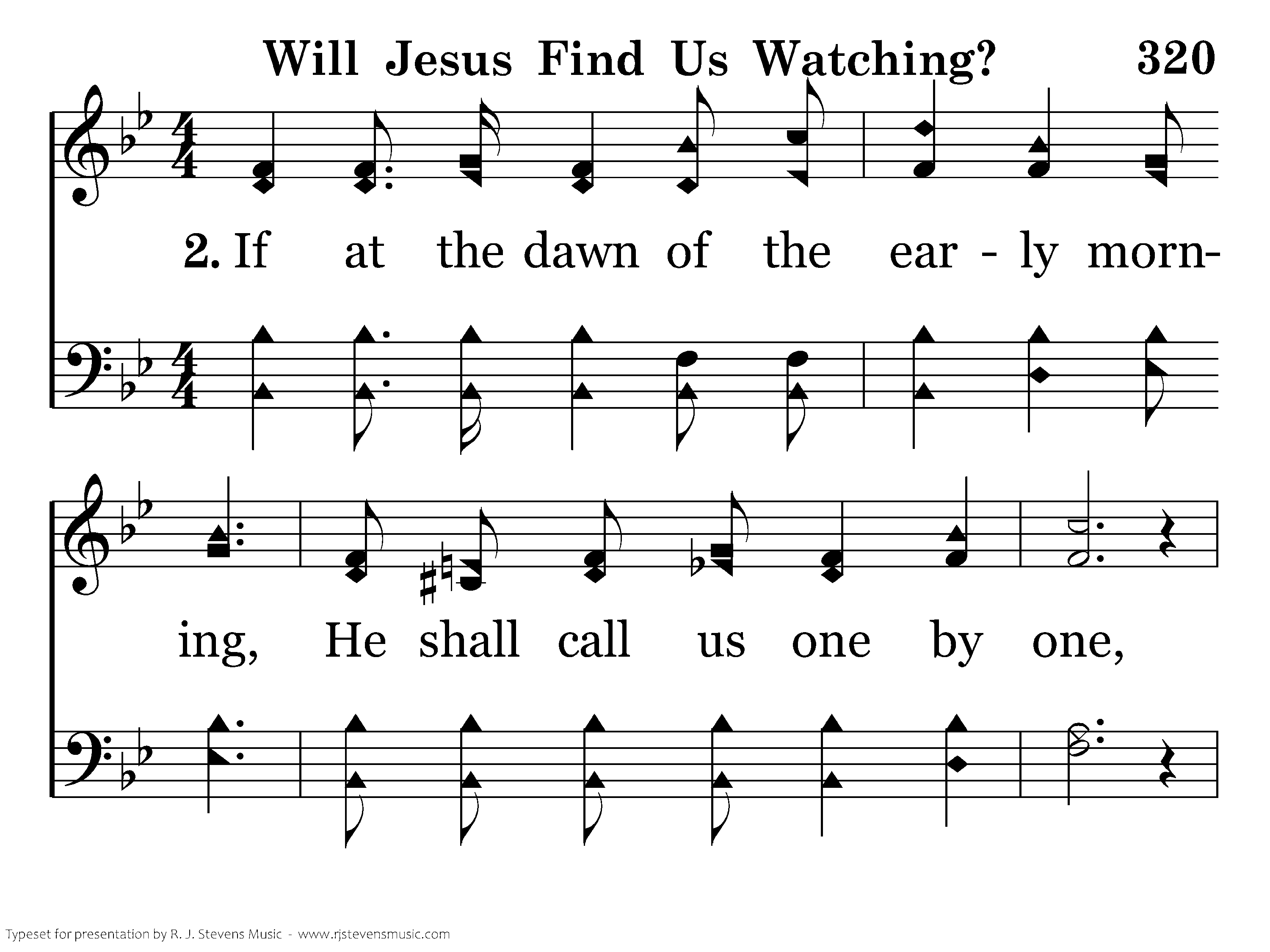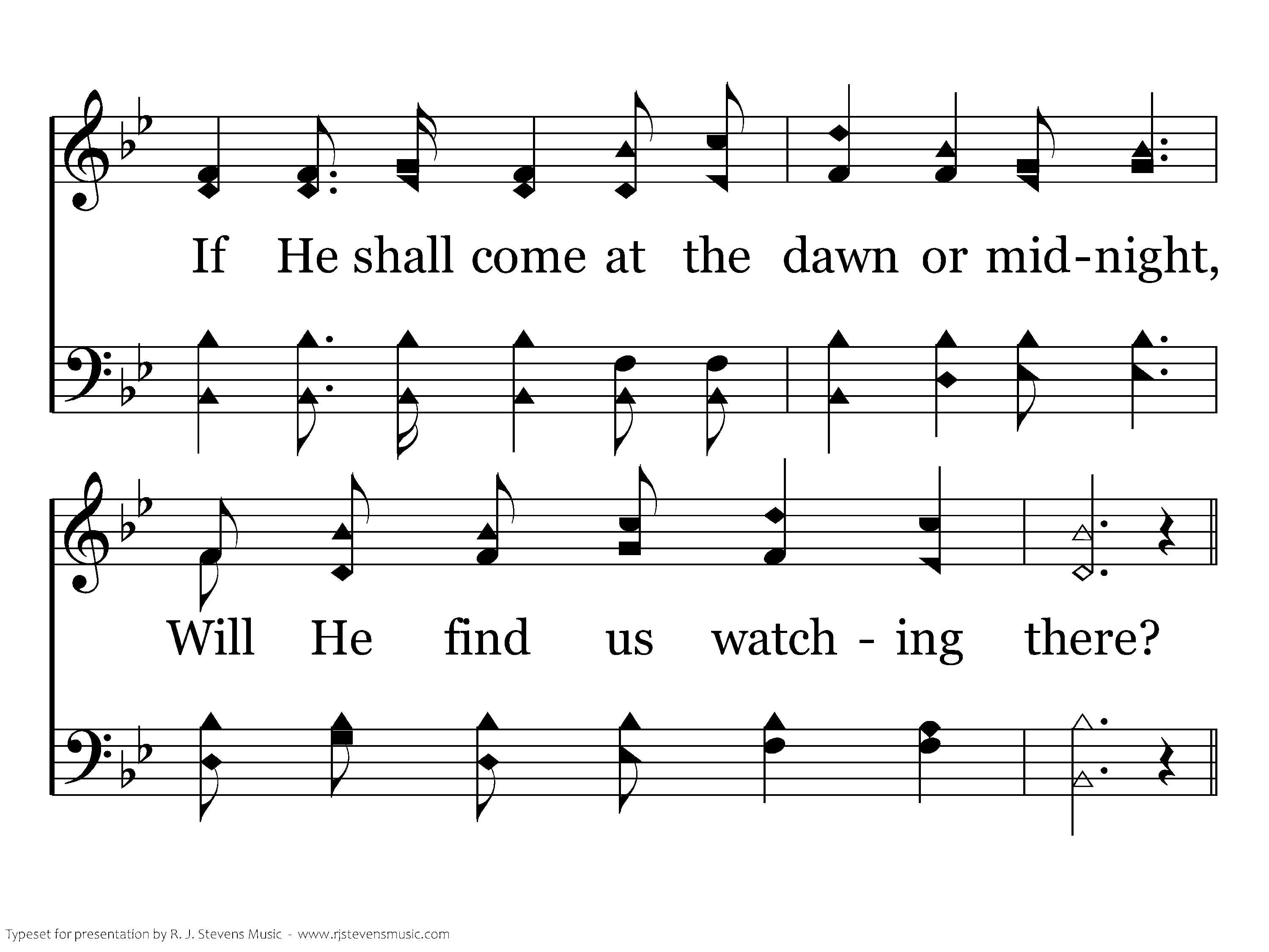 Blessed are those whom the Lord finds watching, In His glory they shall share; If He shall come at the dawn or midnight, Will He find us watching there?