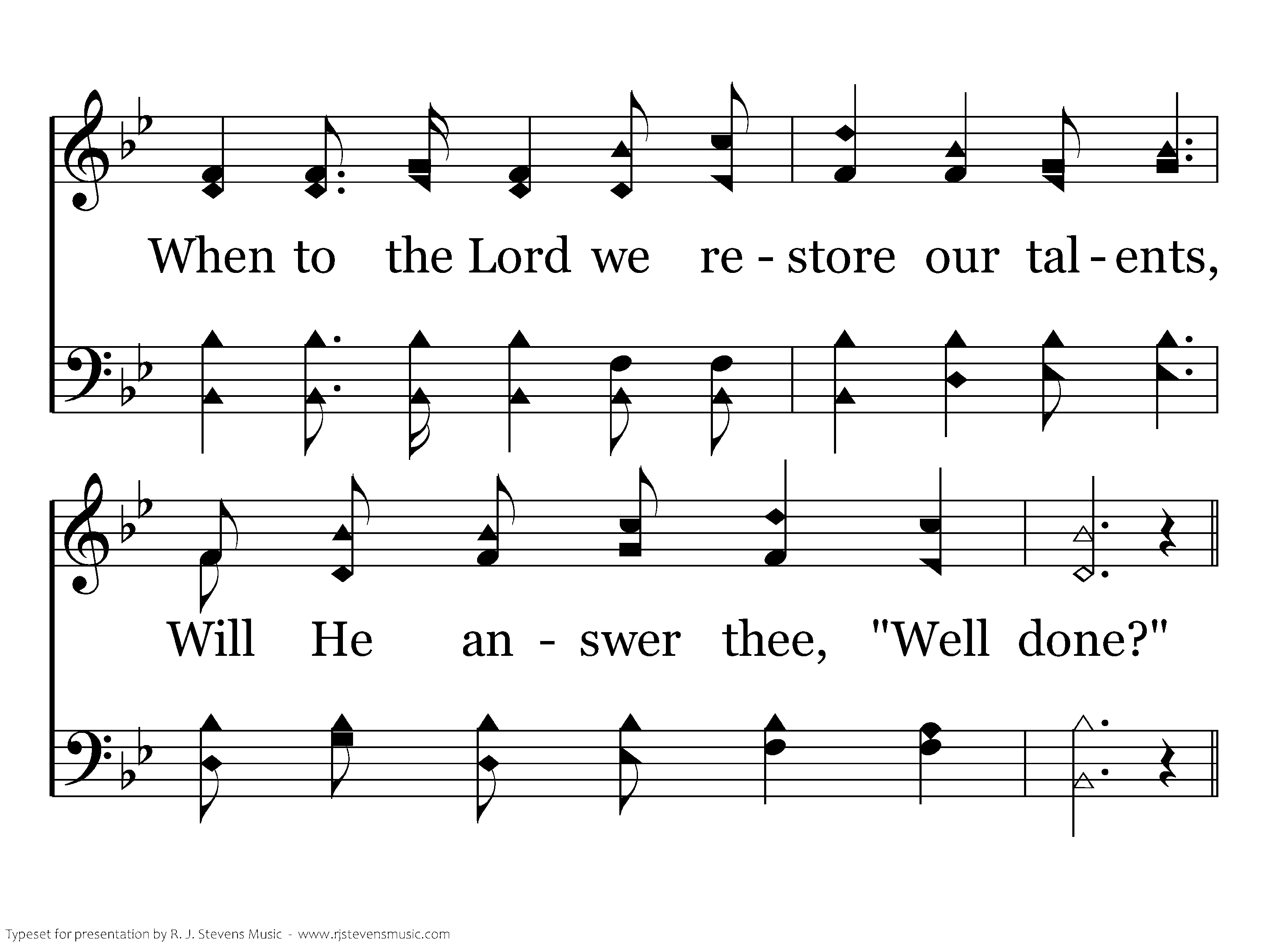 If at the dawn of the early morning, He shall call us one by one, When to the Lord we restore our talents, Will He answer thee Well done?