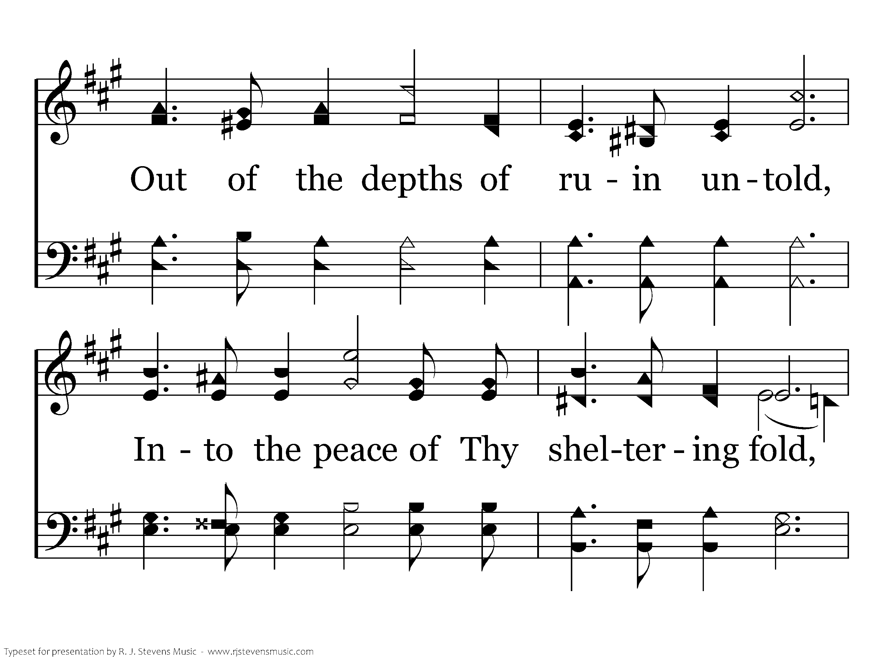Out of the fear and dread of the tomb, Jesus I come, Jesus I come, Into the joy and light of Thy home, Jesus I come to thee; Out of the depths of ruin untold, Into the peace of Thy sheltering fold, Ever Thy glorious face to behold, Jesus I come to Thee.