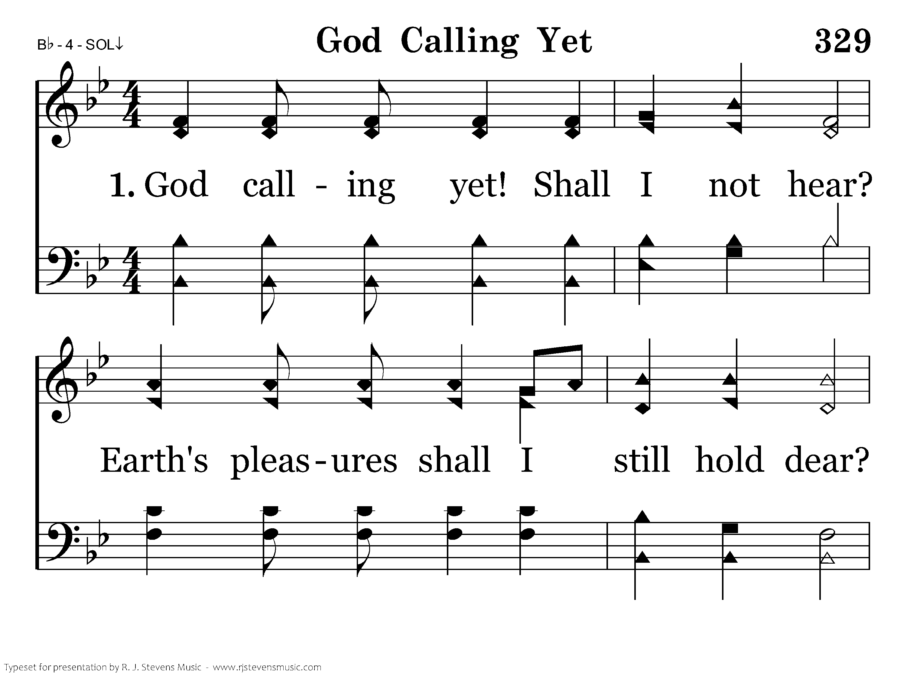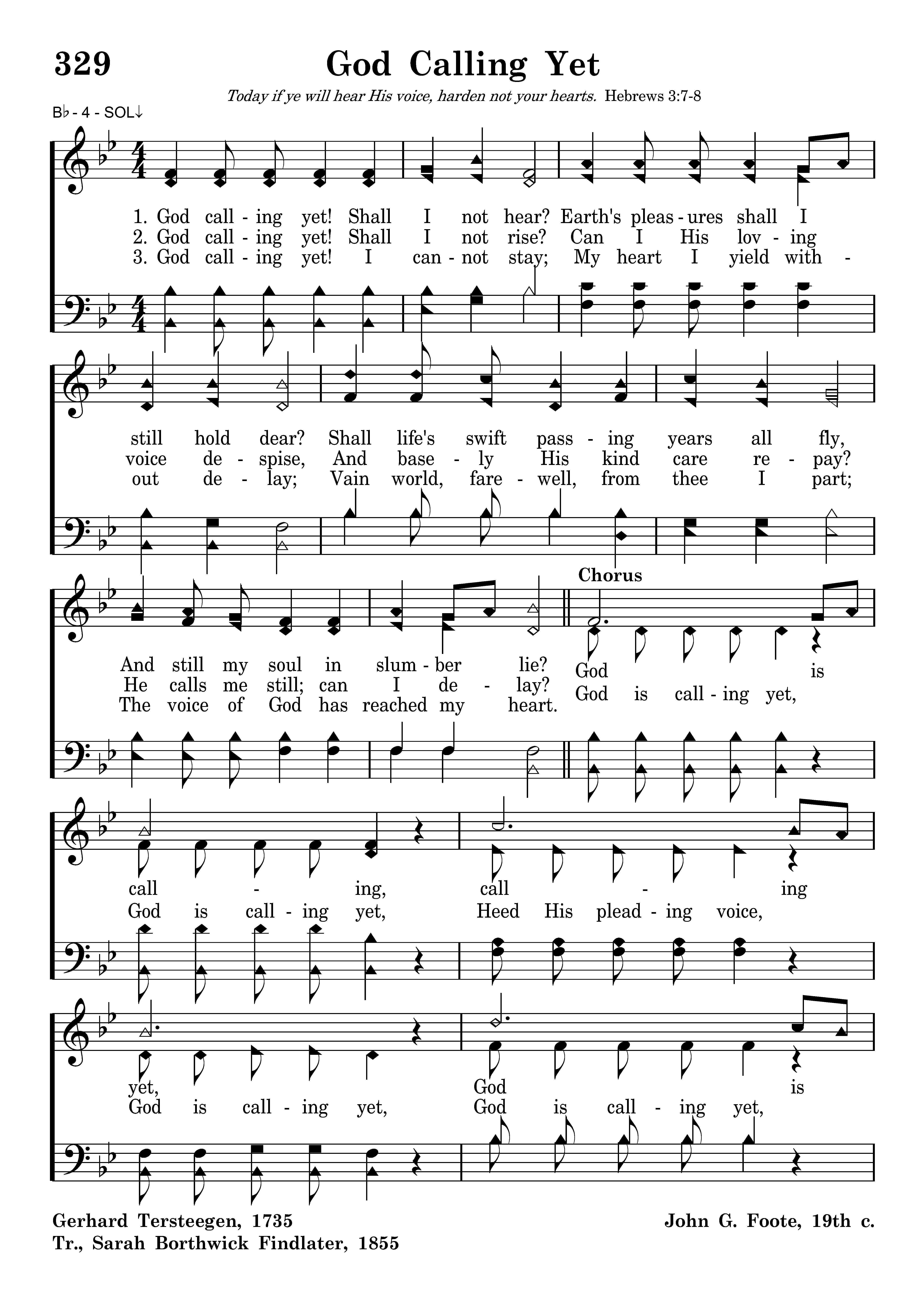 God calling yet, Shall I not hear? Earths pleasures I shall still hold dear? Shall life's swift passing years all fly, And still my soul in slumber lie?
