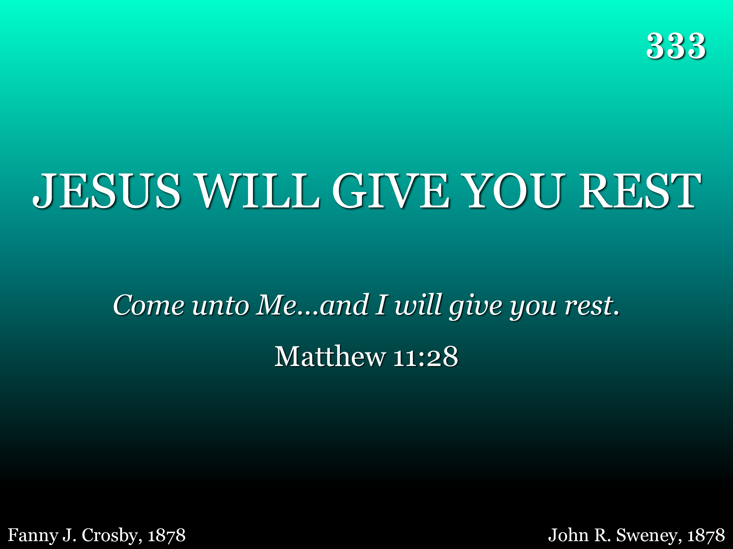O happy rest, sweet happy rest, Jesus will give you rest; O why won't you come in simple trusting faith? Jesus will give you rest.
