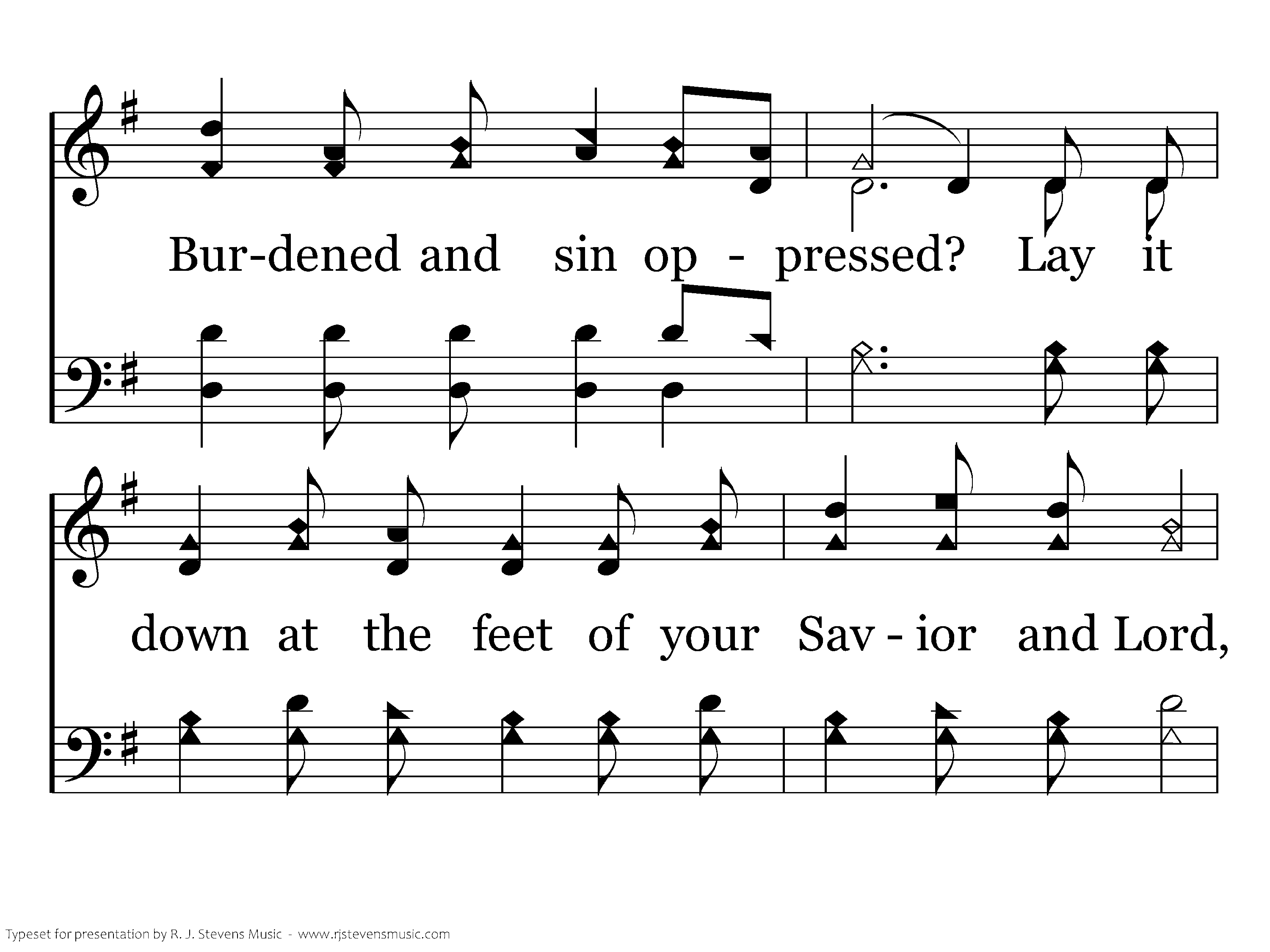 Will you come, will you come? With your poor broken heart, Burdened and sin oppressed? Lay it down at the feet of your Savior and Lord, Jesus will give you rest.