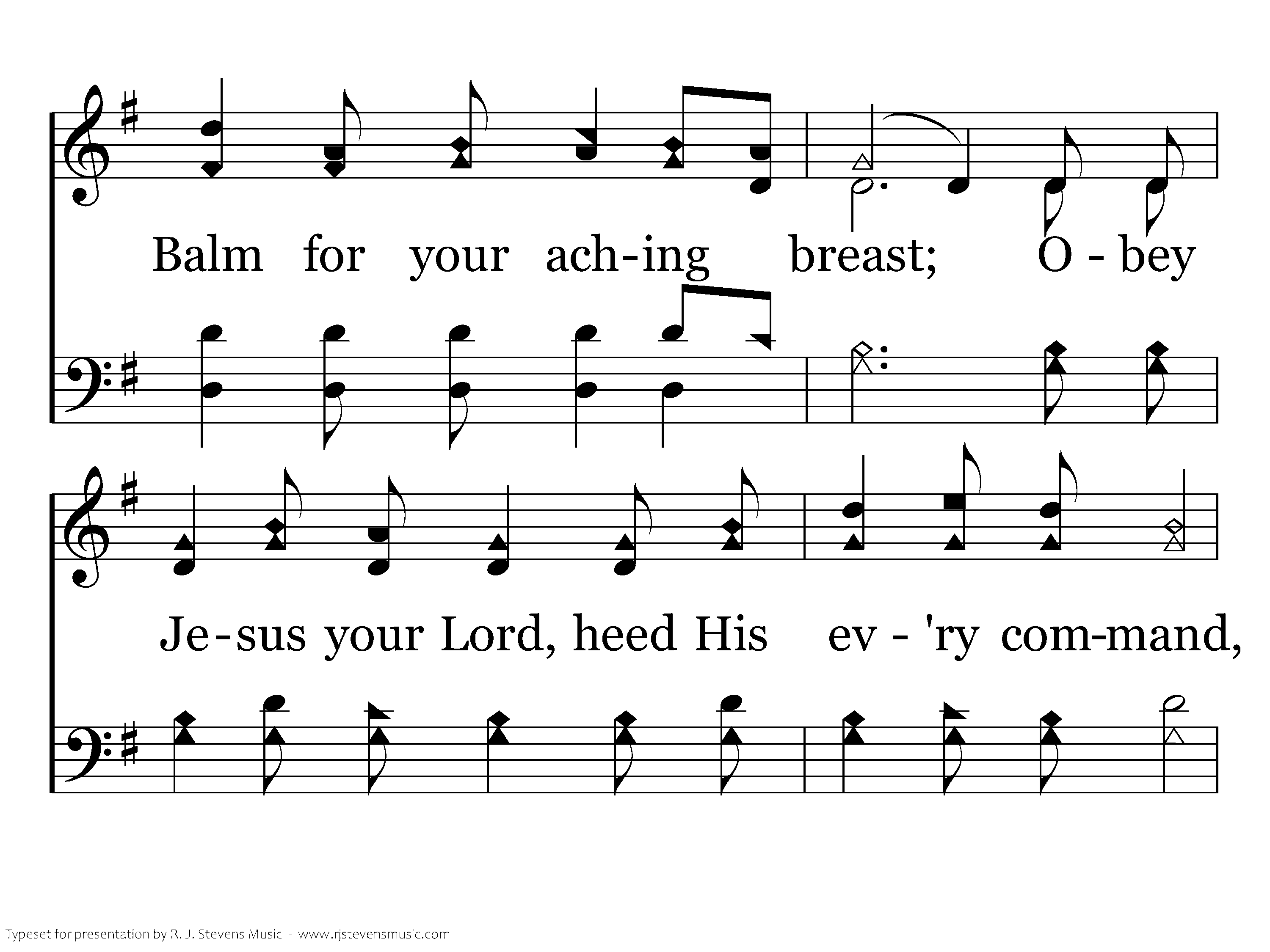 Will you come, will you come? There is mercy for you, Balm for your aching breast; Obey Jesus your lord, Heed His every command, Jesus will give you rest.