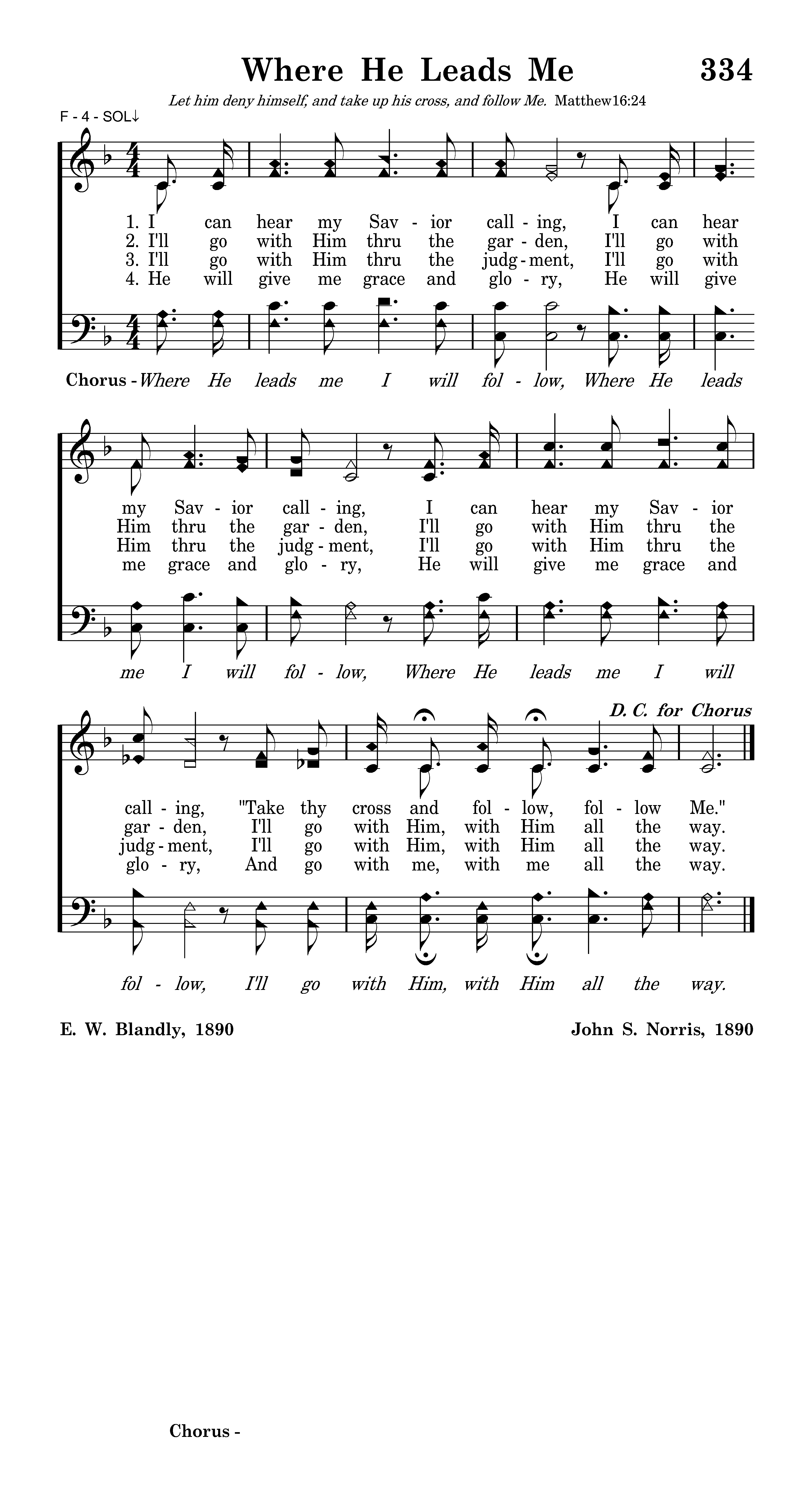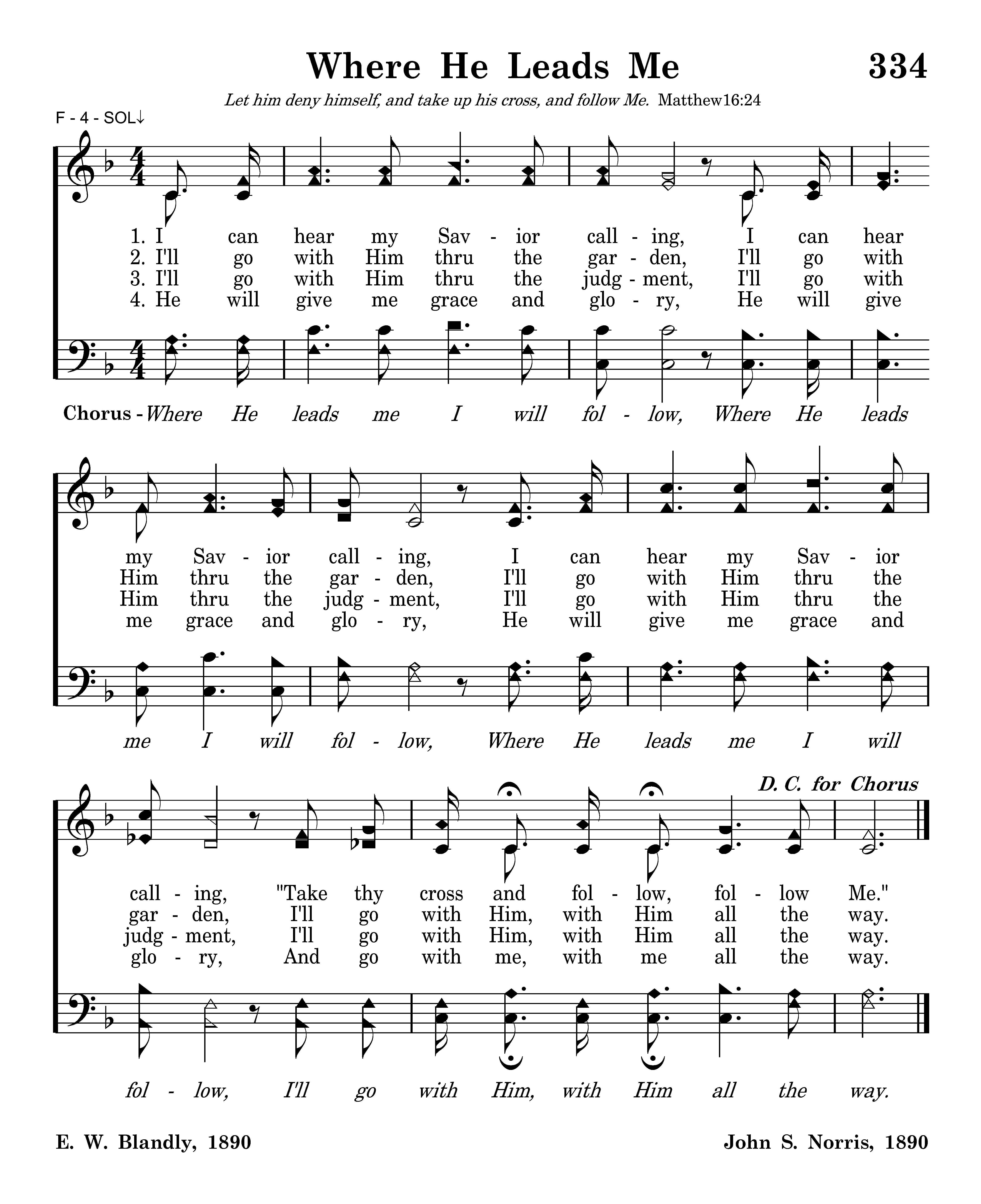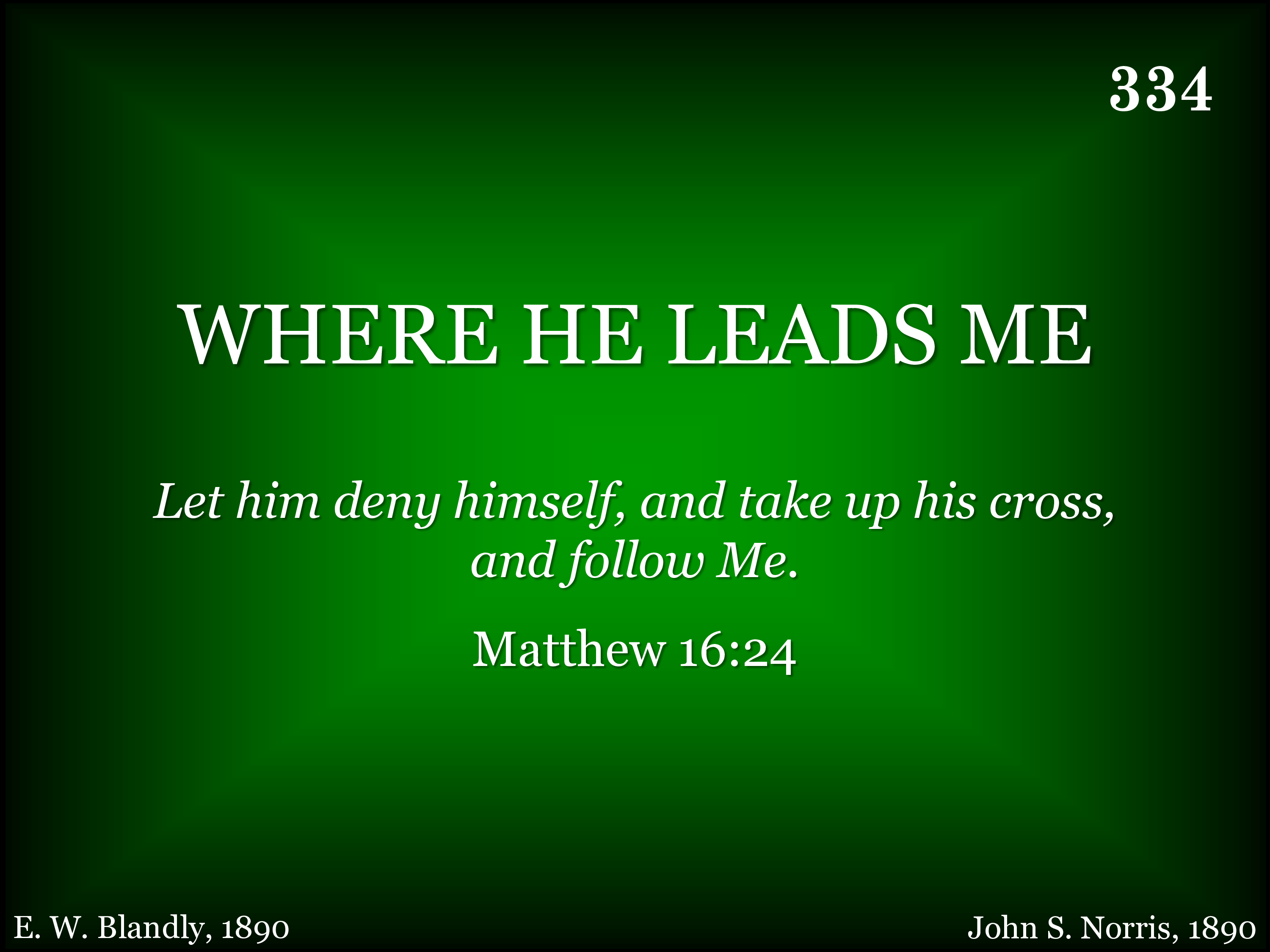 Where He leads me I will follow, Where He leads me I will follow, Where He leads me I will follow, I'll go with Him, with Him, all the way.