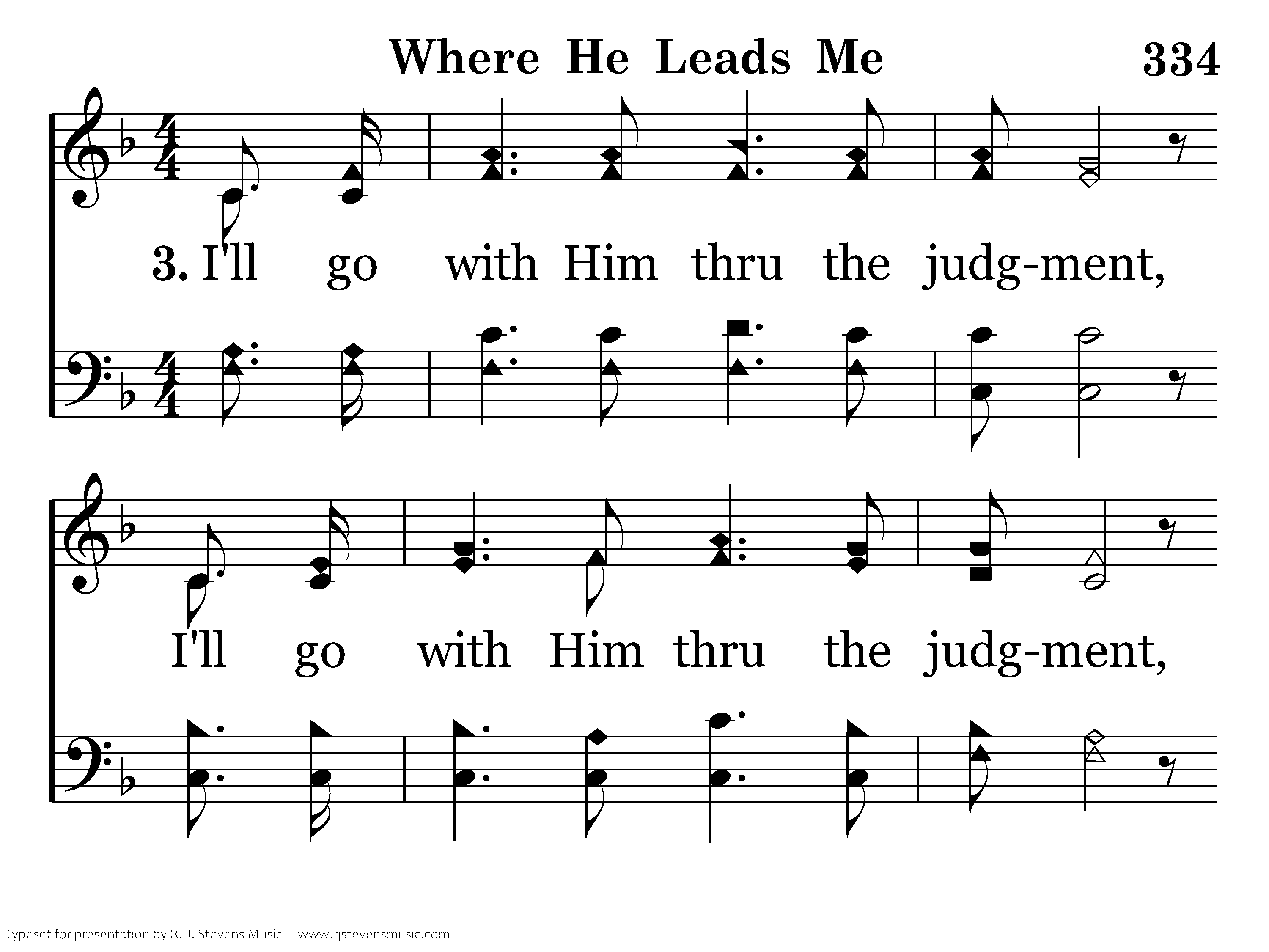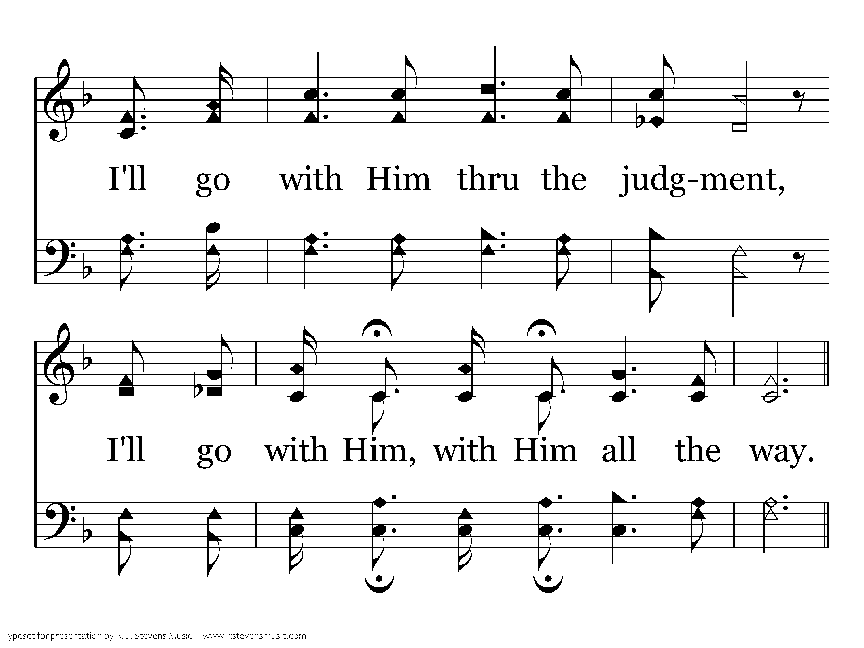 I'll go with Him thru the judgement, I'll go with Him thru the judgement, I'll go with Him thru the judgement, I'll go with Him, with Him all the way.