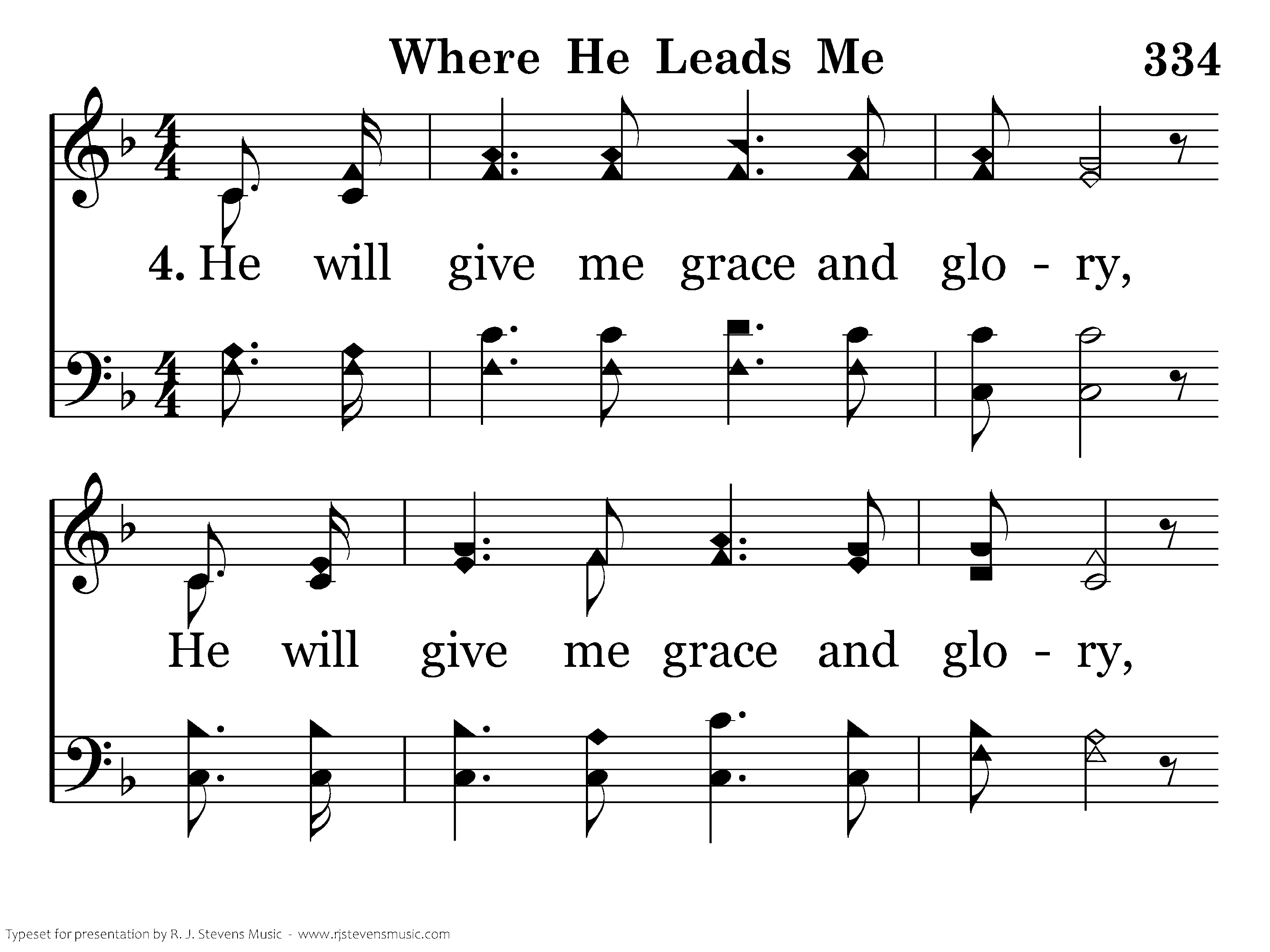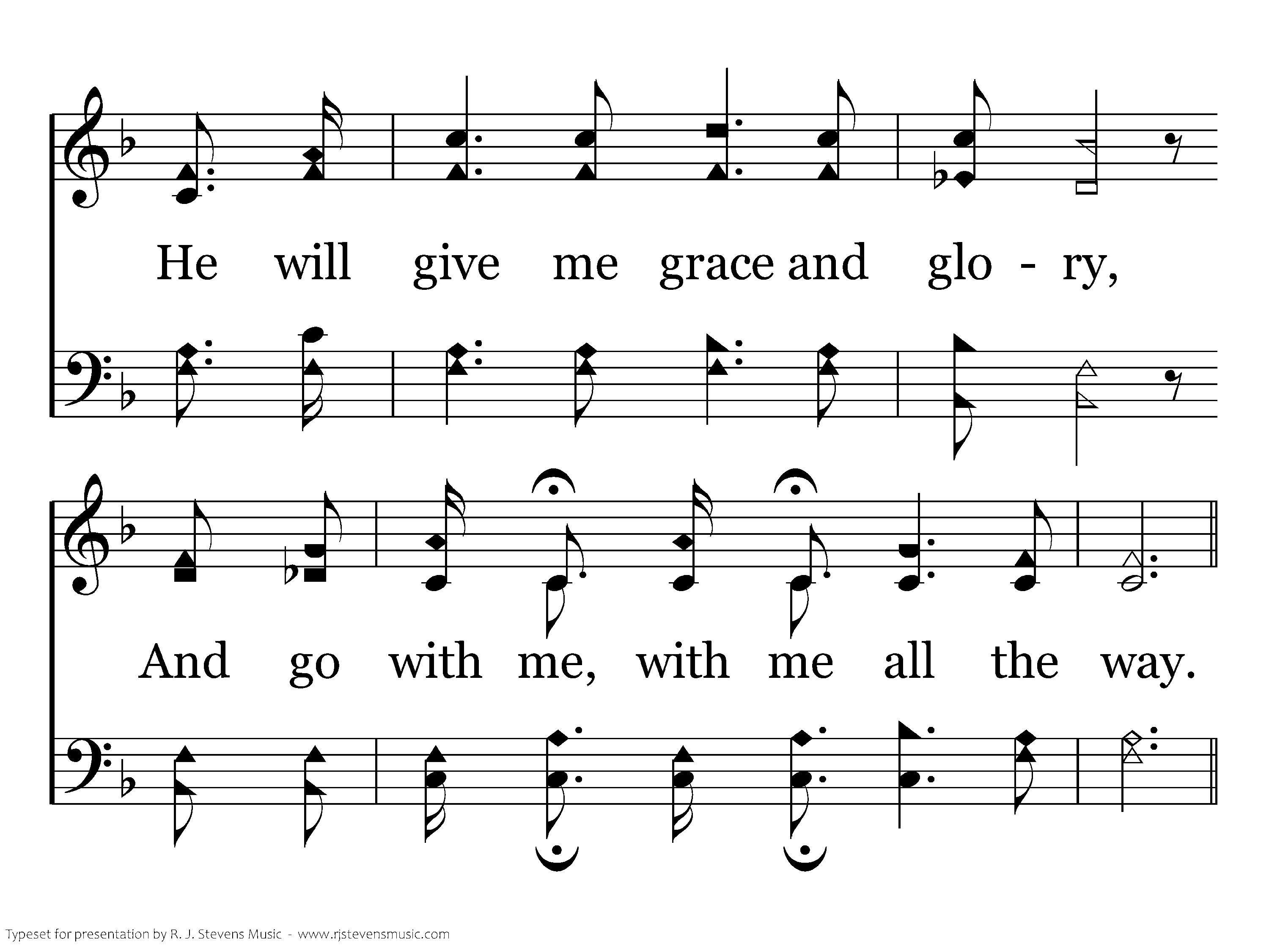 He will give me grace and glory, He will give me grace and glory, he will give me grace and glory, and go with me, with me, all the way.