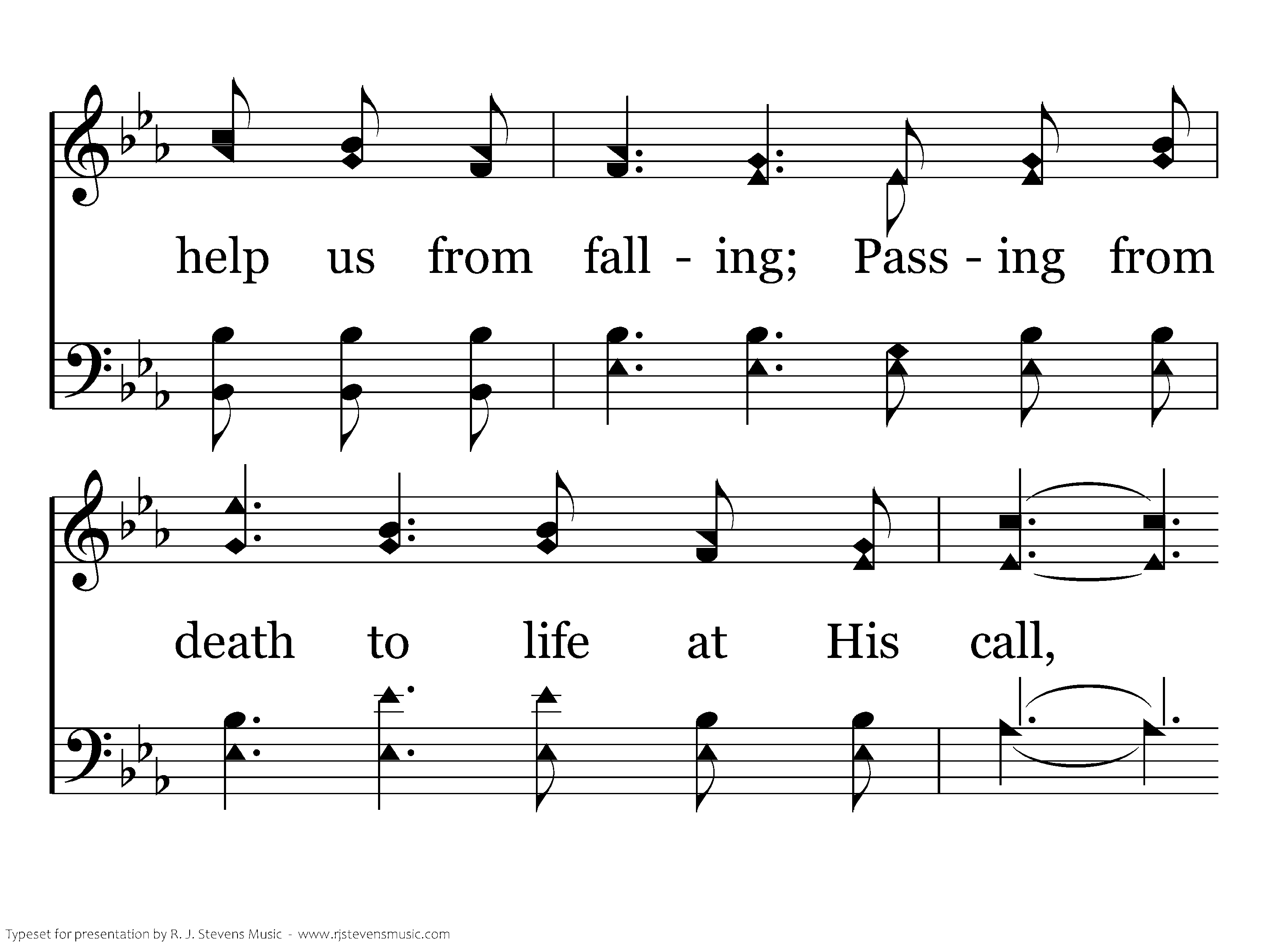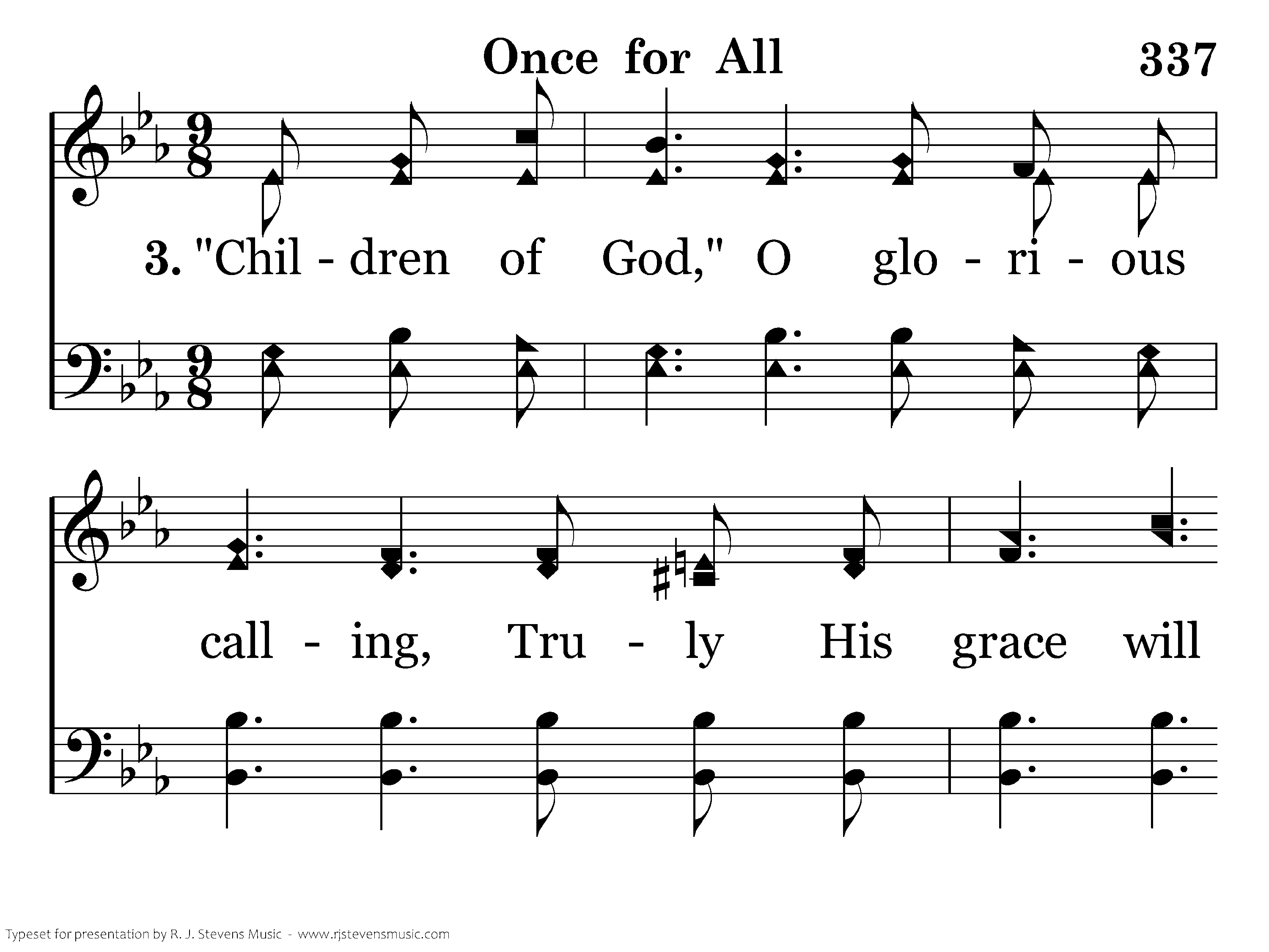 Children of God O glorious calling, Truly His grace will help us from falling; Passing from death to life at His call, Blessed salvation once for all.