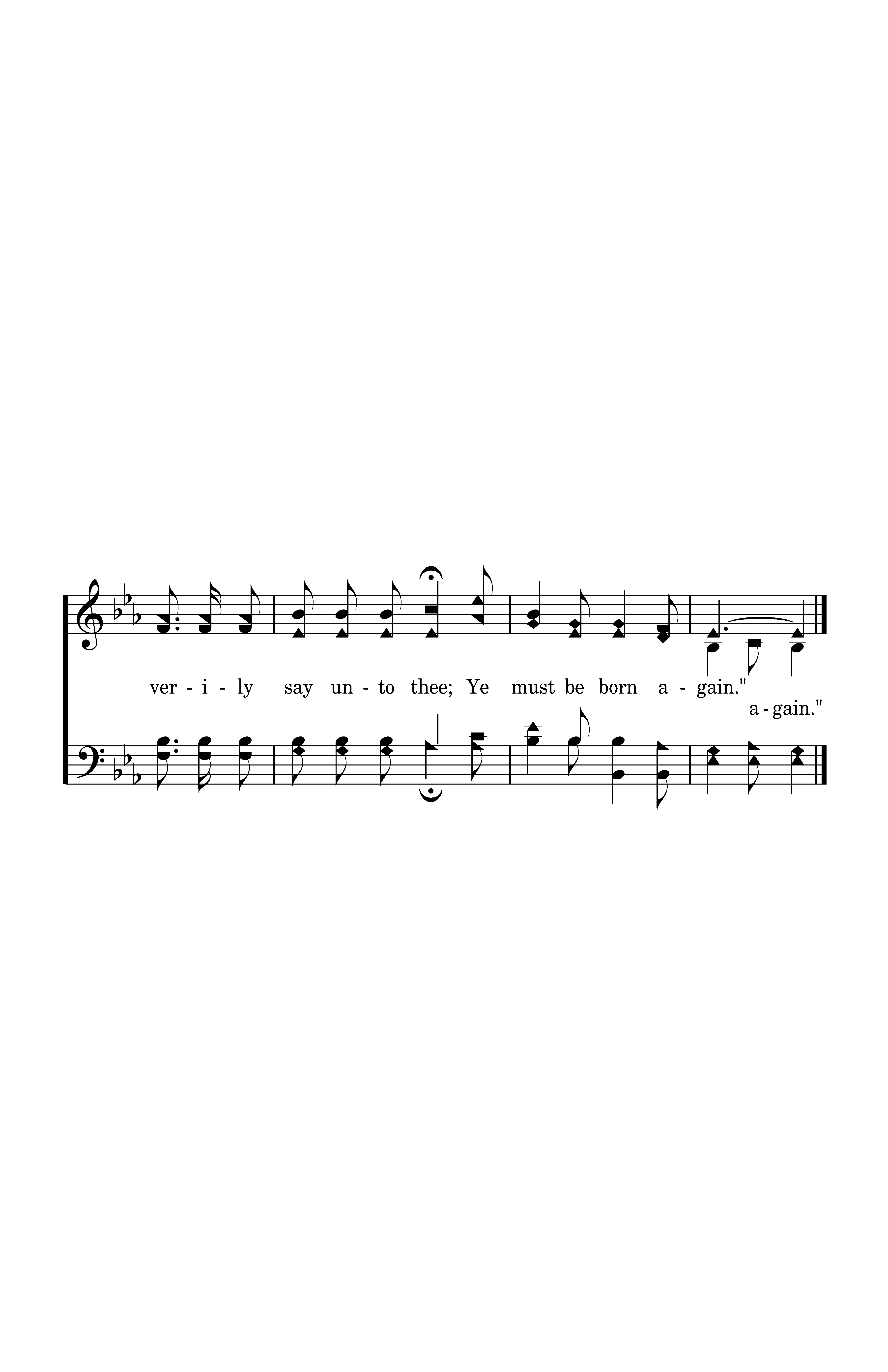 Ye must be born again, Ye must be born again, I verily, verily say unto thee, Ye must be born again.
