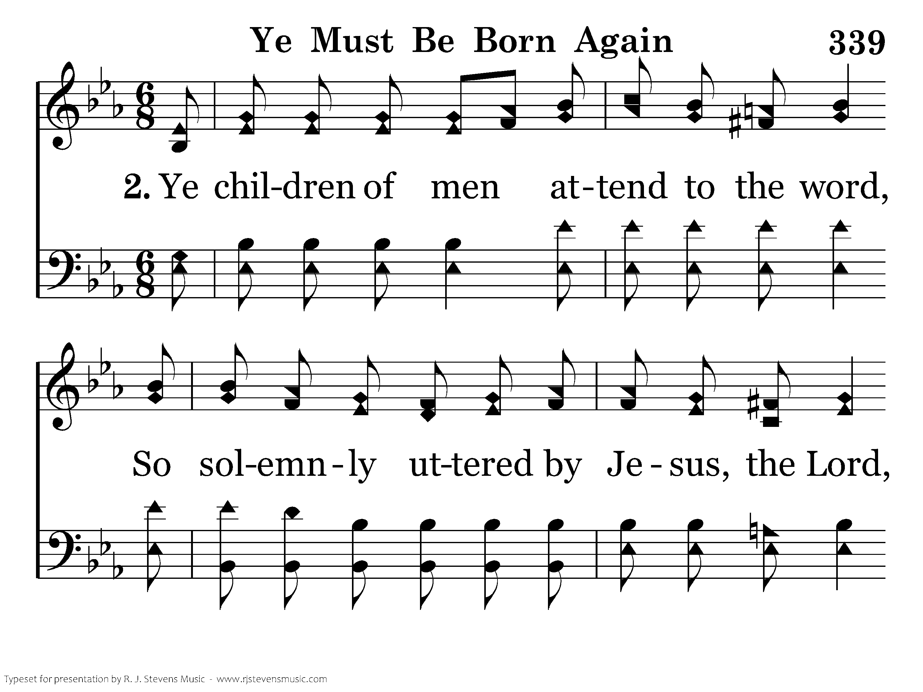 Ye children of men attend to the word, So solemnly uttered by Jesus the Lord, And let not this message to you be in vain, Ye must be born again.