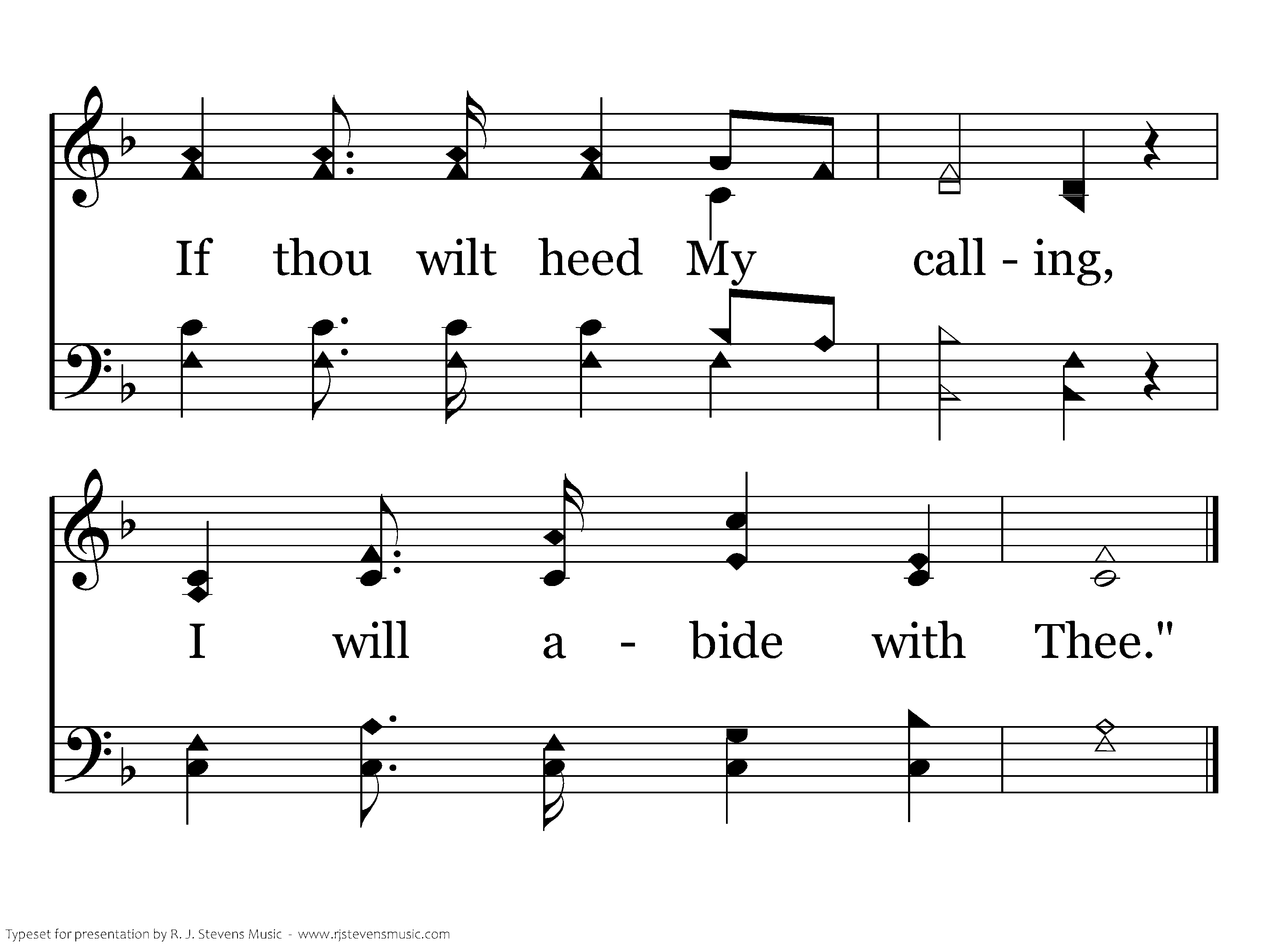 Sweetly the tones are falling; Open the door for Me! If thou wilt heed My calling, I will abide with Thee.