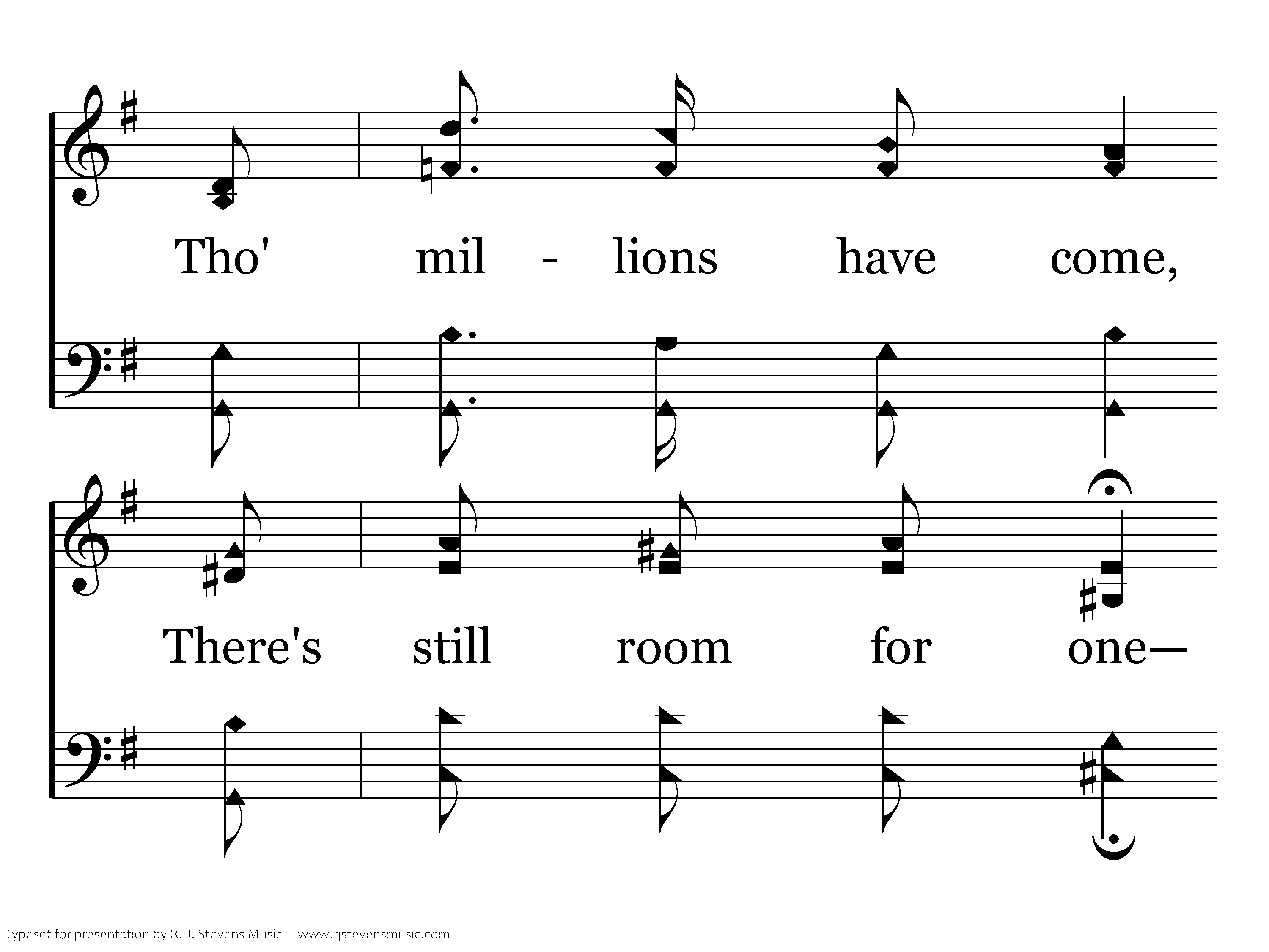 There's room at the cross for you, There's room at the cross for you; Tho' millions have come, There's still room for one yes, There's room at the cross for you.