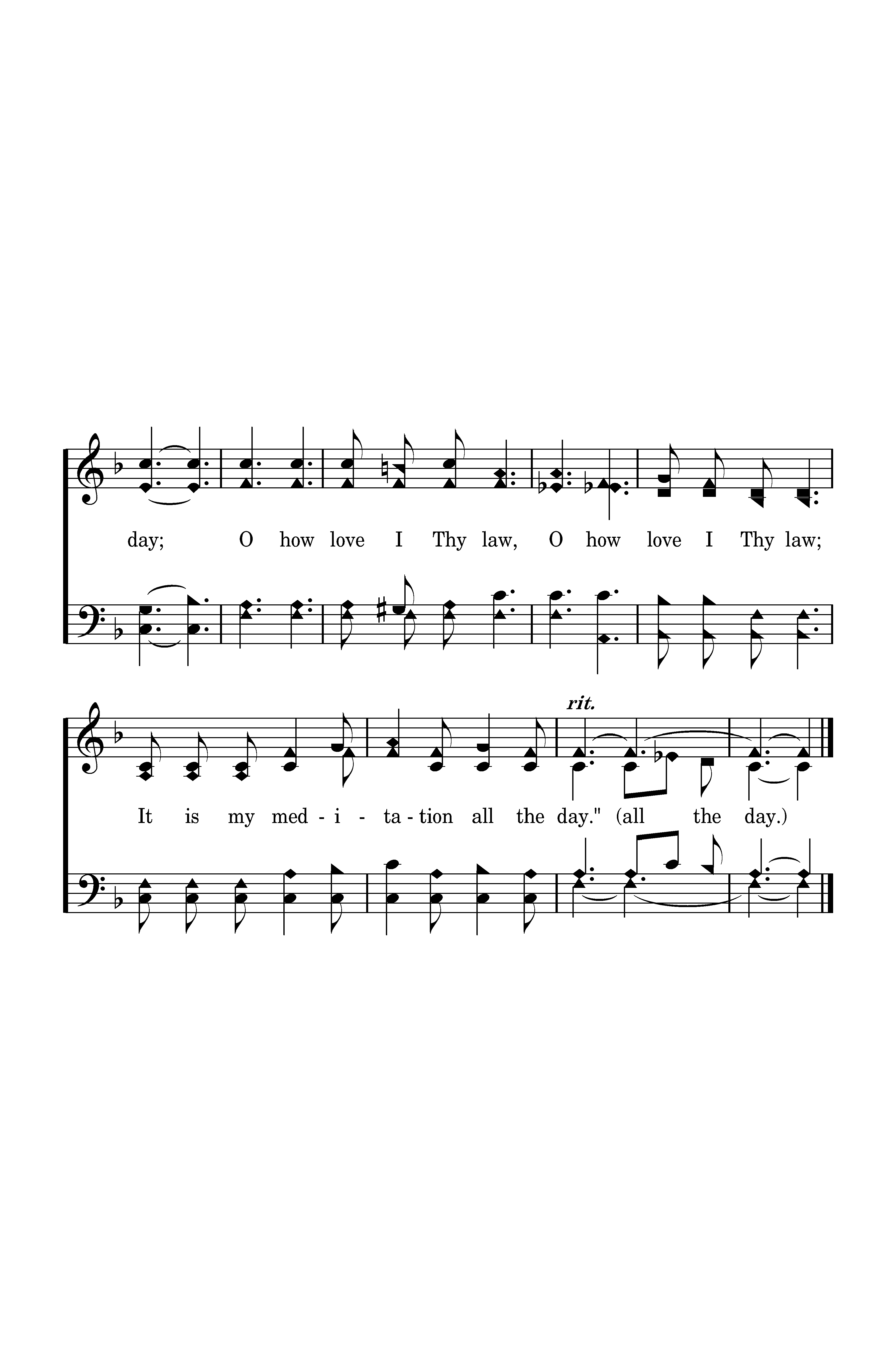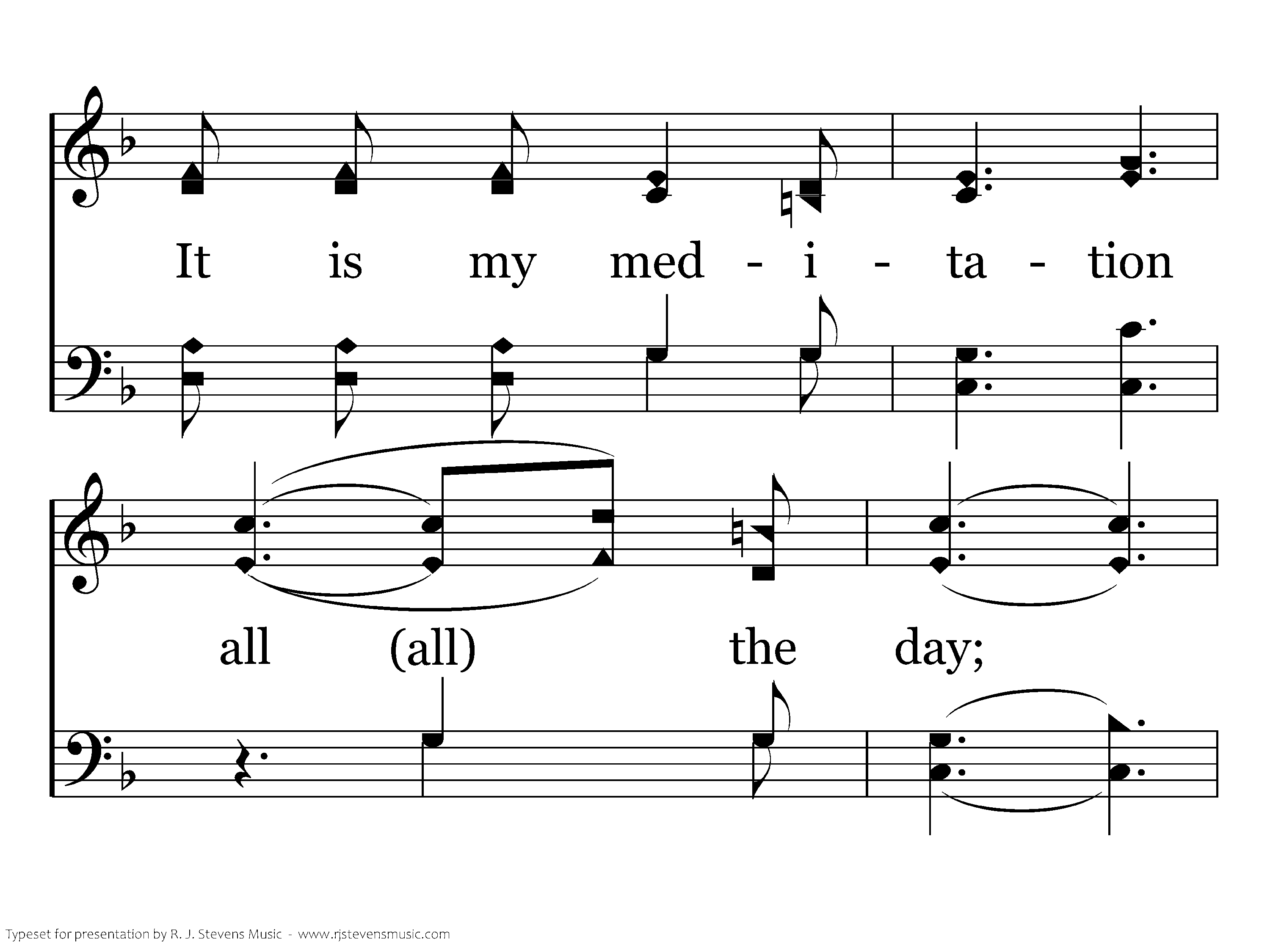 O how love I Thy law, O how love I thy law, It is my meditation all the day; O how love I Thy law, O how love I Thy law; It is my meditation all the day. (all the day.)