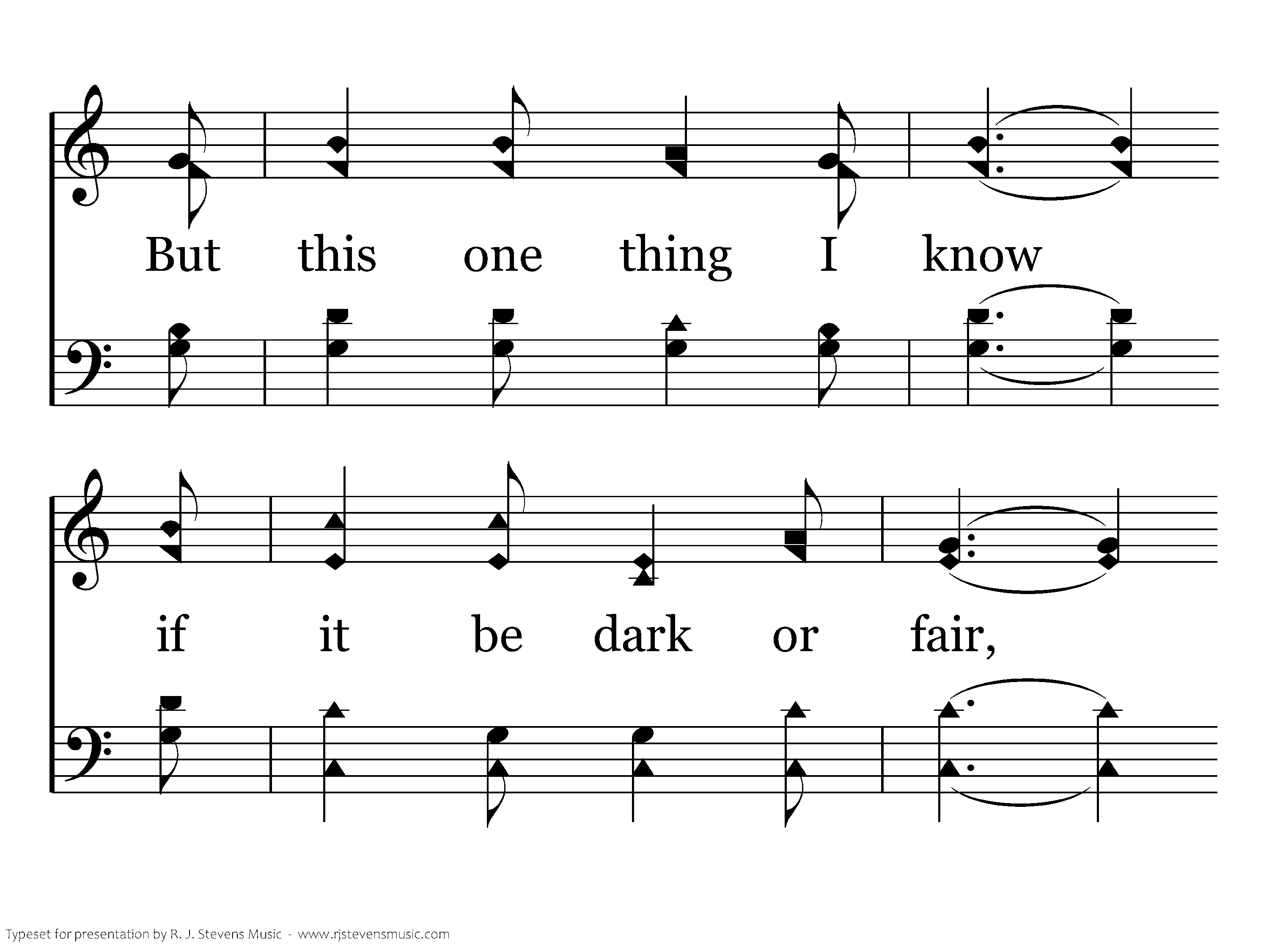 It may be in the valley, where countless dangers hide; It may be in the sunshine that I, in peace, abide; But this one thing I know if it be dark or fair, If Jesus is with me, I'll go anywhere!