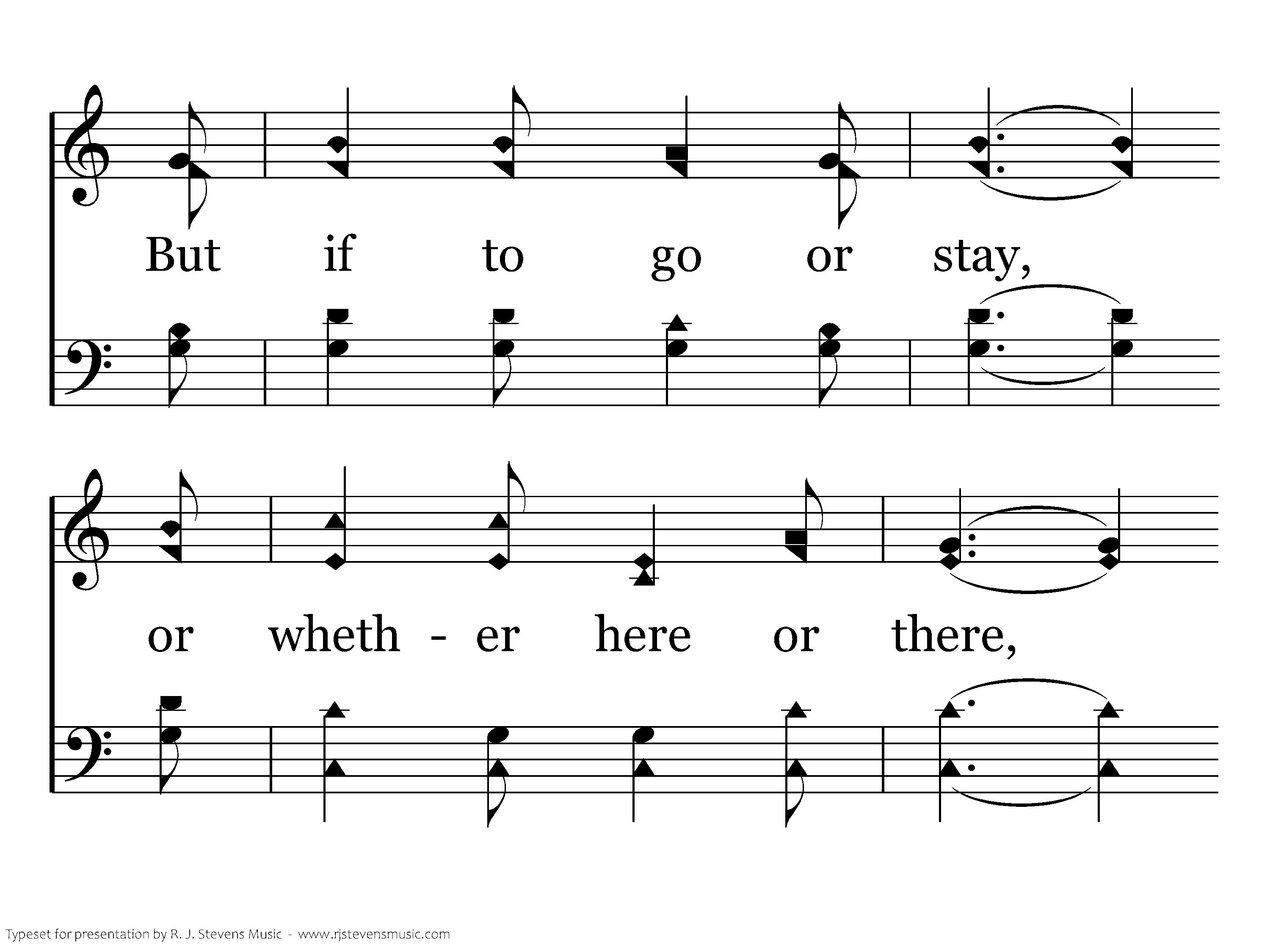 It is not mine to question the judgments of the Lord, It is but mine to follow the leadings of His word; But if to go or stay, or whether here or there, I'll be, with my Savior, content anywhere!
