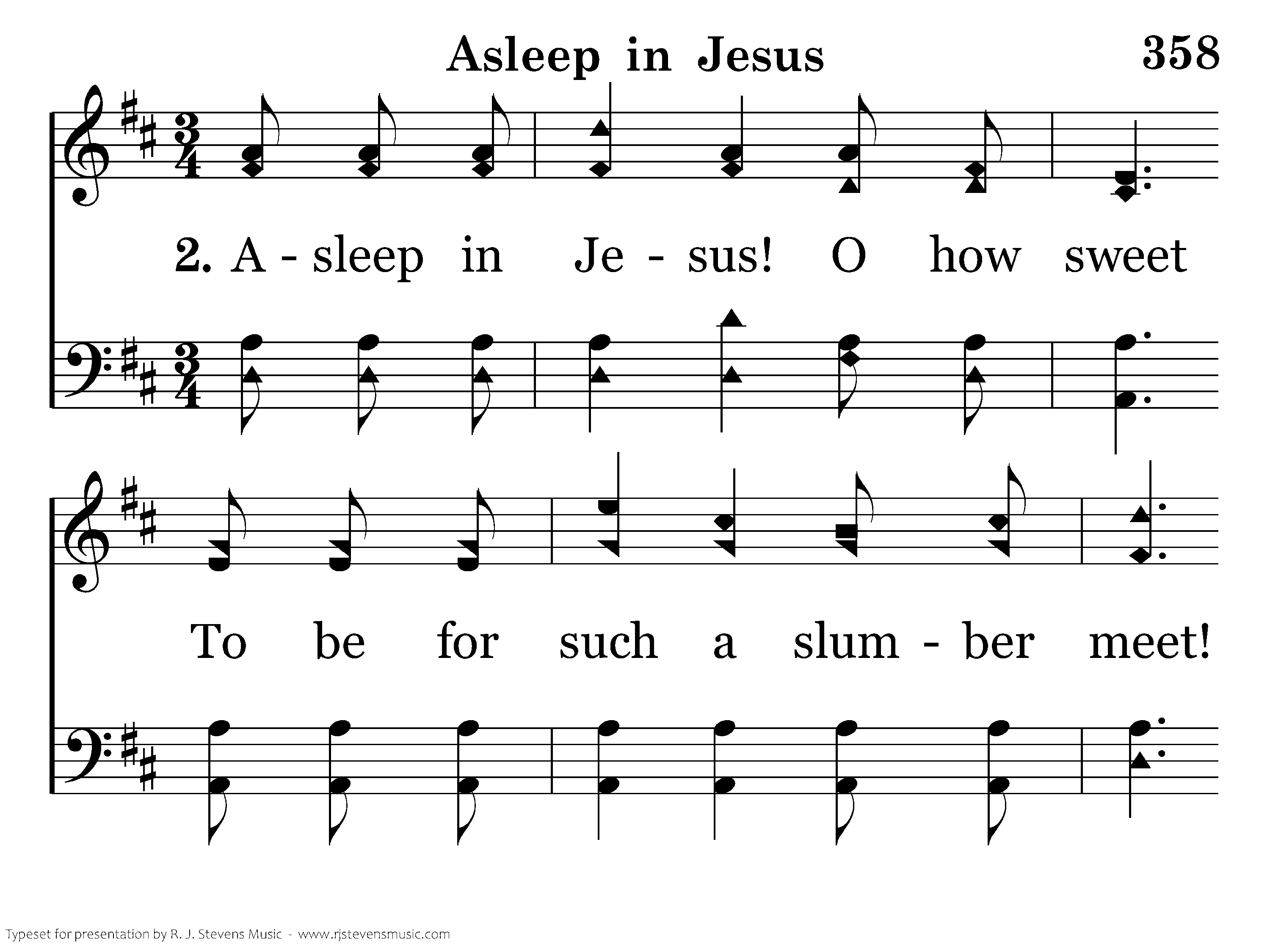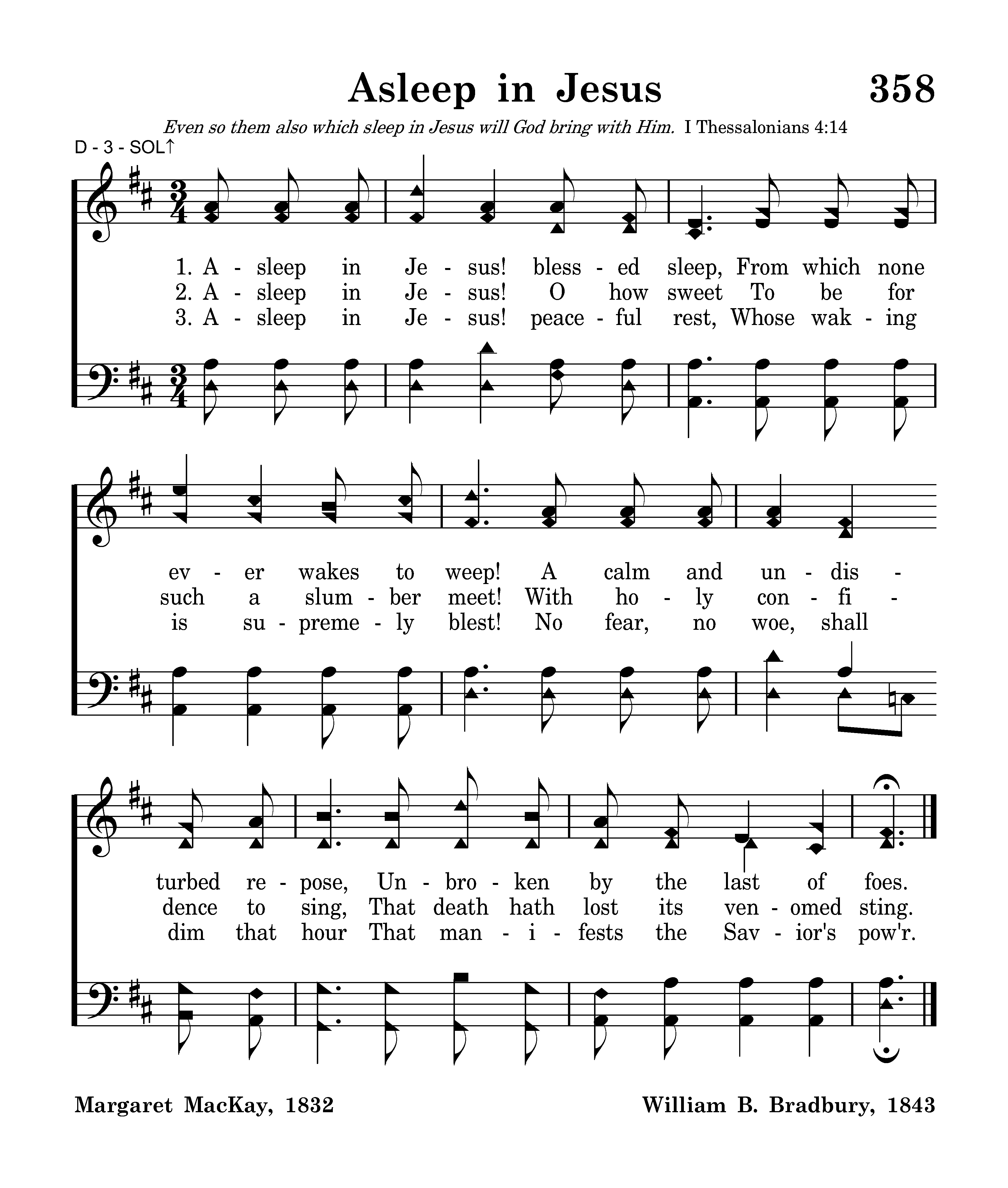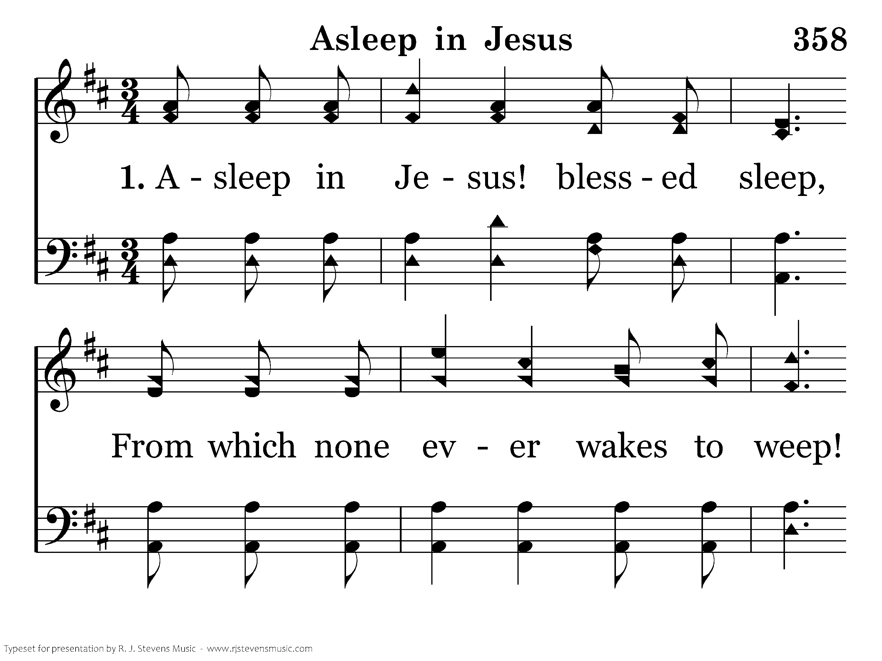 Asleep in Jesus! peaceful rest, Whose waking is supremely blest! No fear, no woe, shall dim that hour That manifests the Savior's pow'r.