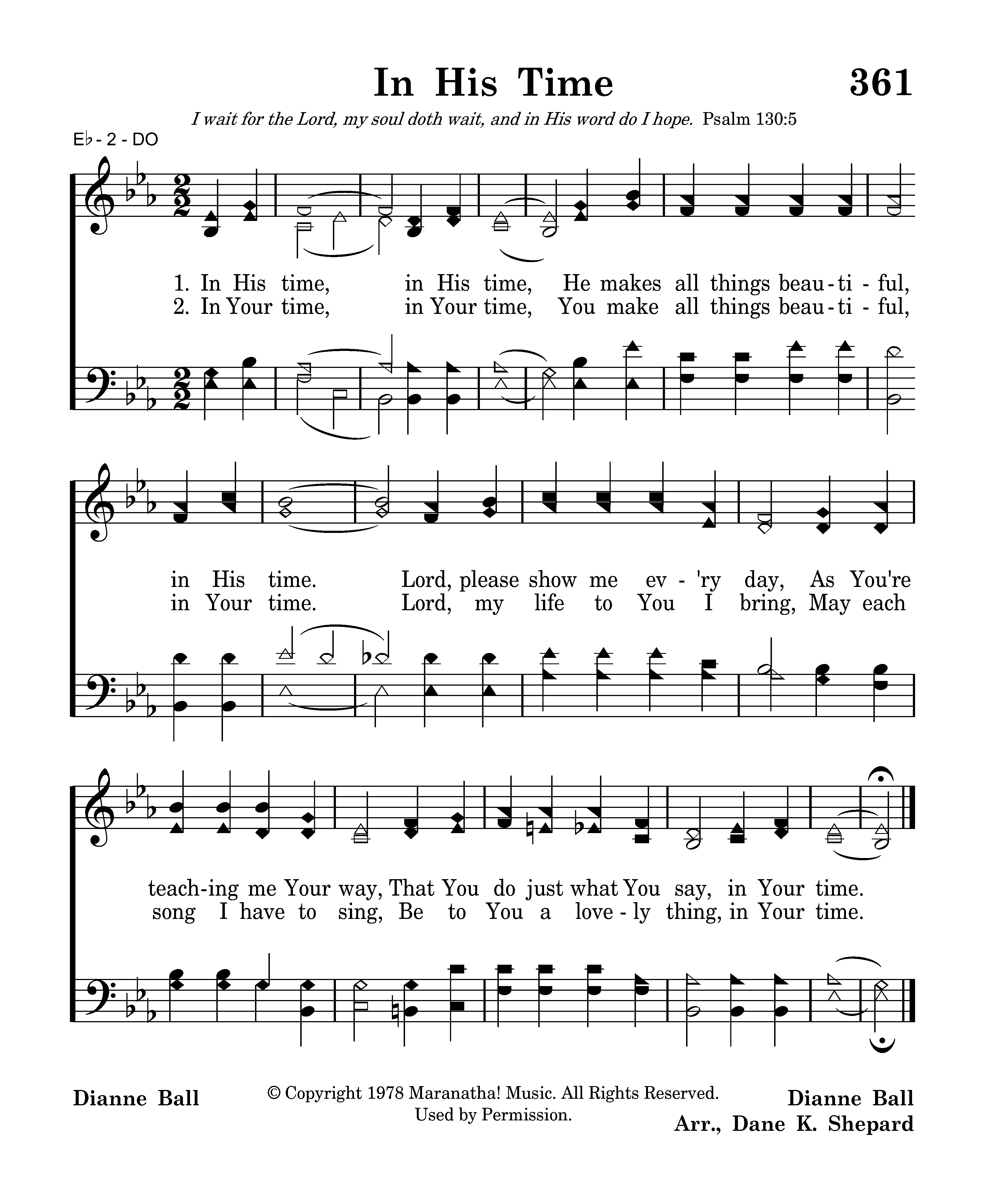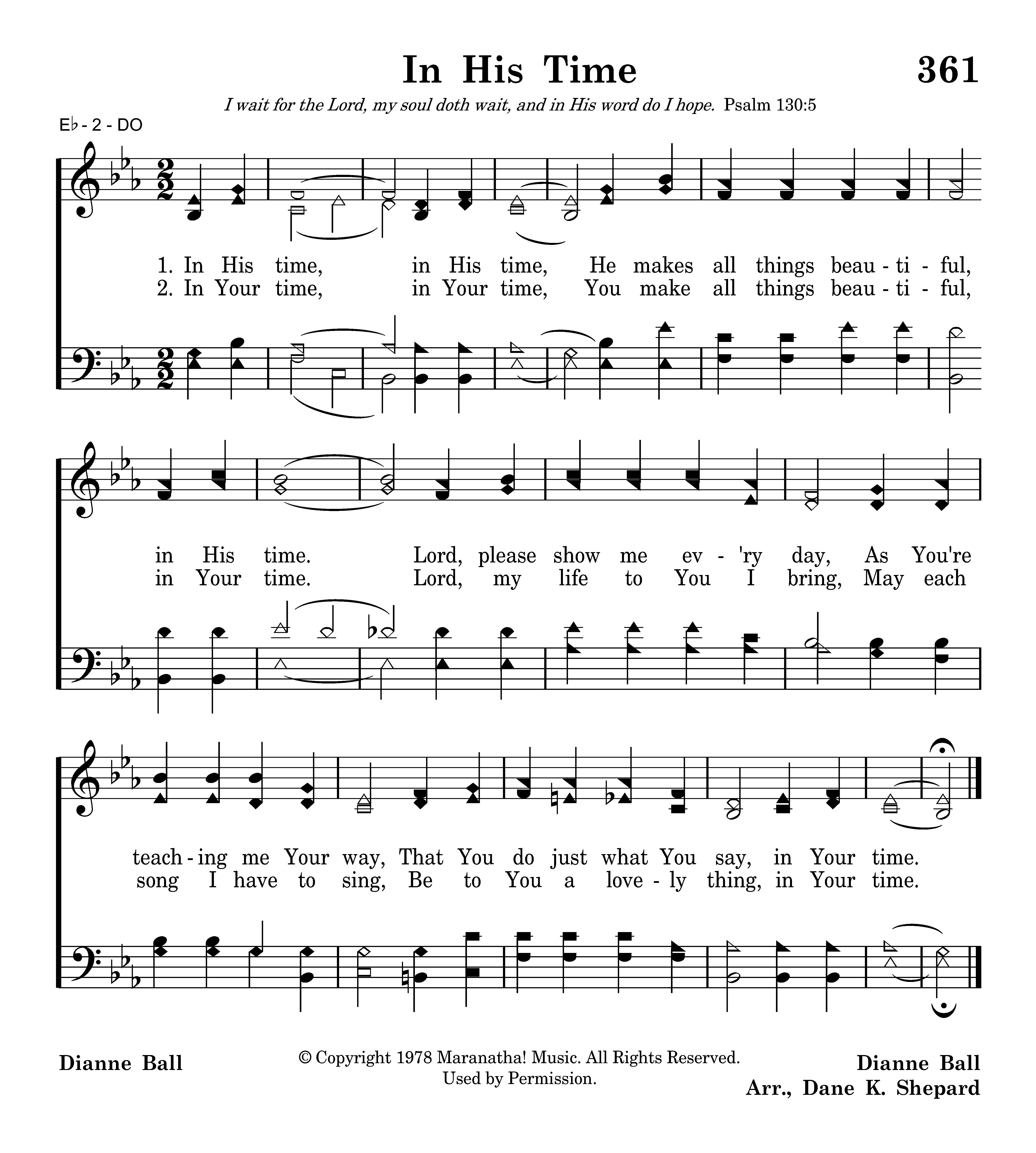 In Your time, in Your time, You make all things beautiful, in Your time. Lord, my life to You I bring, May each song I have to sing, Be to You a lovely thing, in Your time.