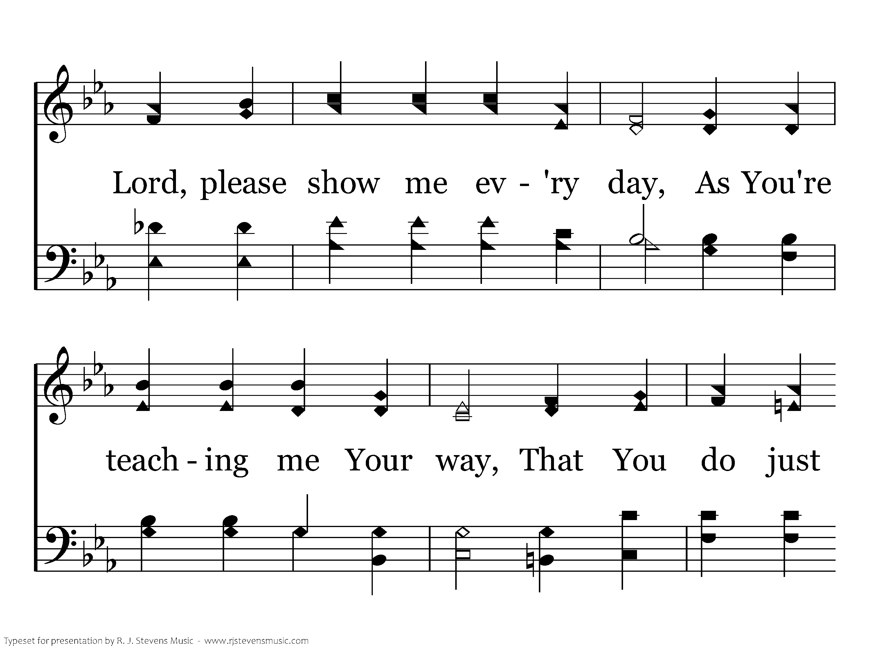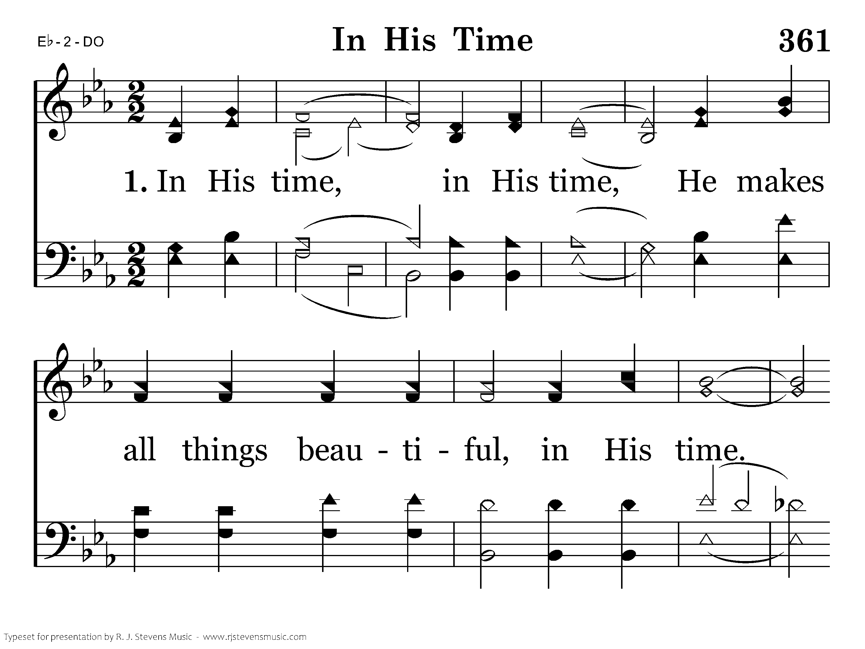In His time, in His time, He makes all things beautiful, in His time. Lord, please show me ev'ry day, As You're teaching me Your way, That You do just what You say, in Your time.