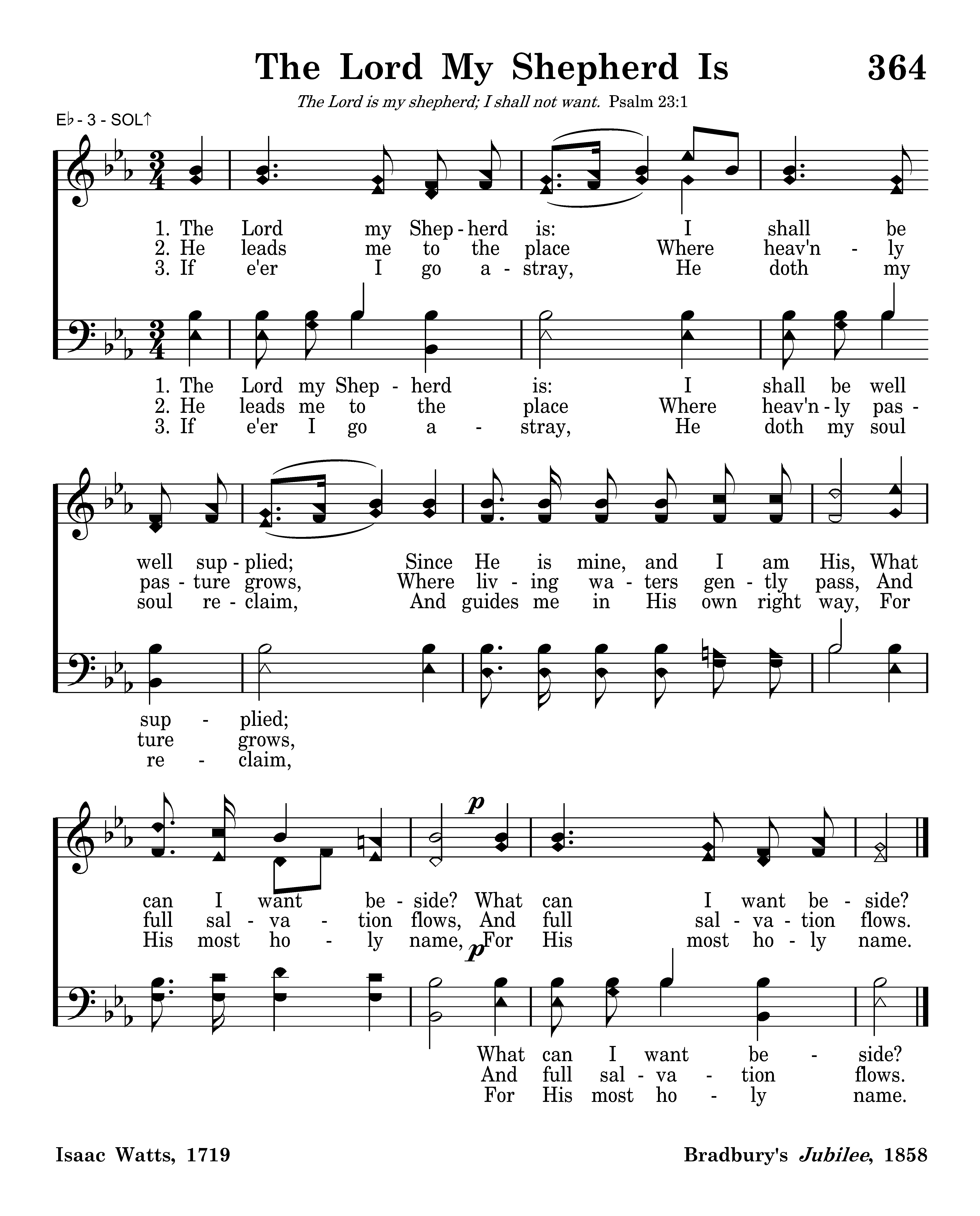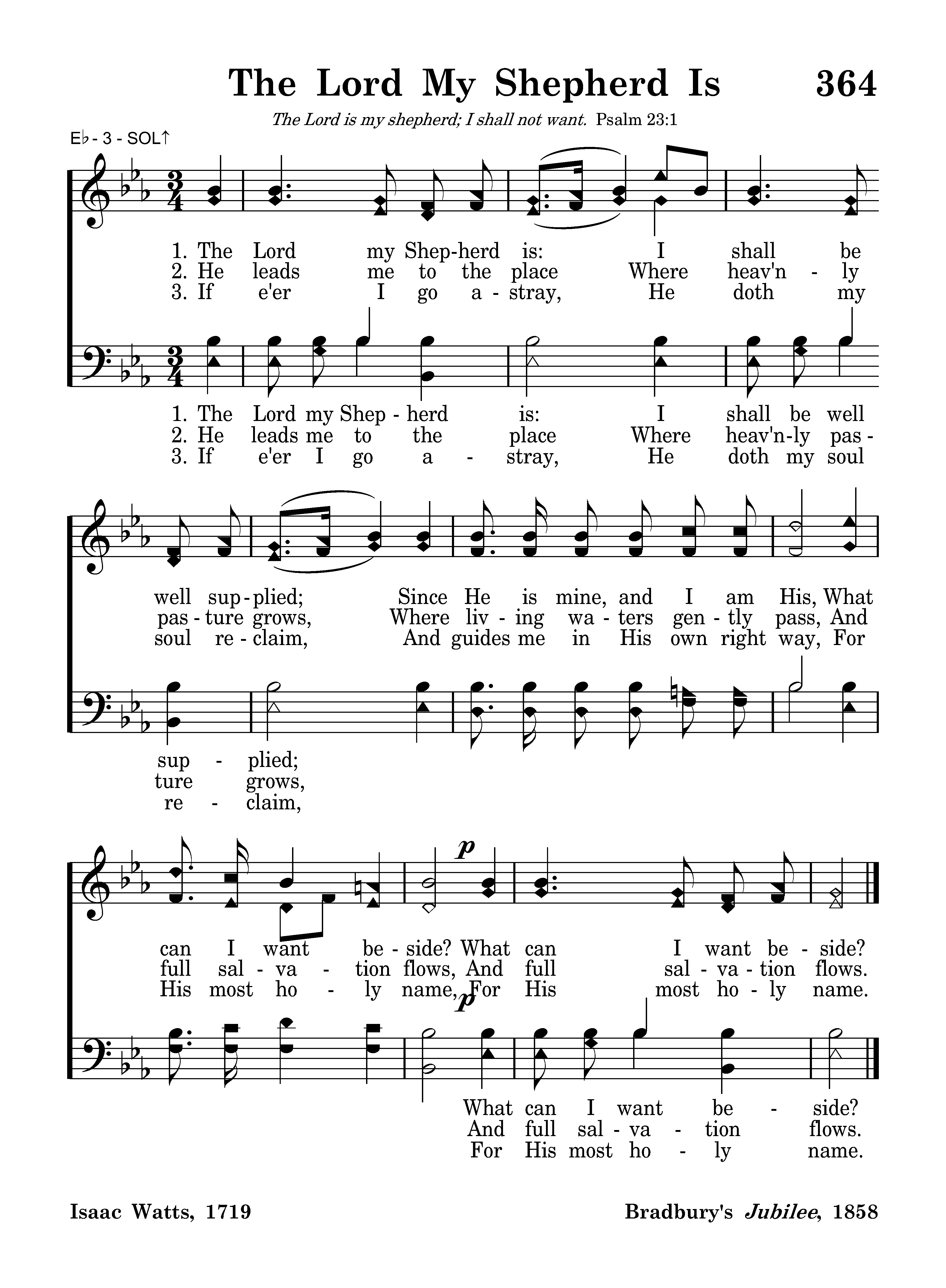 The Lord my Shepherd is: I shall be well supplied; Since He is mine, and I am His, What can I want beside? What can I want beside?