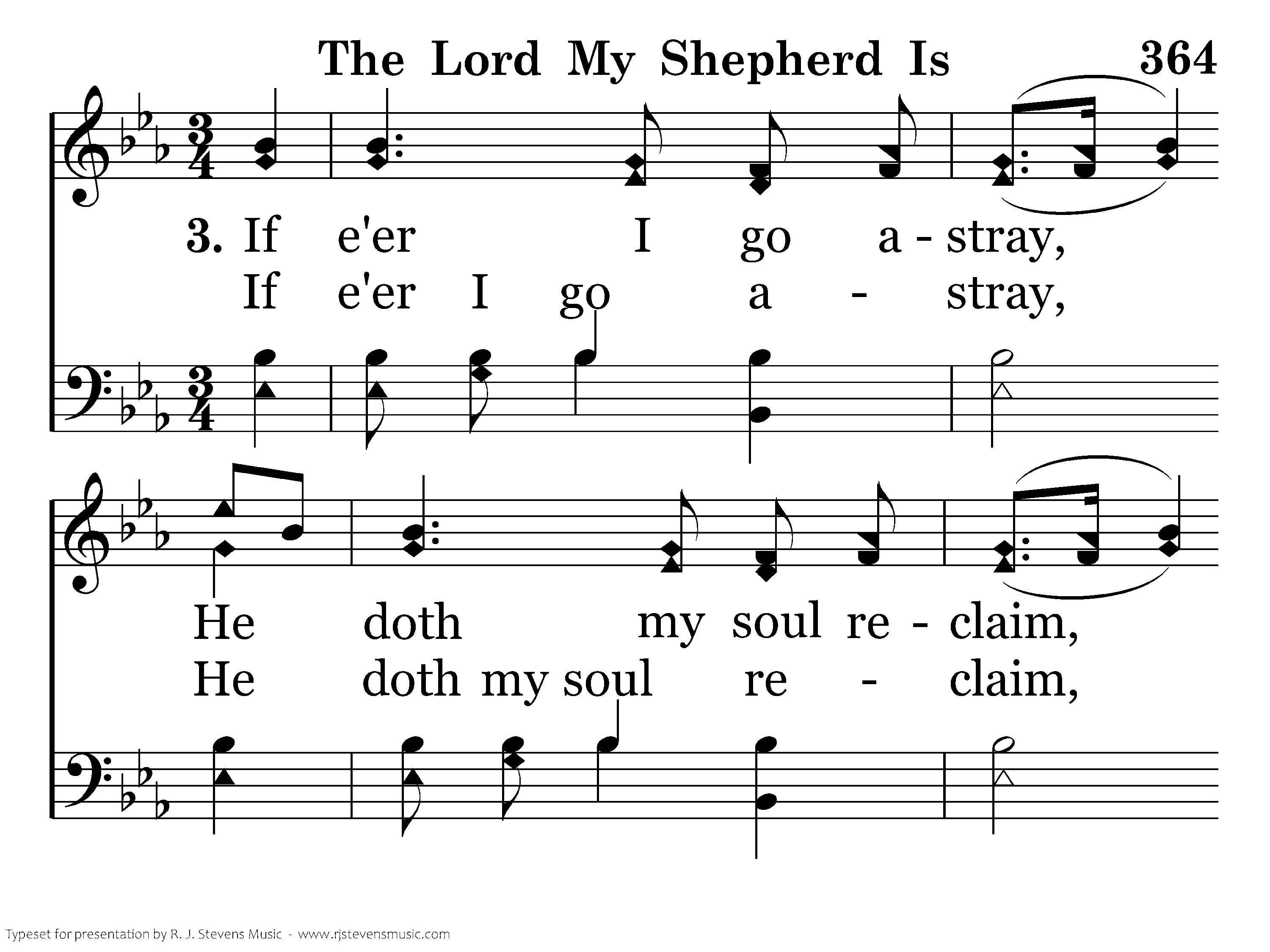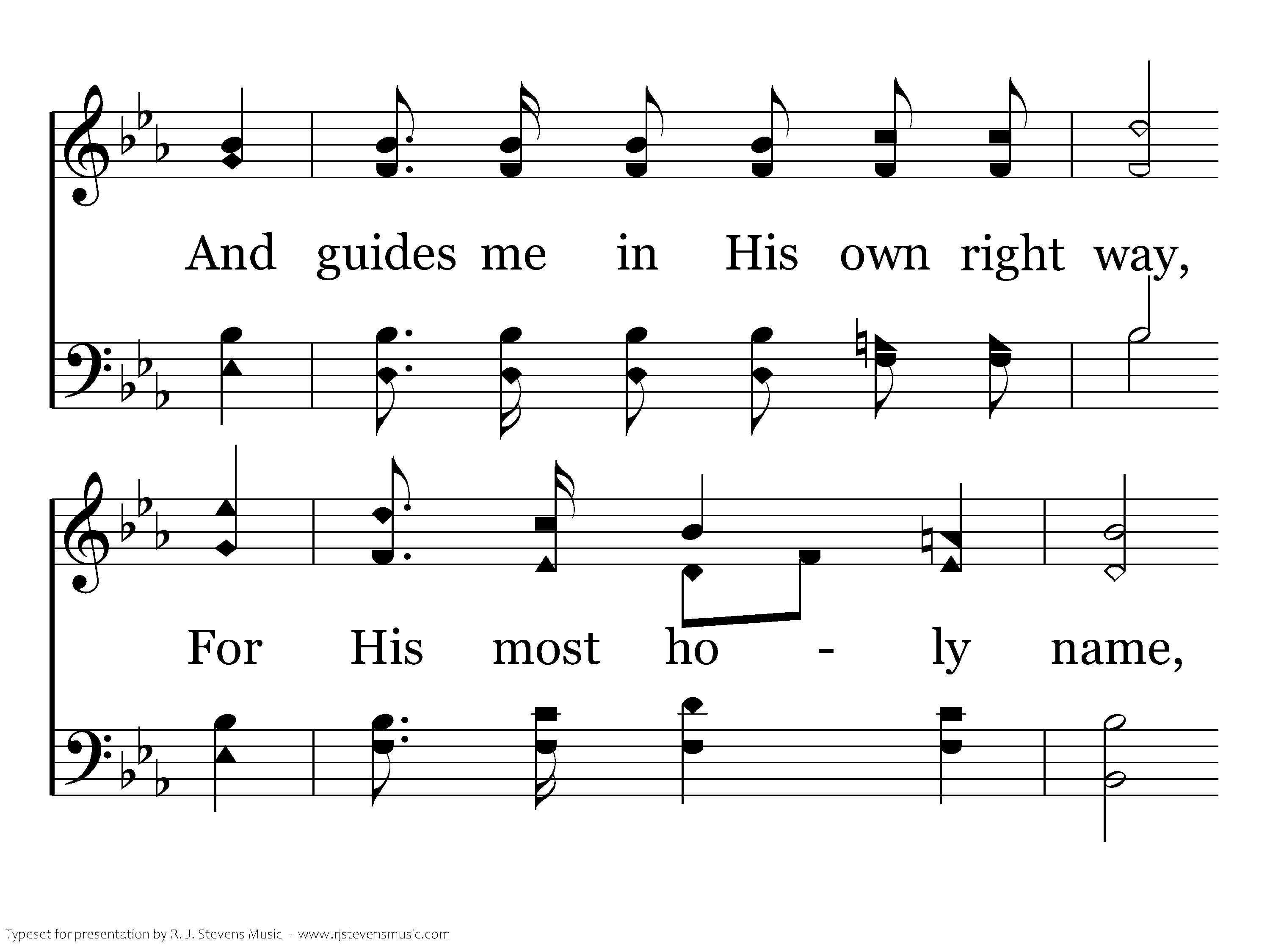 If e'er I go astray, He doth my soul reclaim, And guides me in His own right way, For His most holy name, For His most holy name.