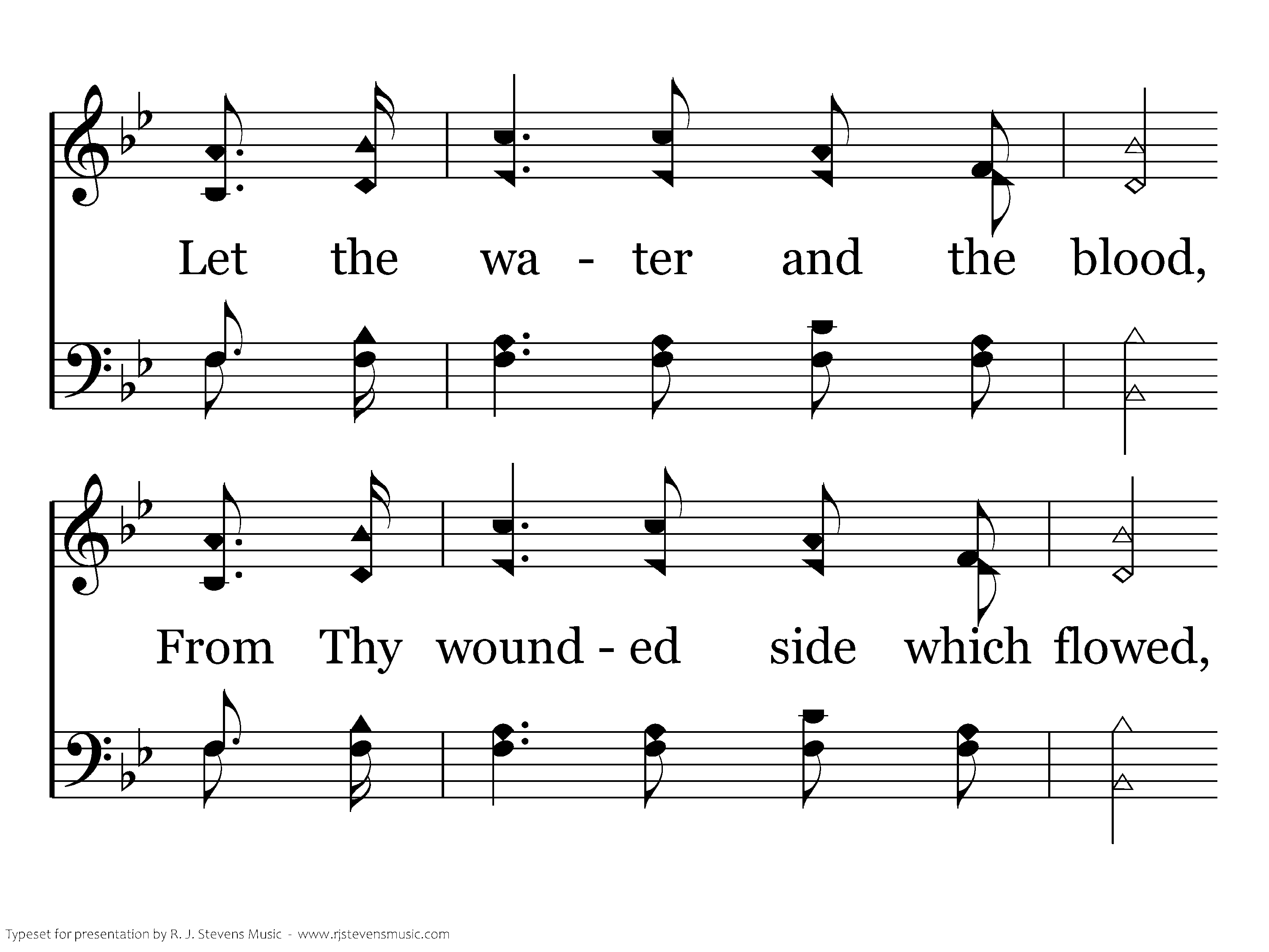 Rock of Ages, cleft for me, Let me hide myself in Thee; Let the water and the blood, From Thy wounded side which flowed, Be of sin the double cure, Save from wrath and make me pure.