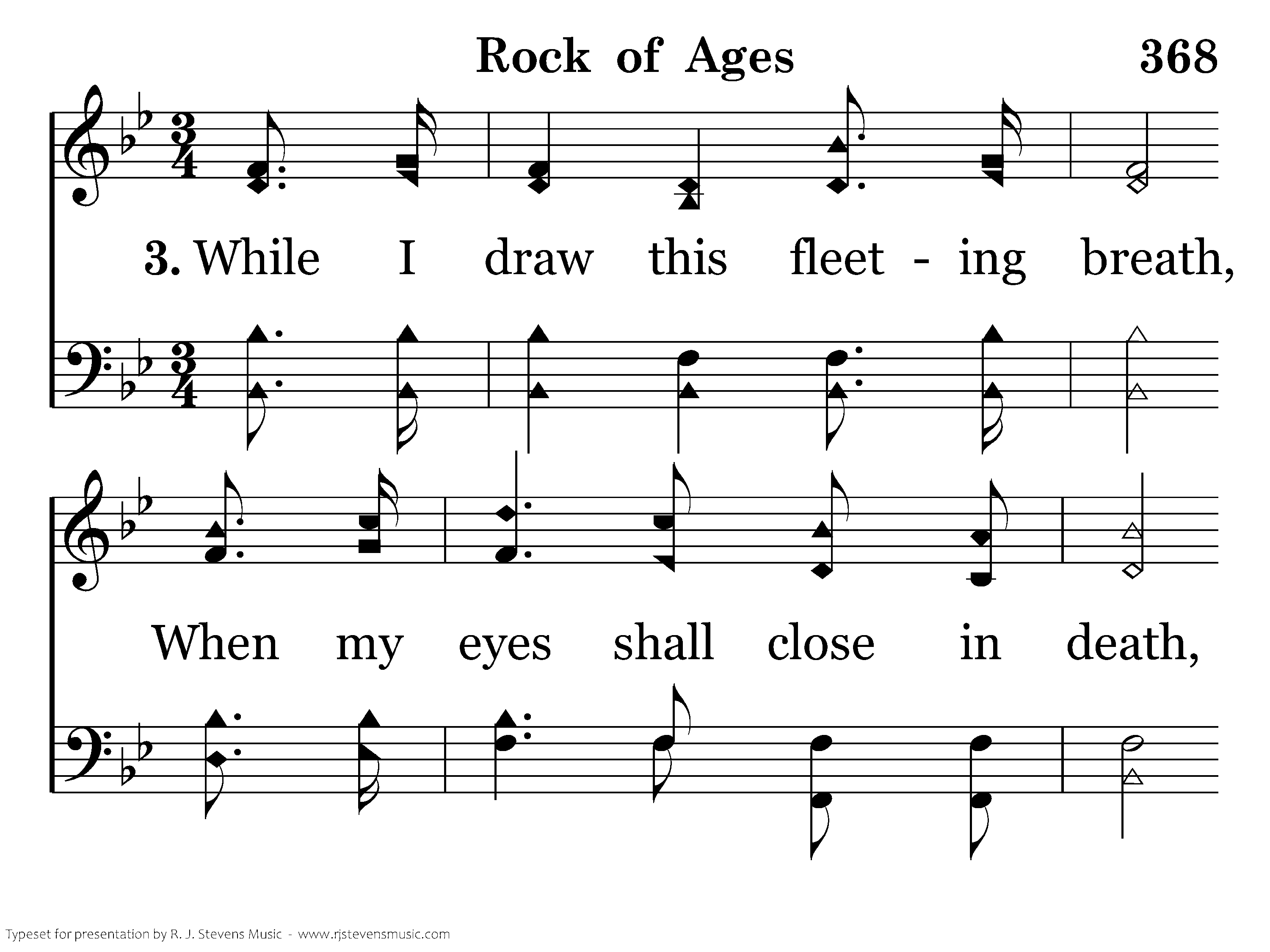 While I draw this fleeting breath, When my eyes shall close in death, When I rise to worlds unknown, And behold Thee on Thy throne, Rock of Ages, cleft for me, Let me hide myself in Thee.