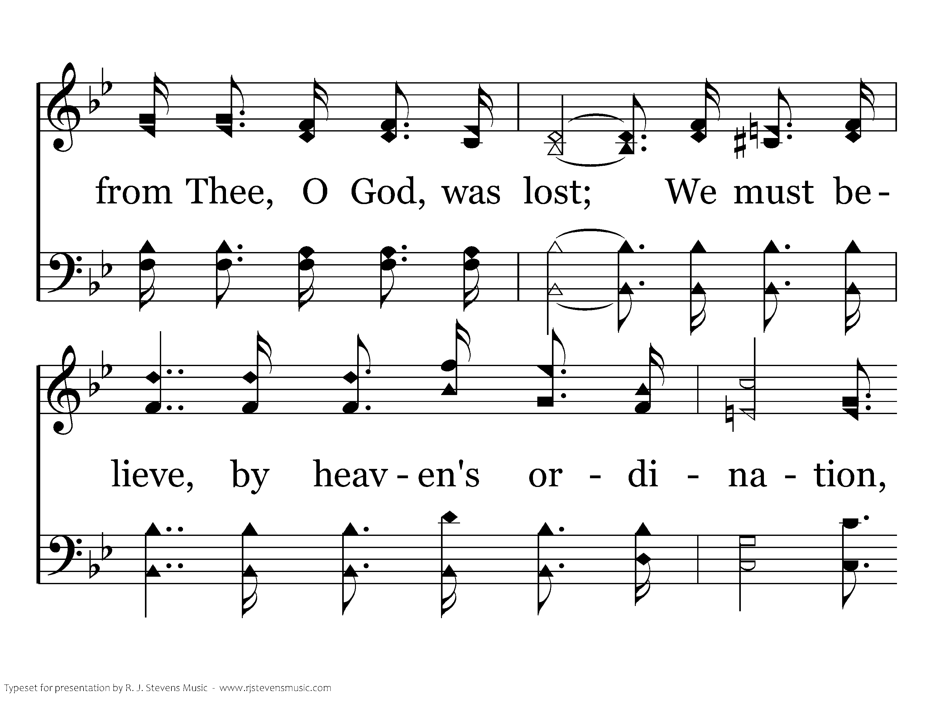 When we perceive the state of alienation In which the soul, from Thee, O God, was lost; We must believe, by heaven's ordination, Our Lord redeemed and paid the bitter cost.