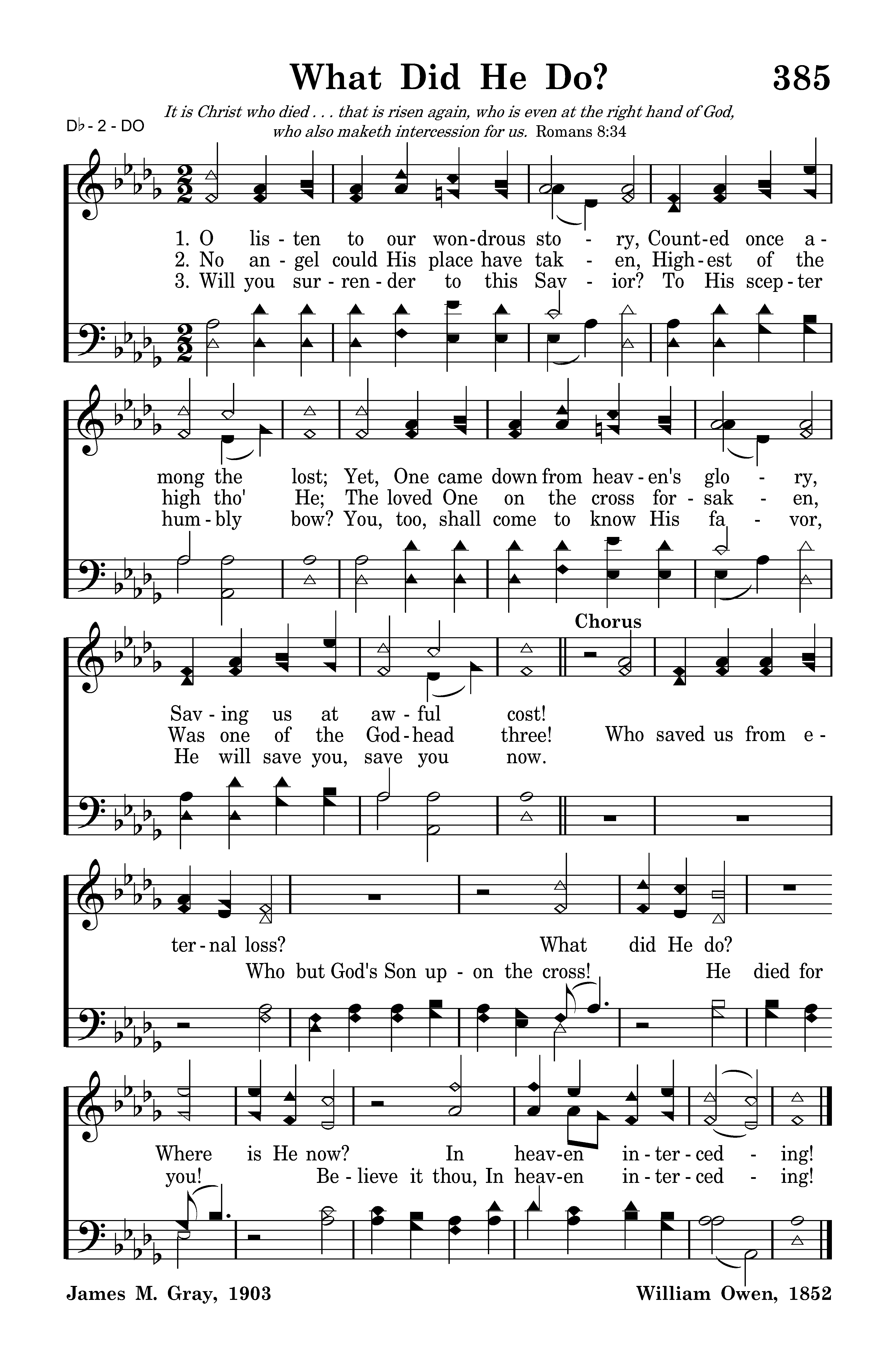 Who saved us from eernal loss? Who but God's Son upon the cross! What did He do? (He died for you!) Where is He now? (Believe it thou), In heaven interceding!