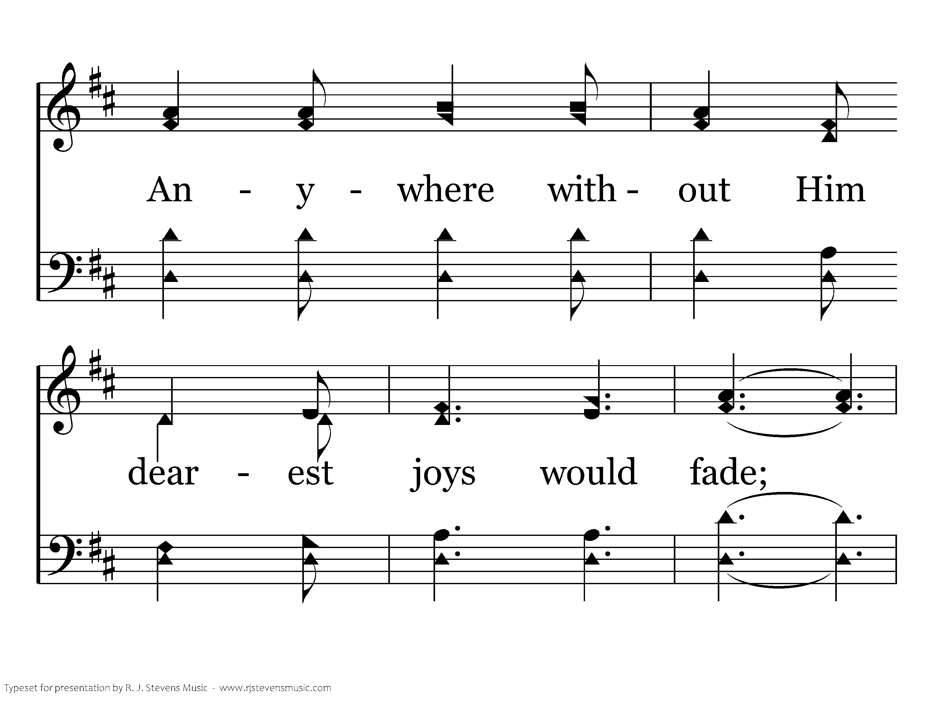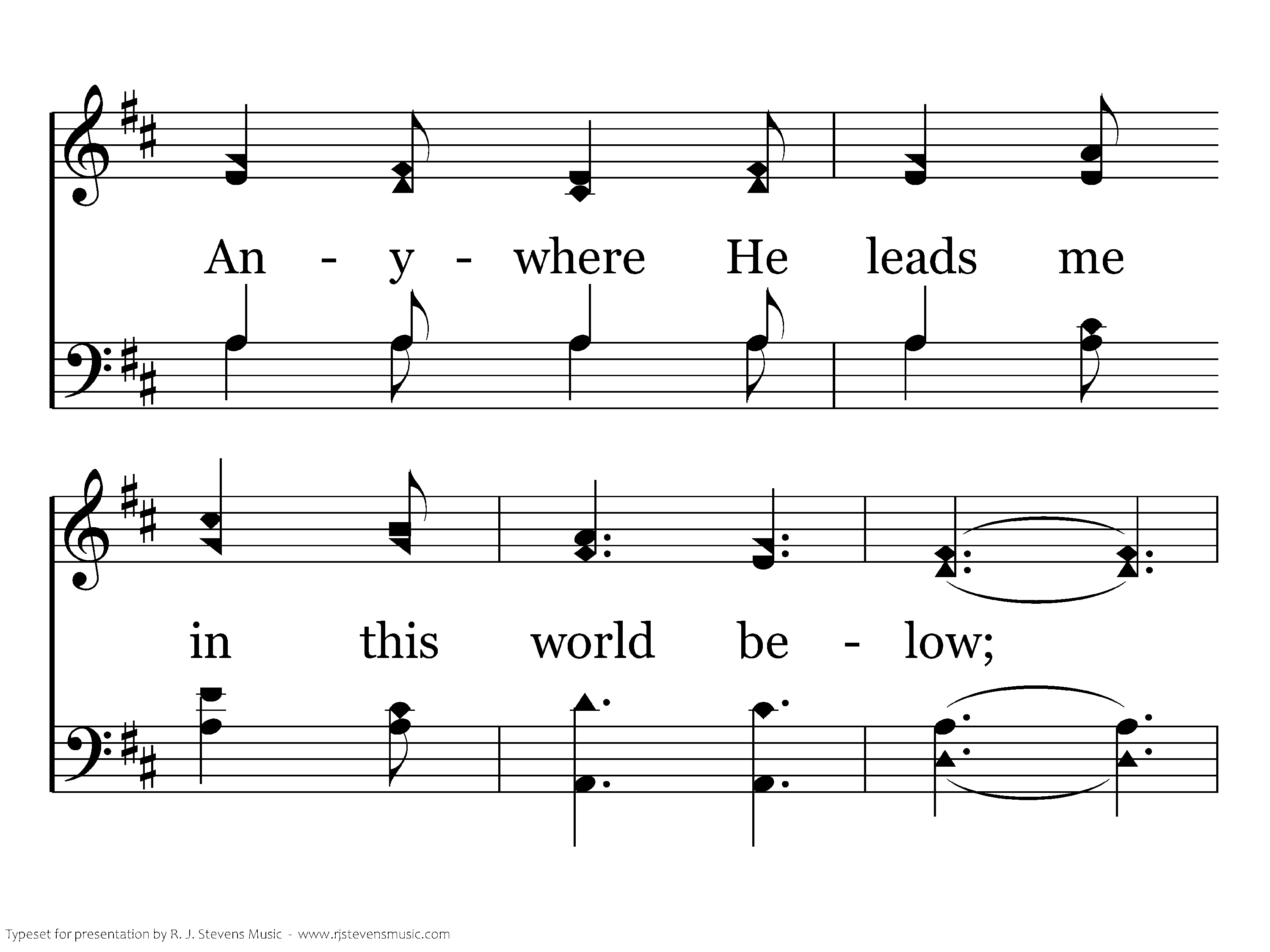 Anywhere with Jesus I can safely go, Anywhere He leads me in this world below; Anywhere without Him dearest joys would fade; Anywhere with Jesus I am not afraid.