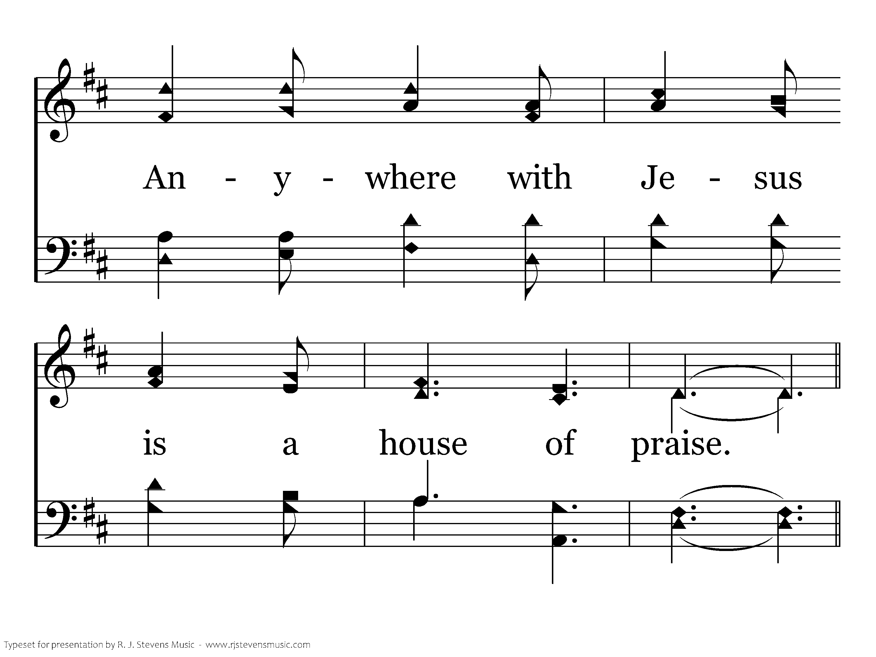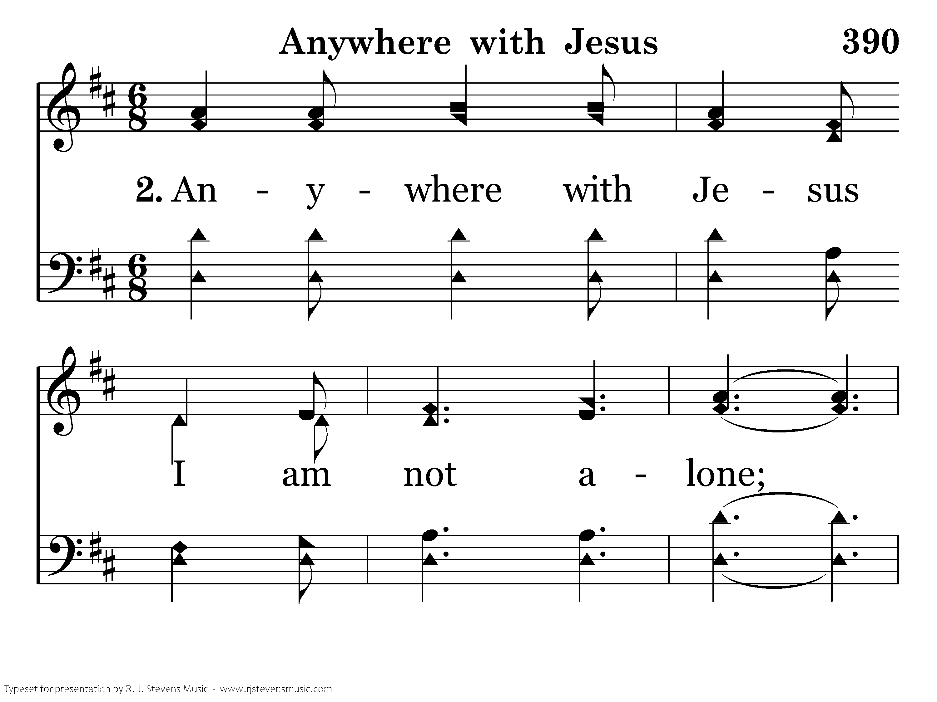 Anywhere with Jesus I am not alone; Other friends may fail me, He is still my own; Tho' His hand may lead me over drearest ways, Anywhere with Jesus is a house of praise.