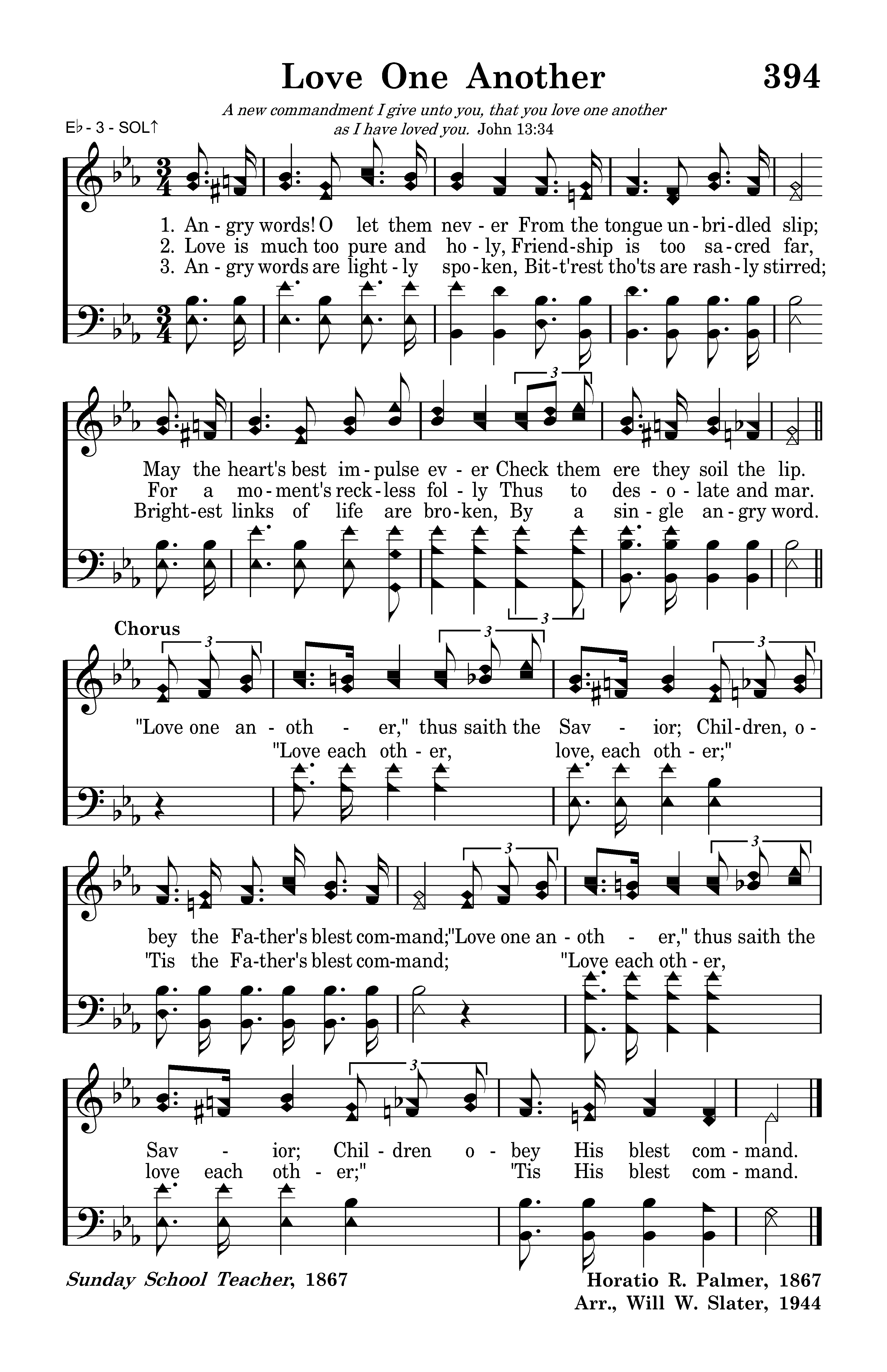 Angry words are lightly spoken, Bitt'rest tho'ts are rashly stirred; Brightest links of life are broken, By a single angry word.