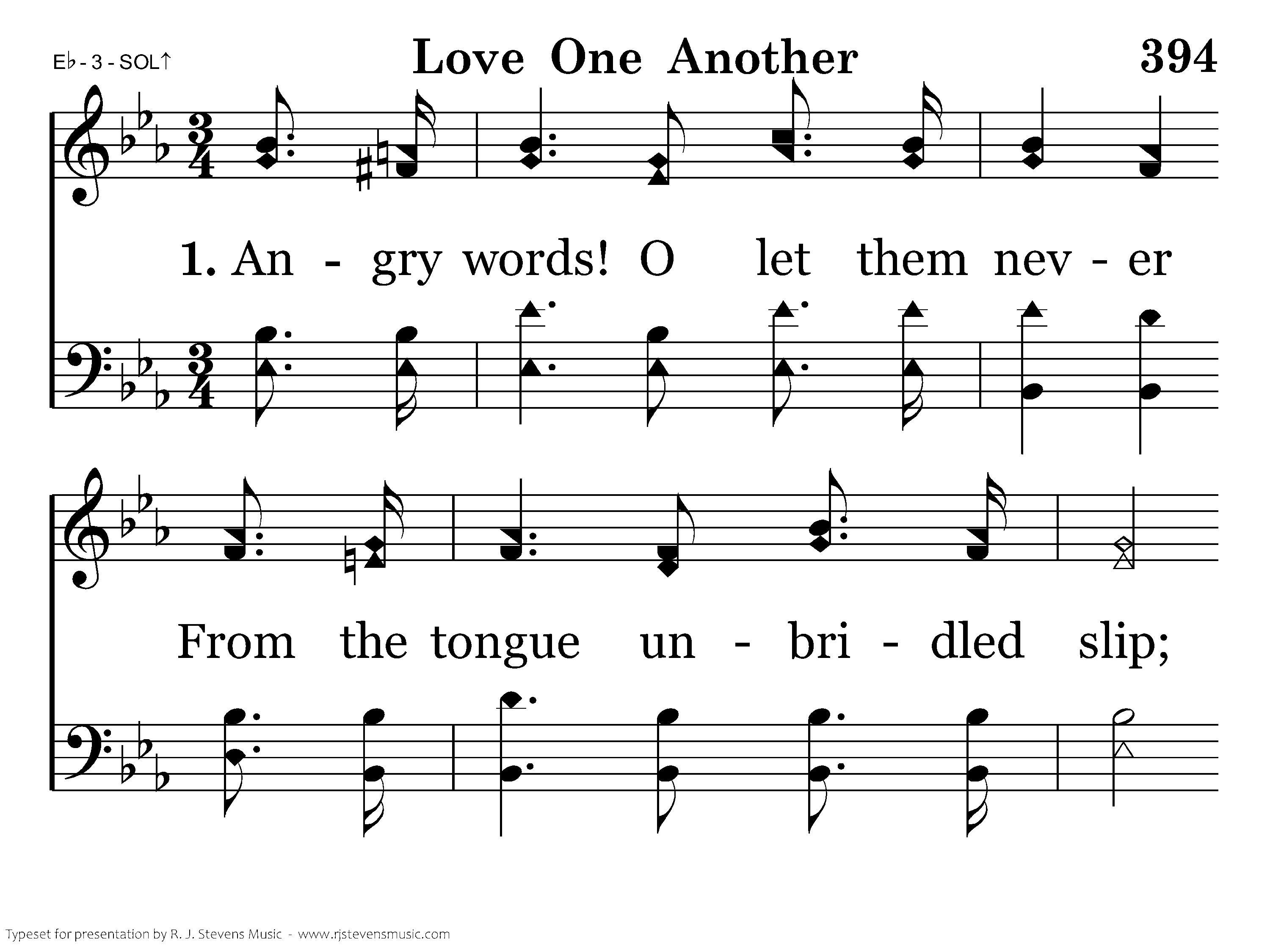 Angry words! O let them never From the tongue unbridled slip; May the heart's best impulse ever Check them ere they soil the lip.