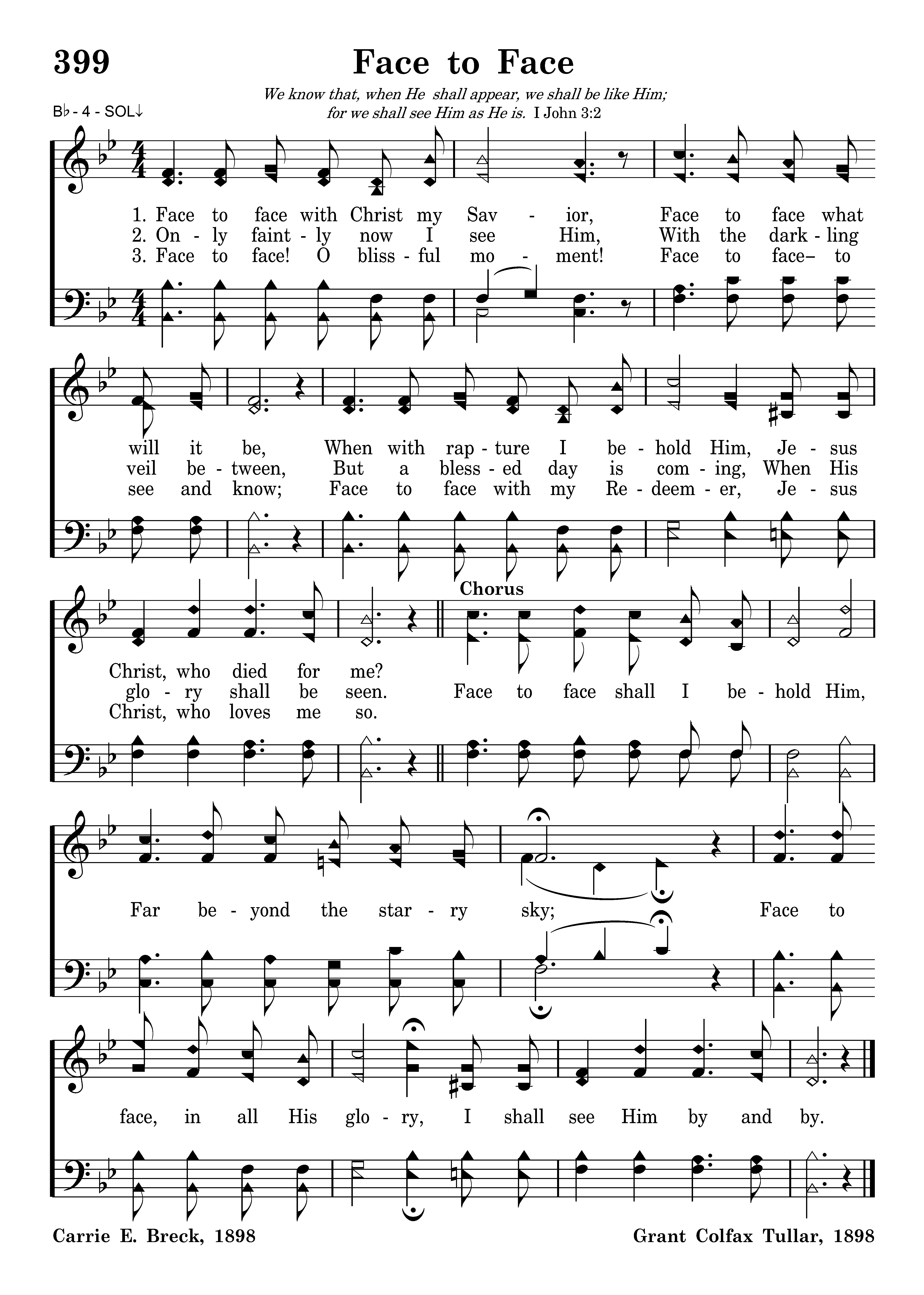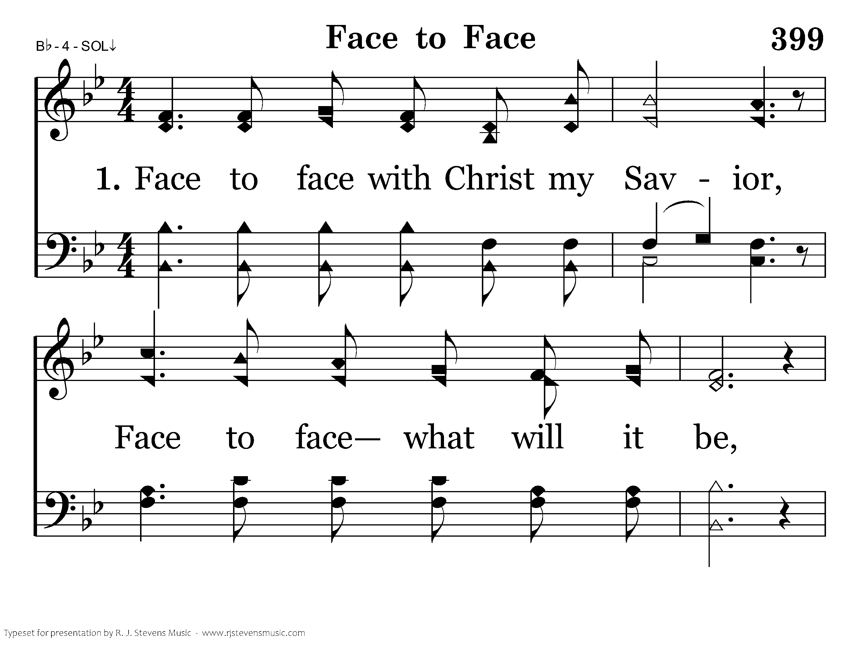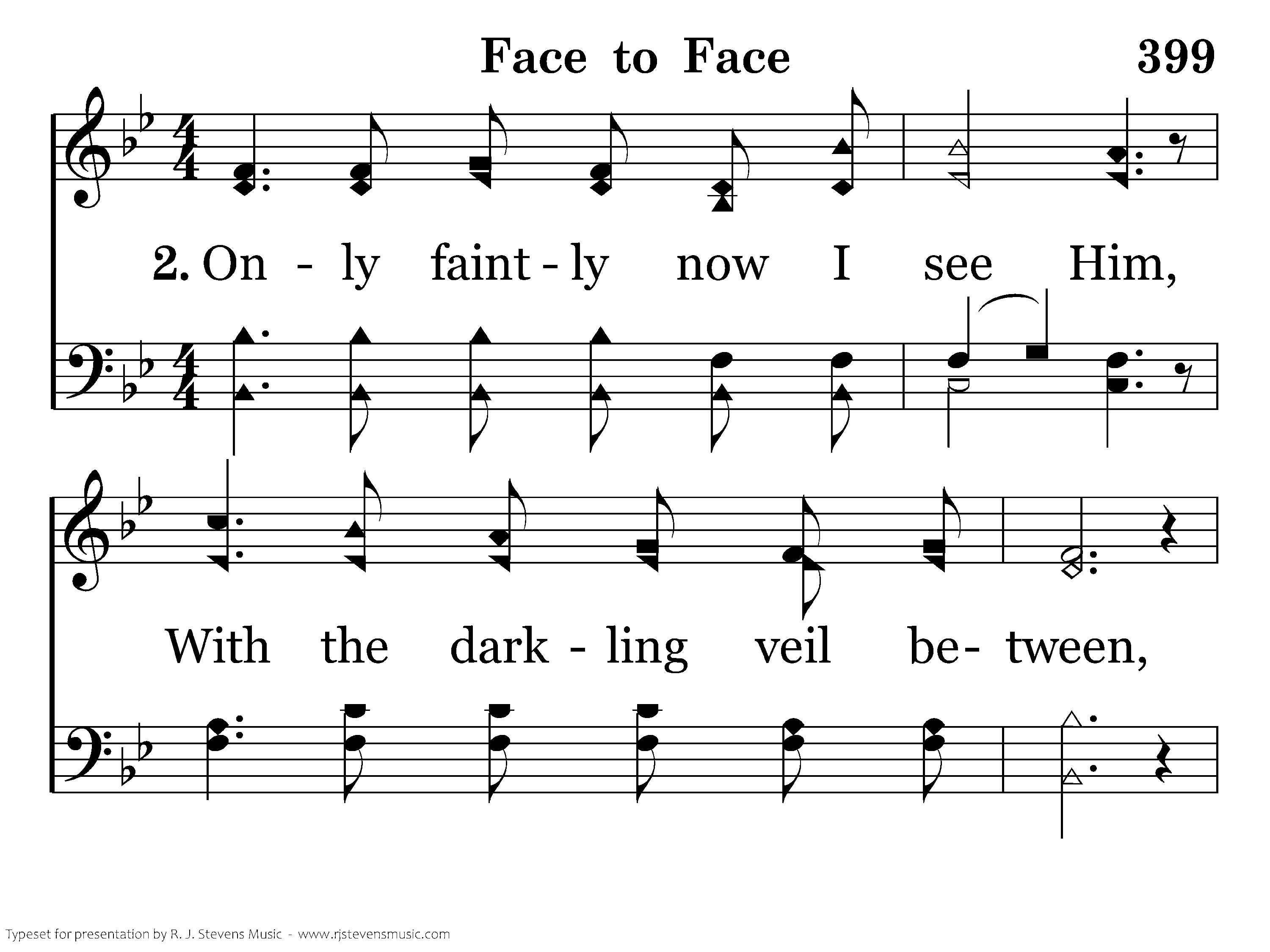 Face to face shall I behold Him, Far beyond the starry sky, Face to face in all His glory, I shall see Him by and by.