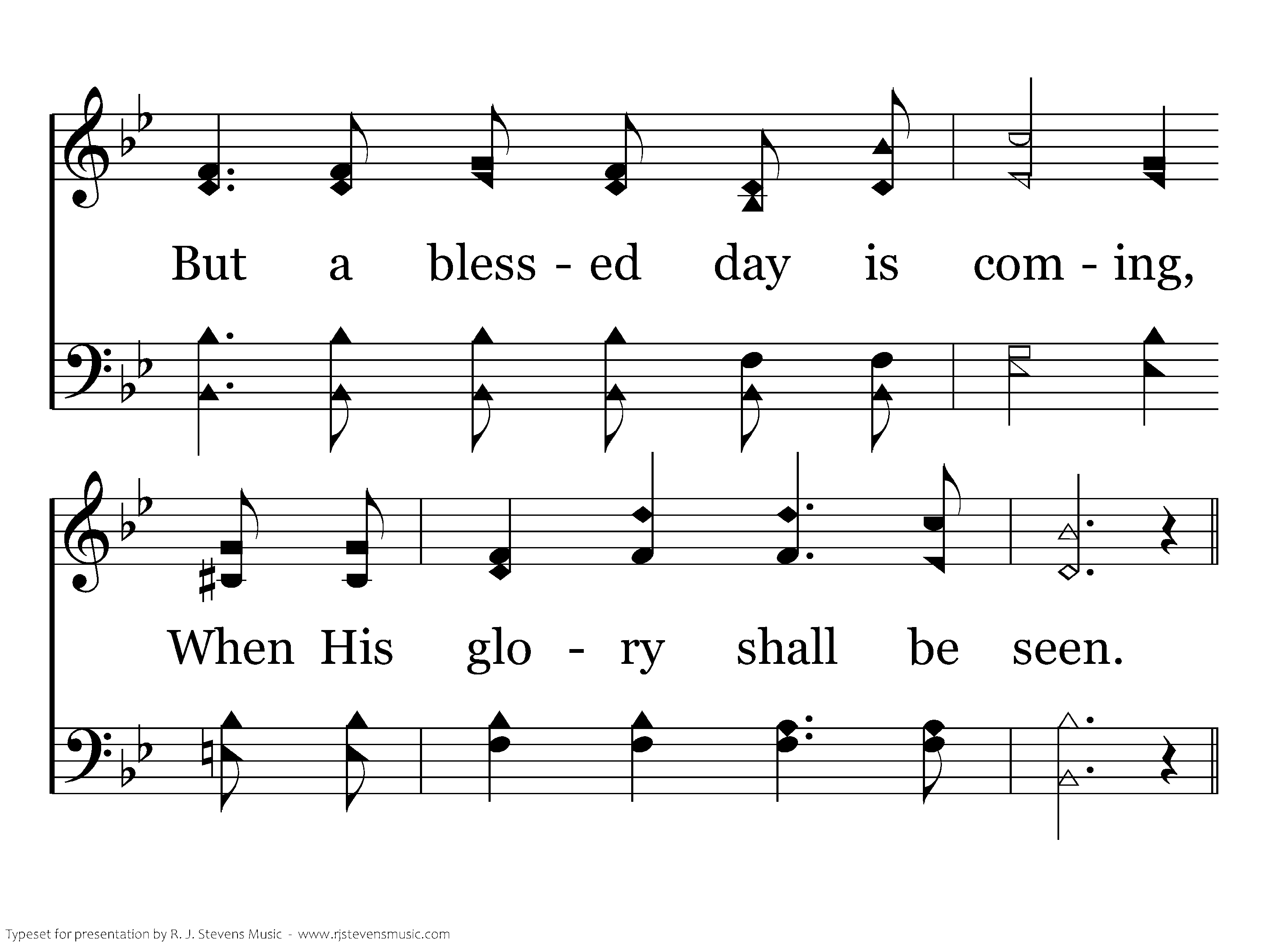 Only faintly now I see Him, With the darkling veil between, But a blessed day is coming, When His glory shall be seen.