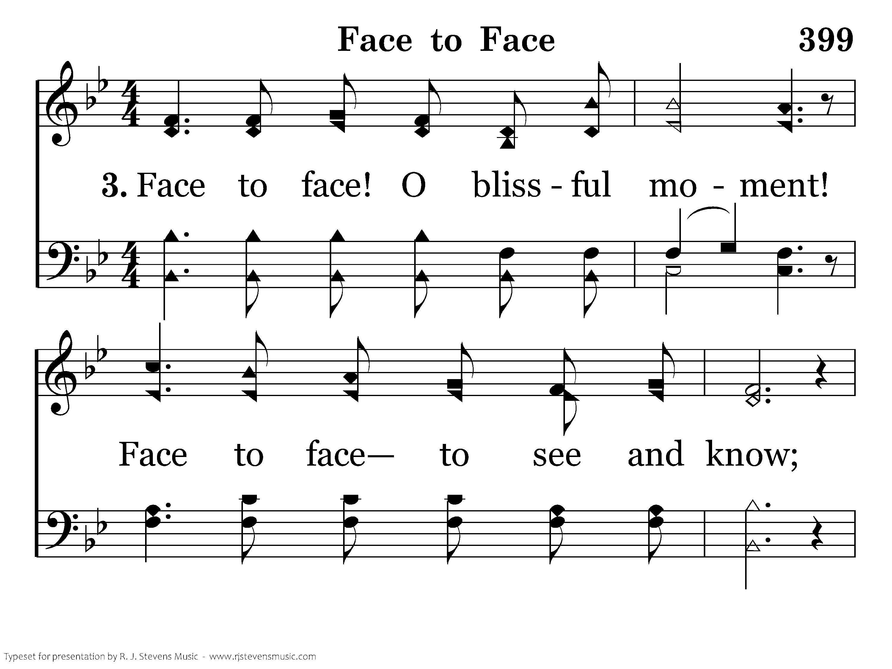 Face to face! O blissful moment! Face to face to see and know; Face to face with my Redeemer, Jesus Christ, who loves me so.