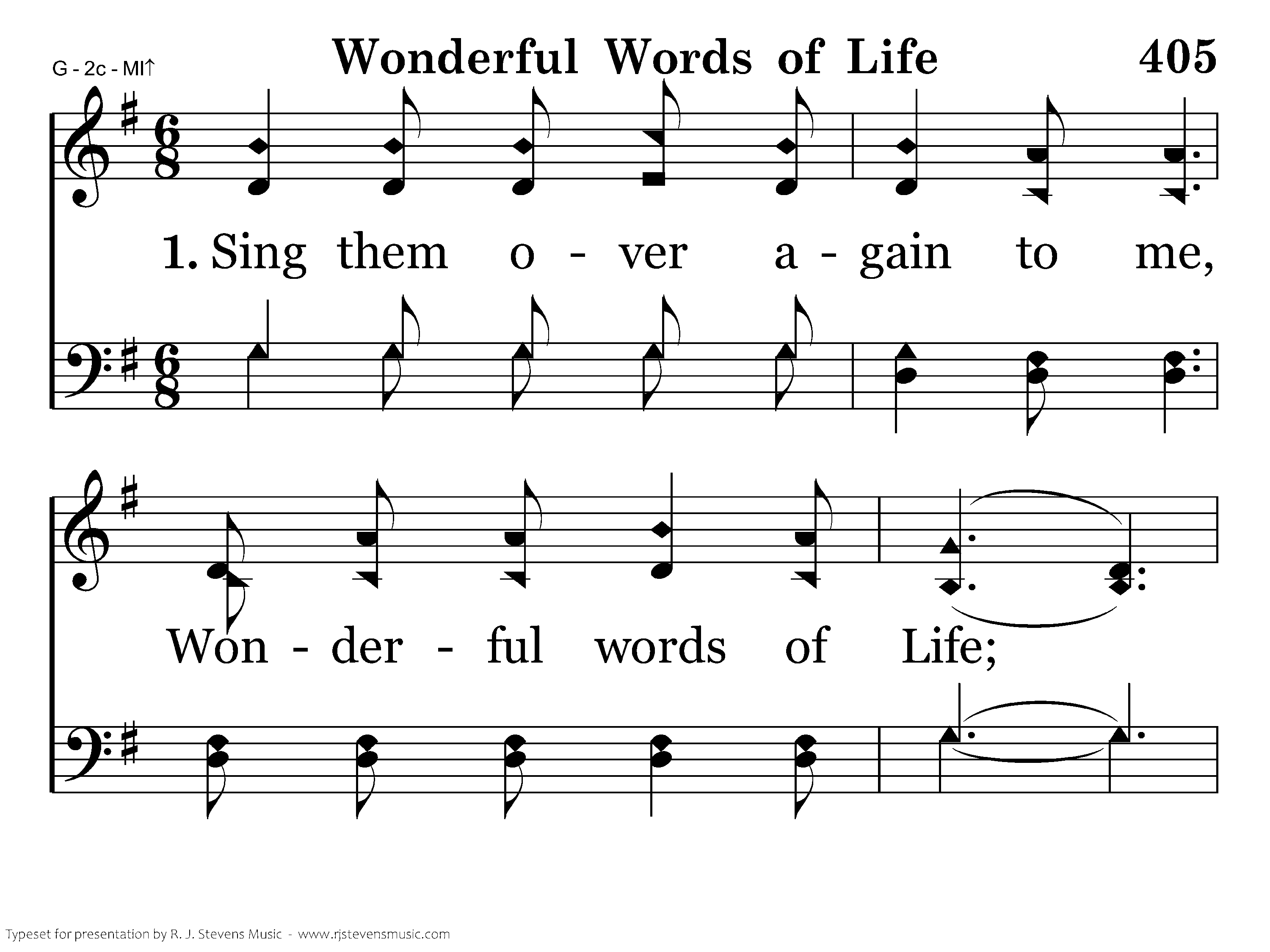 Sing them over again to me, Wonderful words of Life; Let me more of their beauty see, Wonderful words of Life. Words of Life and beauty, Teach me faith and duty: