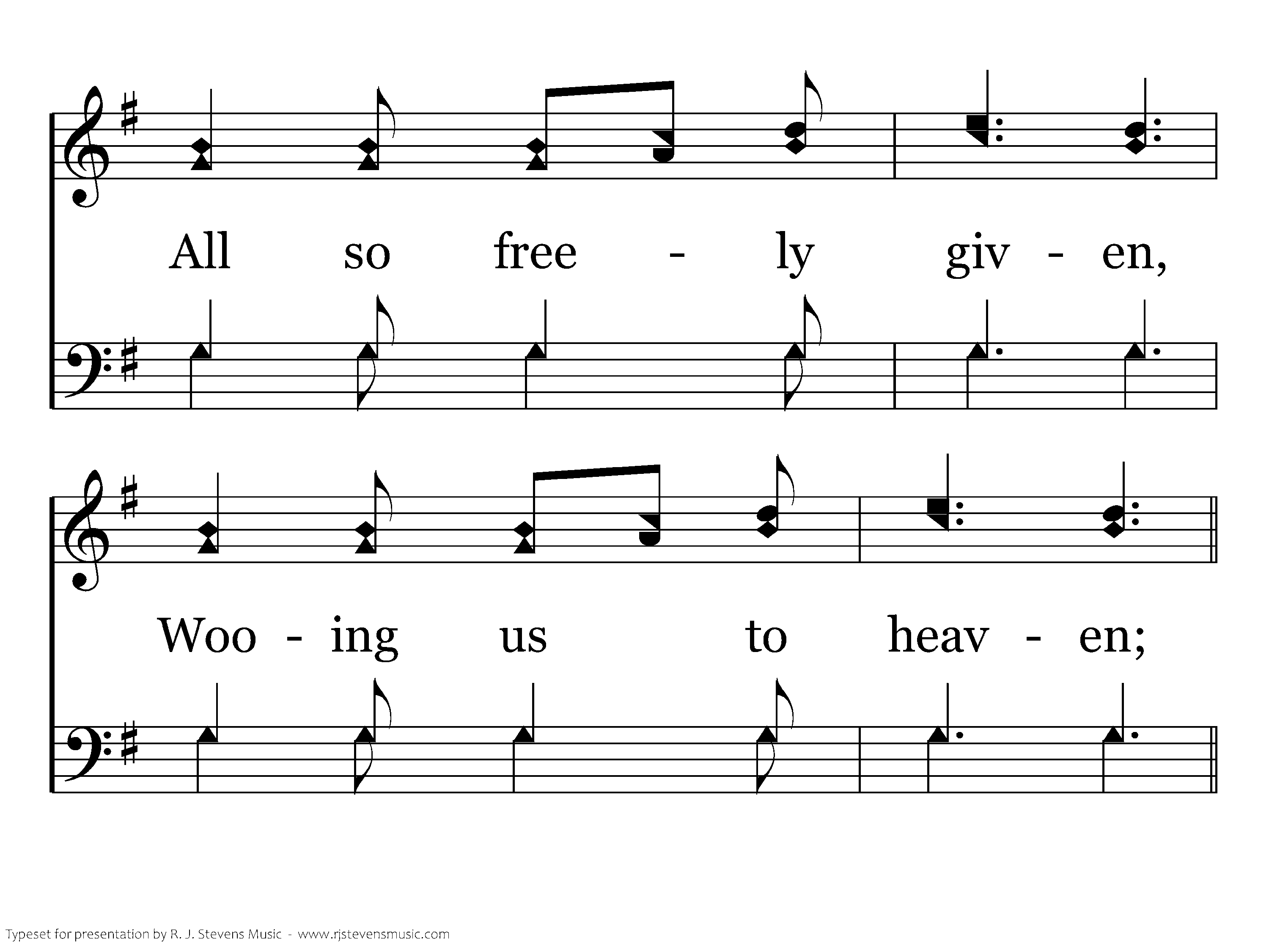 Christ, the blessed One, gives to all, Wonderful words of Life; Sinner list to the loving call, Wonderful words of Life. All so freely given, Wooing us to heaven;