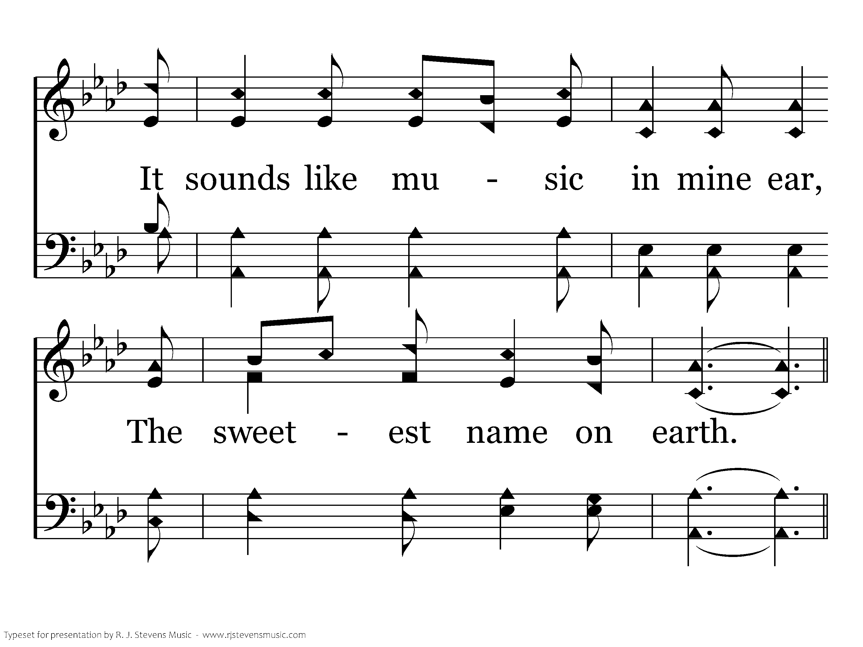 There is a name I love to hear, I love to sing its worth; It sounds like mu-sic in mine ear, The sweet-est name on earth.