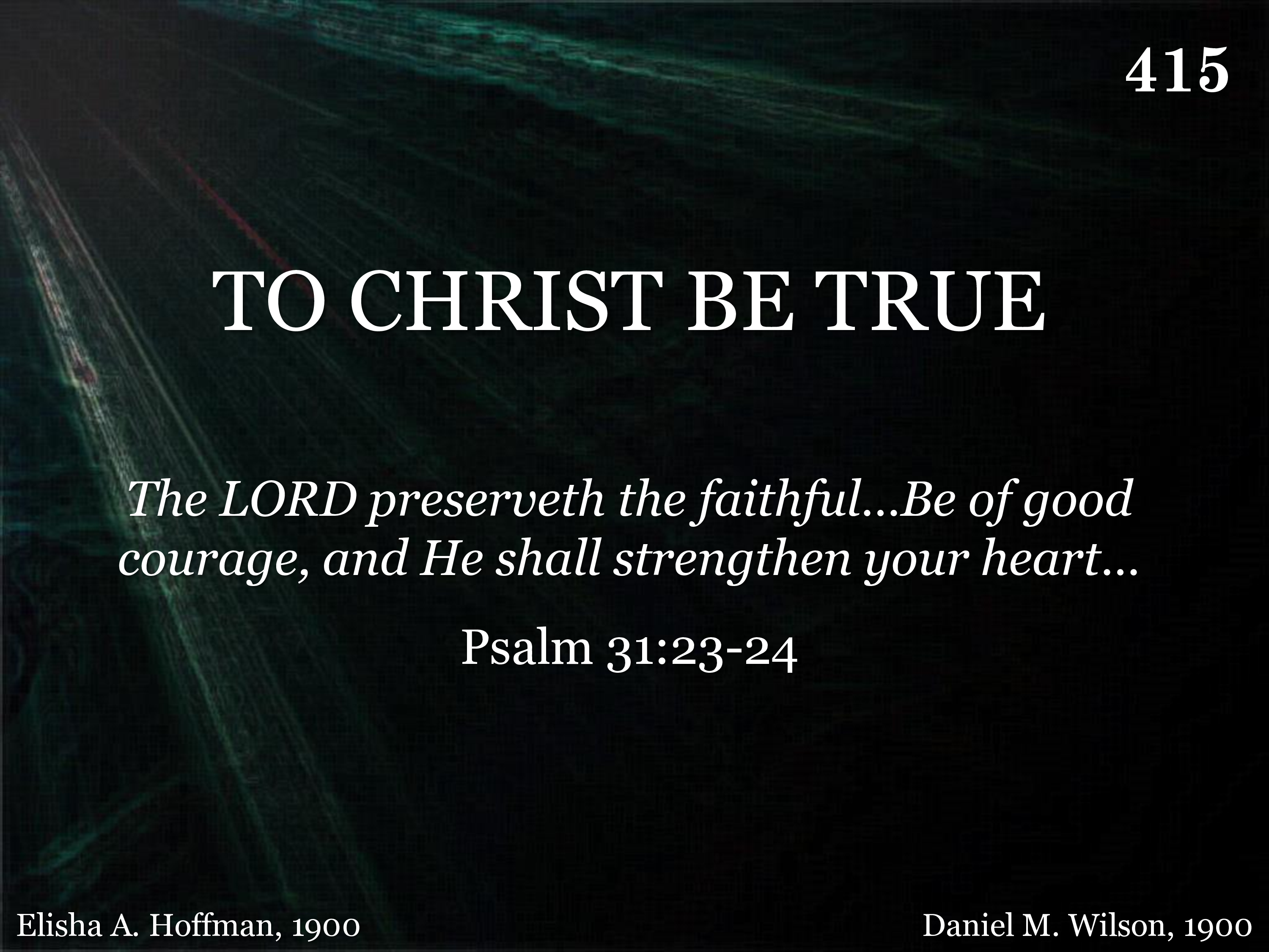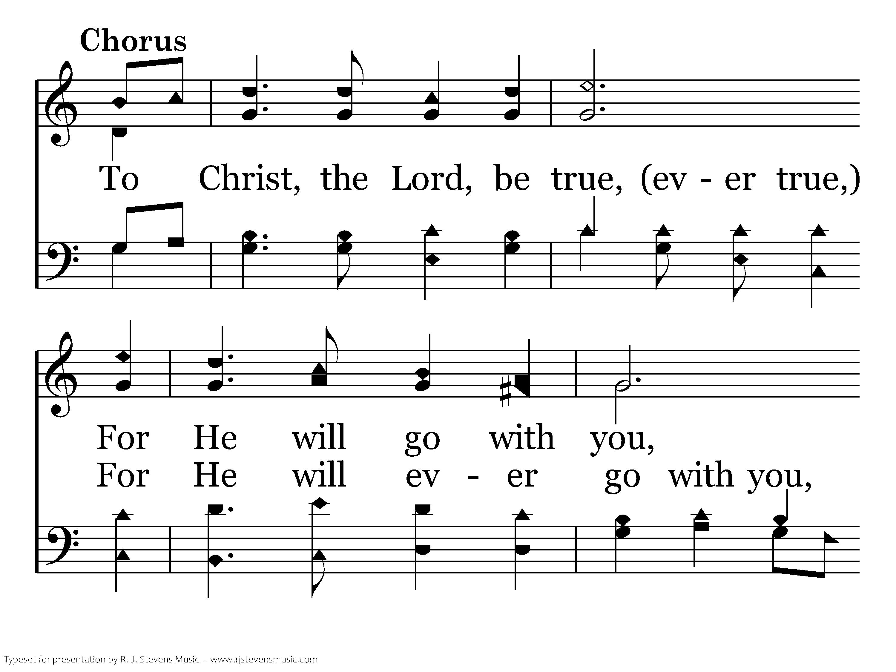 To Christ, the Lord, be true, For He will go with you, And help you all your conflicts thru; To Christ, the Lord, be true.
