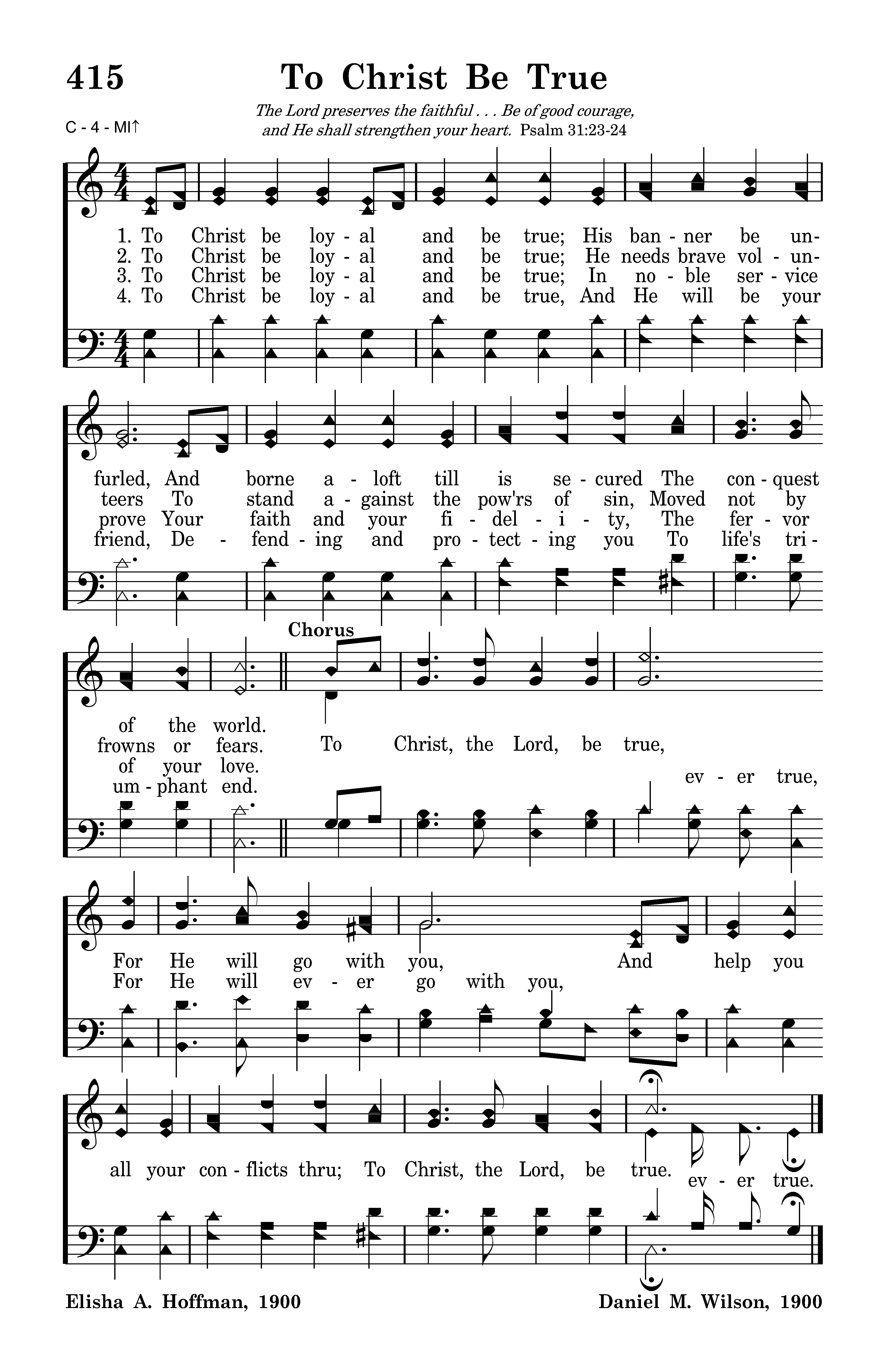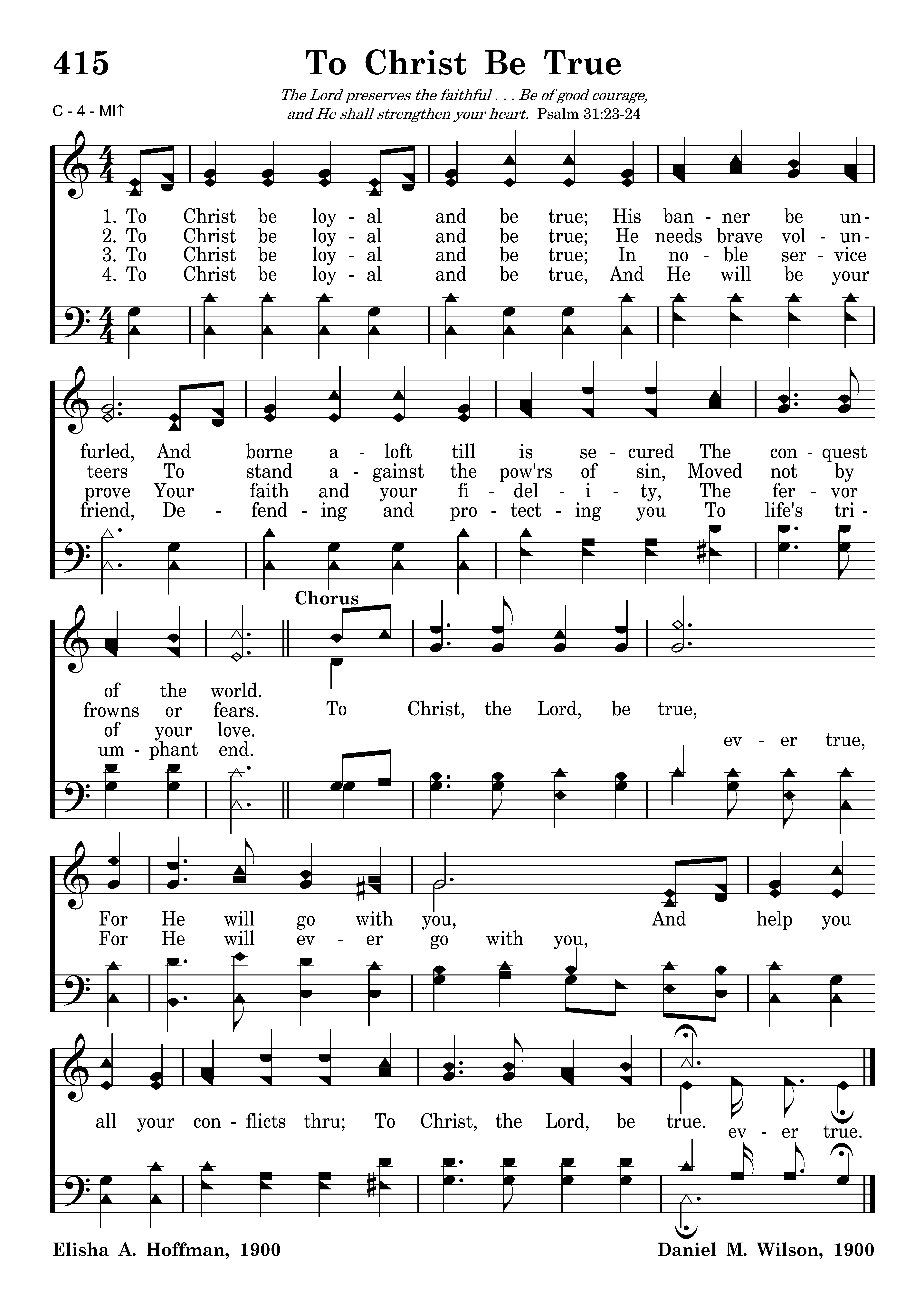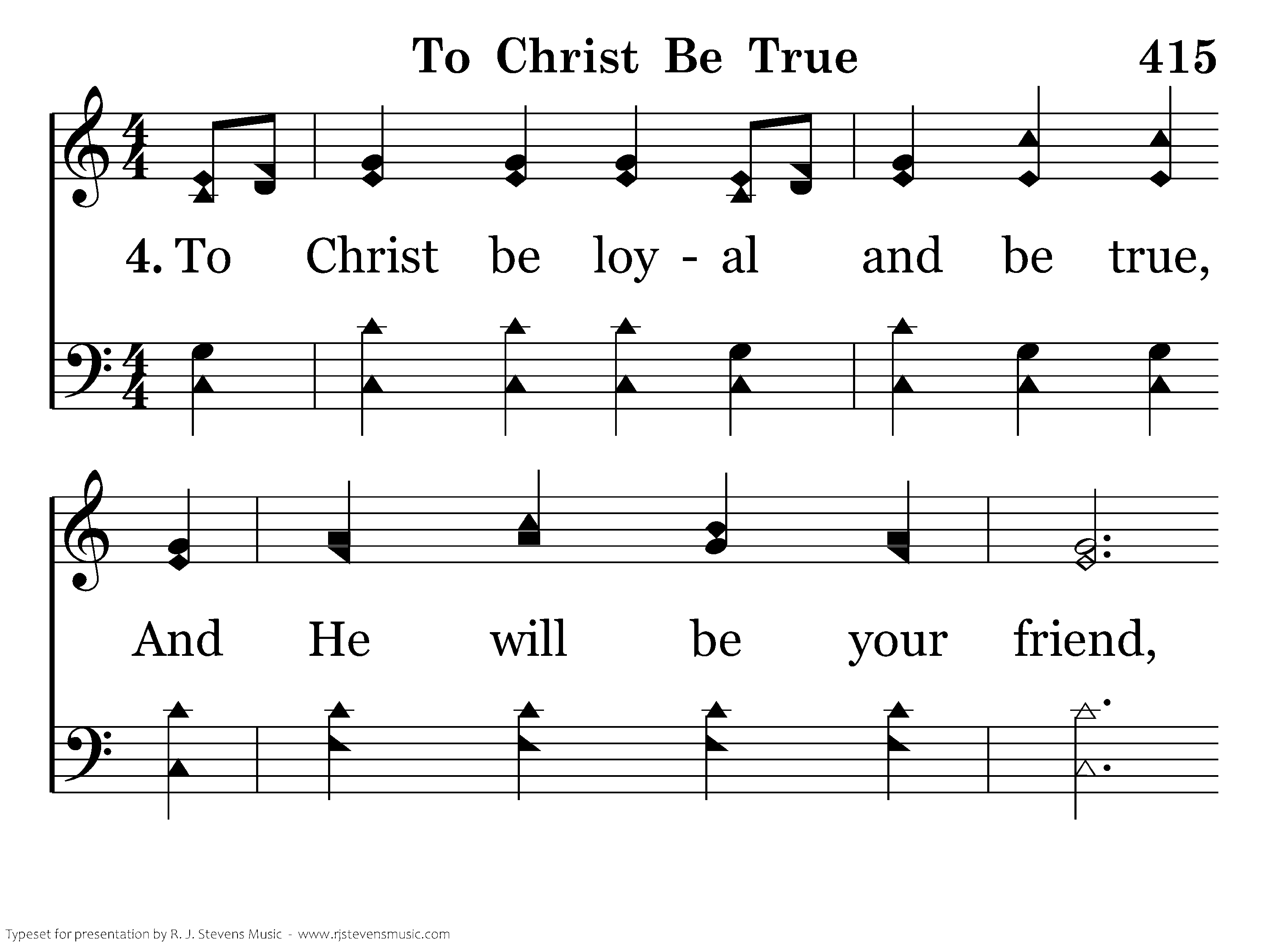 To Christ be loyal and be true, And He will be your friend, Defending and protecting you To life's triumphant end.